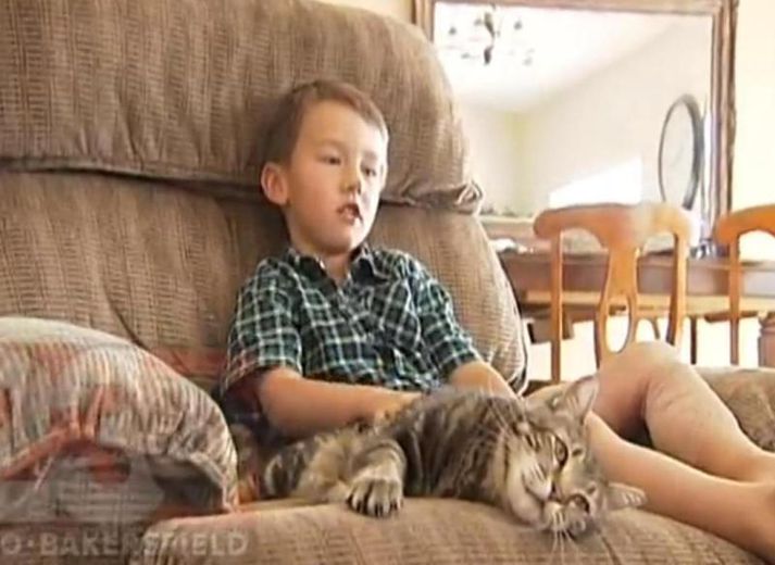 Fjölskyldukötturinn bjargaði einhverfum dreng frá óðum hundi Samúel Karl Ólason skrifar 15. maí 2014 09:39 „Tara er hetjan mín,“ segir Jeremy Triantafilo. Fjölskyldukötturinn, Tara, bjargaði honum nýverið frá árás hunds sem beit hann í fótinn. Kötturinn réðst þá á hundinn og stökkti honum á flótta, en atvikið náðist á myndband. Frá þessu er sagt á vefnum Turnto23.com. Jeremy, sem er með einhverfu, var nýkominn heim úr skóla og var að hjóla í innkeyrslunni, þegar hundur nágranna laumast aftan að honum, bítur hann í fótinn og dregur hann aftur á bak. Móðir Jeremy heyrði hann öskra, en sá ekki hvað gerðist. „Ég áttaði mig ekki á því hvað gerðist fyrr en ég sá myndbandið,“ sagði hún við fréttamann ABC. Sauma þurfti Jeremy nokkrum sporum en annars ber hann sig vel. Hundinum verður lógað samkvæmt talsmanni lögreglunnar í Bakersfield, eftir tíu daga einangrun. Mest lesið Sinueldur við Elliðavatn Innlent Maður skotinn til bana við Mar-a-Lago Erlent Voru í þann mund að slökkva eldinn þegar það barst tilkynning um annan Innlent Vissu ekki að bíllinn hefði oltið fyrr en þær sáu myndir Innlent Leggja til vantraust á hendur Silju Báru Innlent Íslendingar gerðu það sem tröllunum mistókst Innlent Býst við að samningar náist fljótlega og auglýsir eftir starfsfólki Innlent Sjálfsafgreiðslukassar og aukin sjálfvirkni auki vandann Innlent Intuens hafi nýtt sér óttann og kvíðann sem krabbamein valdi til að græða Innlent „Hrikalega óábyrgt og jafnvel hættulegt“ að senda börnin sín vísvitandi veik á leikskóla Innlent Fleiri fréttir Rödd þolendanna að drukkna í spillingarmálum og samsæriskenningum Maður skotinn til bana við Mar-a-Lago Pakistanar gerðu loftárásir í Afganistan Segist ætla senda spítalaskip til Grænlands Íranir mótmæla á ný Minnst tólf farist í snjóflóðum á einum mánuði Stuðningur við norsku konungsfjölskylduna í frjálsu falli Rússneskir tölvuþrjótar réðust á grænlenskar heimasíður Til skoðunar að taka Andrew úr erfðaröðinni Svaraði tolladóminum með því að leggja toll Íranski byltingarvörðurinn kominn á hryðjuverkalista ESB og á Íslandi Toppurinn kominn á hæstu kirkju heims Huldumaður gaf gullstangir til að laga vatnslagnir borgarinnar Spenna eykst á einum helgasta stað gyðinga og múslima Áfram húsleit á fyrra heimili Andrews „Mjög, mjög sorglegt“ Bandaríkjastjórn opnar síðu þar sem Evrópubúar geta séð lokað efni Andrew látinn laus Norðmenn koma af fjöllum og taka fyrir ummæli Trump Nýjar forsetaflugvélar fá Trump-litina „Besti vinur“ Epsteins ætlaði að leysa frá skjóðunni 2016 Karl III: Réttlætið verður að hafa sinn gang Viðbúnaðurinn ekki verið eins mikill frá innrásinni í Írak Andrew handtekinn á heimili sínu Rétta yfir fjórtán ára gömlum leigumorðingja Tjáningarfrelsistal tæknirisa „hreinn þvættingur“ „Grunlaus“ Wexner segist hafa verið gabbaður af Epstein Skíðahópur fórst í snjóflóði í Kalíforníu Fyrrverandi forseti Suður-Kóreu í lífstíðarfangelsi Umdeilt Friðarráð fundar í Washington í dag Sjá meira