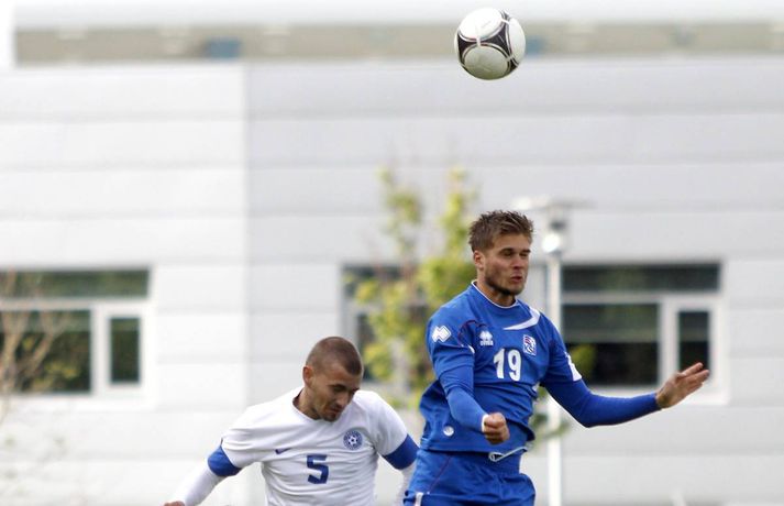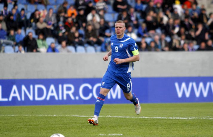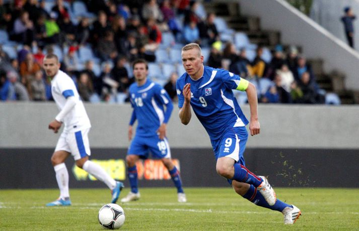 Ísland lagði Eistland í tilþrifalitlum og leiðinlegum leik á Laugardalsvelli í kvöld. Kolbeinn Sigþórsson skoraði eina mark leiksins.Daníel Rúnarsson og Andri Marinó Karlsson, ljósmyndarar Fréttablaðsins og Vísis, tóku skemmtilegar myndir sem sjá má hér í myndaveislunni að ofan. Eins og við mátti búast lágu Eistarnir frekar aftarlega og leyfðu Íslendingum að vera með boltann. Okkar mönnum gekk ekkert sérstaklega vel að stýra ferðinni og búa til færi. Ísland fékk aðeins tvo færi í hálfleiknum og það fyrra kom eftir tæpan hálftíma. Aron Einar með skot yfir markið og svo átti Kolbeinn skalla í slá skömmu síðar. Það var allt og sumt sem íslenska liðið bauð upp á. Eistarnir þurftu oft ekki að hafa mikið fyrir því að stoppa sóknir íslenska liðsins. Strákunum gekk illa að koma boltanum í fætur framherjanna og sendingarnar fyrir voru oft ekki í háum gæðaflokki. Skyndisóknir Eistanna voru nokkrar hættulegar og þeir fengu bestu færi leiksins. Einu sinni bjargaði sláin og svo átti Gunnleifur gott úthlaup er einn Eistinn var kominn í gegn. Markalaust í leikhléi og íslenska liðið átti mikið inni. Landsliðsþjálfar Íslands gerðu þrefalda skiptingu í hálfleik og nýliðinn Ögmundur Kristinsson hóf landsliðsferil sinn með því að verja glæsilega úr algjöru dauðafæri strax í upphafi seinni hálfleiks. Íslenska liðið stálheppið. Lukkan var aftur í liði með Íslandi er það fékk vítaspyrnu upp úr þurru. Rúrik með boltann í teignum og brotið klaufalega á honum. Kolbeinn tók vítið og skoraði af öryggi. Fimmtánda landsliðsmarkið hans. Ótrúlegur árangur. Eftir markið gekk íslenska liðinu betur að stjórna leiknum. Meiri kraftur í strákunum og hreyfing. Sem fyrr gekk þó ekkert vel að skapa opin færi í opnum leik. Hallgrímur fékk dauðafæri stundarfjórðungi fyrir leikslok eftir aukaspyrnu en skot hans hitti ekki markið. Eistarnir virkuðu bensínlausir á lokakaflanum og leikurinn opnaðist aðeins fyrir vikið. Leikmenn þó ekkert sérstaklega áfjáðir að klára sig nema kannski varamennirnir. Fyrir utan nokkra smákippi þá gerðist lítið á lokamínútunum og Ísland sigldi heim sigri sem fer nú ekki í sögubækurnar. Leikurinn var frekar leiðinlegur eins og vináttuleikir eiga til að vera. Leikmenn á rétt rúmlega hálfum hraða lengstum. Íslenska liðið vann alls ekki sanngjarnan sigur. Eistarnir á löngum köflum hættulegri og hefðu hæglega getað refsað íslenska liðinu. Það var svo þeirra eigin klaufaskapur sem varð þeim að falli. Það er erfitt að dæma leikmenn eftir svona leik þar sem ekkert er undir og margir komnir með hugann við sumarfríið. Varnarleikur Íslands var á köflum brothættur og sóknarleikurinn hefði sannarlega mátt vera hraðari og kraftmeiri. Upp úr stendur sigur í bókina og enn eitt markið hjá Kolbeini sem getur ekki hætt að skora í landsleikjum. Íslenska liðið getur þó mikið betur en það sýndi í þessum leik. Gylfi: Vantaði meiri hraða í leikinnGylfi Sigurðsson, miðjumaður Íslands, var þokkalega sáttur með leikinn gegn Eistlandi í kvöld. Hann sagði þó íslenska liðið eiga mikið inni. „Það er alltaf gott að halda hreinu. Hefði þetta verið alvöru leikur hefðum við sett miklu meiri hraða í leikinn," sagði Gylfi við fjölmiðla. Leikurinn var síðasti undirbúningsleikur Íslands áður en undankeppni Evrópumótsins hefst næsta haust. „Það var gott að koma saman hópurinn. Við náðum að fara yfir fullt af hlutum síðustu tíu daga og það var fínt." „Það var mikilvægt fyrir flesta að koma heilir út úr leiknum. Ég er aðeins búinn að æfa þrisvar sinnum síðasta mánuðinn og það var mikilvægt að komast út úr þessu heill heilsu. Núna getur maður tekið smá frí áður en maður byrjar aftur." Voru Eistar betri en Íslendingar bjuggust við? „Ég held að við höfum verið aðeins slappari en við bjuggumst við. Ef allir okkar menn hefðu verið á miðju tímabili þá hefðum við valtað yfir þetta lið." „Það var kjörið tækifæri fyrir að gefa öðrum mönnum tækifæri, þeim sem hafa verið við hópinn. Ég held að það hafi verið tveir sem voru að spila sinn fyrsta landsleik og það er jákvætt." Næsti leikur er í undankeppninni gegn Tyrkjum. Aðspurður hvort Gylfi hefði verið til í einn æfingarleik í viðbót var Gylfi ekki alveg viss. „Auðvitað hefði verið fínt að fá einn leik í viðbót, en ég held að við höfum náð að fara yfir það sem við vildum á fundunum í Austurríki og hér heima þannig ég held að þetta sé bara fínt," sagði Gylfi Þór Sigurðsson í leikslok. Heimir: Ísland vinnur aldrei leiki án rétta hugarfarsins„Við erum ekkert of ánægðir með frammistöðuna, þannig séð, en við erum ánægðir með sigurinn og ánægðir með að halda hreinu," sagði Heimir Hallgrímsson, annar landsliðsþjálfara Íslands eftir sigurinn á Eistlandi í kvöld. En hvað var það sem þjálfararnir lögðu upp með fyrir leik og hvernig fannst Heimi það ganga upp? „Við ætluðum að setja pressu á þá og bjuggust við því að þeir yrðu þéttir til baka. En þeir beittu löngum sendingum og við náðum ekki að vinna úr því og það var kannski klaufaskapur af okkar hálfu að bakka ekki aðeins og leyfa þeim að spila út." „Við ætluðum að reyna að koma með boltann fyrr inn fyrir vörn þeirra, en spilið var hægt hjá okkur og það var ekki sama viðhorf og hefur verið," sagði Heimir, en er hann bjartsýnni á framhaldið en hann var fyrir leikina gegn Austurríki og Eistlandi? "Það verður enginn stóridómur felldur út frá þessum leik. En ef það er eitthvað sem við getum lært af þessum leik, þá er það að það verður að fara með rétt hugarfar í alla leiki. Ísland vinnur aldrei l
