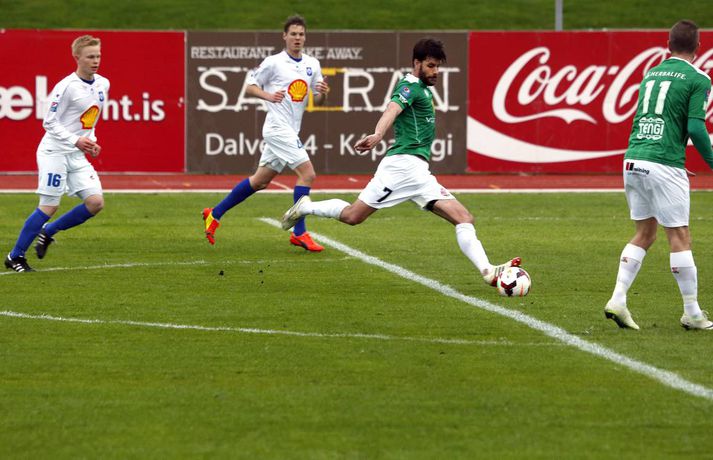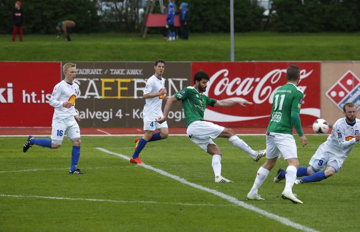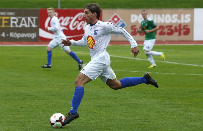 Breiðablik og Stjarnan gerðu 1-1 jafntefli á Kópavogsvelli í kvöld en leikurinn var kveðjuleikur Ólafs Kristjánssonar, þjálfara Breiðabliks. Ólafur kveður því Kópavogsliðið í fallsæti, með fjögur stig að loknum sex leikjum. Blikar eru því enn án sigurs í deildinni. Ekki óskastaða fyrir Guðmund Benediktsson sem tekur nú við starfi aðalþjálfara af Ólafi. Stjörnumenn eru hinsvegar taplausir í deildinni þetta tímabilið en eru þó vafalaust ósáttir við að fá einungis eitt stig út úr leiknum í kvöld. Blikar stilltu upp í mjög færanlegt 3-5-2 leikkerfi þar sem vængbakverðir sóttu hátt á völlinn en hjálpuðu einnig vel til í varnarvinnunni. Garðbæingar notuðust hinsvegar við 4-3-3 með þá Ólaf Karl Finsen, Jeppe Hansen og Veigar Pál Gunnarsson í sókninni. Leikurinn var opinn og fjörugur frá fyrstu mínútu þegar blikar fengu hættulegt færi eftir klaufagang hjá Ingvari Jónssyni í marki Stjörnunnar. Liðin skiptust á að sækja að marki þó sóknaraðgerðir Stjörnumanna hafi verið markvissari og hættulegri. Á 19. mínútu skoraði Niclas Vemmelund stórglæsilegt mark með skoti frá vítateigshorni beint upp í vinkilinn fjær eftir sendingu frá Veigari Pál Gunnarssyni. Óverjandi fyrir Gunnleif í markinu. Veigar Páll átti mjög góðan leik í kvöld og var mikilvægasti hlekkurinn í sóknarleik gestanna úr Garðabæ. Veigar lék allan leikinn í kvöld og það er ljóst að hann er að komast í mjög gott leikform sem gæti reynst Stjörnumönnum afar dýrmætt í sumar. Seinni hálfleikurinn var ekki eins fjörugur þó áhorfendur hafi varla haft yfir neinu að kvarta. Töluverð harka færðist í leikinn og þurfti ágætur dómari leiksins, Kristinn Jakobsson, ítrekað að teygja sig í brjóstvasann eftir gula spjaldinu. Stjörnumenn höfðu frumkvæðið framan af en þegar líða tók á leikinn jókst pressa heimamanna töluvert. Hún bar loks árangur á 74. mínútu þegar Elvar Páll Sigurðsson skoraði og jafnaði þar með leikinn eftir stoðsendingu frá Tómasi Óla Garðarssyni. Skömmu síðar fékk Árni Vilhjálmsson sitt annað gula spjald og þar með rautt. Með því fjöruðu möguleikar blika á að sækja öll þrjú stigin út í sandinn. Bæði lið fengu möguleika á að skora sigurmark á lokamínútum leiksins. Blikinn Tómas Óli Garðarsson komst í hættulegt færi eftir misheppnað skot liðsfélaga síns og Niclas Vemmelund fékk jafnframt fínt færi fyrir Stjörnumenn sem hann nýtti ekki. Svo fór að lokum að liðin skildu jöfn, 1-1. Ungur leikmaður í liði Breiðabliks, Höskuldur Gunnlaugsson, vakti athygli fyrir góða frammistöðu en hann er fæddur árið 1994. Höskuldur lék í hægri vængbakverði og skilaði því hlutverki afar vel. Efnilegur leikmaður þar á ferð. Eins og áður sagði var Veigar Páll Gunnarsson afar góður í liði Stjörnunnar og var hann maður leiksins að mati Vísis. Viðtöl væntanleg síðar í kvöld.Ólafur Kristjánsson: Tók við í fallsæti og skila liðinu í fallsæti Kveðjuleikur Ólafs Kristjánssonar með Breiðabliksliðið fór ekki eins vel og hann hefði vafalaust óskað. En var tilfinningaþrungin stund inni í klefa að leik loknum? „Ekki beint þrungin. Margir hlutir í lífinu eru meira tilfinningaþrungnir en þetta, en þetta kemur þó við viðkvæmar sálir, eins og ég er. Nú er maður svona að átta sig á því að þessu tímabili er lokið. " En hvað fannst Ólafi um leikinn í kvöld? „Ég er hundfúll með að hafa ekki náð að skila sigri og fleiri stigum. Mér fannst menn vera að reyna. Fyrri hálfleikur einkenndist af því að við erum lið sem er búið að vera í vandræðum í upphafi móts, ákveðin vandræði á okkur. En ég er ánægður með að við komum til baka eftir að hafa lent undir. Það er það sem ég hef viljað sjá og vil sjá í framtíðinni hjá Breiðabliksliðinu, að gefast aldrei upp. Ég er sannfærður um að ef menn hafa það hugarfar þá munu fleiri stig koma í hús." Fjögur stig eftir sex leiki er rýr uppskera hjá Breiðablik. Hvað hefur helst vantað í leik liðsins? „Það hefur helst vantað uppá bæði að skapa færi og svo nýta þau færi sem hafa gefist. En oft hefur bara vantað herslumuninn uppá til að hala inn fleiri stig." „Ég tók við liðinu í fallsæti á sínum tíma og skila því af mér í fallsæti, þannig að hringnum er lokað. En auðvitað er það hundfúlt að vera ekki með fleiri stig. Það er enginn svekktari með það en ég, og ég ber fulla ábyrgð á því - eins og velgengninni þegar hún kom." Ólafur samdi við FC Nordsjælland fyrir tímabilið en stýrði liðinu samt sem áður í fyrstu sex leikjunum í deildinni. Hafði það áhrif að hans mati og vildi hann hætta fyrr? „Ég hafði ekkert val um það. Ég er með samning og ég uppfylli bara mínar skyldur með glöðu gleði. En ef þú spyrð mig þá tengist gengi liðsins ekkert því að ég sé að fara út. Ef þú spyrð mig þá tengist þetta [gengi liðsins] ekkert því að ég sé að fara út. Ef liðið hefði verið með fjögur stig og ég ekki með liðið þessa sex leiki og Gummi hefði staðið hérna þá hefði spurningin sennilega verið hvort það hefði ekki verið rangt að hann hafi tekið við liðinu strax." Guðmundur Benediktsson tekur nú við Breiðabliksliðinu. Hvaða möguleika telur Ólafur liðið eiga það sem eftir lifir tímabils? „Liðið á hellings möguleika. Leiðin getur bara legið uppá við. Fallsæti í byrjun júní þarf ekki að þýða fallsæti í lok móts. Það býr mikið í liðinu og það verður spennandi að sjá Guðmund glíma við verkefnið sem er framundan."Rúnar Páll: Hundsvekktur með að ná ekki í þrjú stig Þjálfari Stjörnumanna, Rúnar Páll, var hundsvekktur við leikslok. „Mér fannst við vera betra liðið í 
