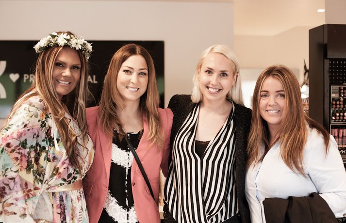 Íslenska lífsstílsmerkið Gyðja Collection opnaði sína fyrstu verslun í vikunni og var haldið upp á það með pomp og prakt síðastliðinn fimmtudag. NYX Cosmetics tóku einnig þátt í gleðinni en báðar verslanirnar eru staðsettar að Bæjarlind í Kópavogi. „Opnunin tókst vel og var virkilega góð stemmning í loftinu. Það var líka alveg yndislegt veður, fyrsti alvöru sumardagurinn, hiti og glampandi sól og á svona dögum þá er hvergi betra að vera en á Íslandi, hlustandi á ljúfa tóna og með sumardrykk við höndina,“ segir Sigrún Lilja, stofnandi og hönnuður Gyðju. Hún klæddist kjól frá Andreu og var með lifandi blómakrans úr Garðheimum um kvöldið. Hún bætir við að hún sé í sjöunda himni með nýju húsakynni Gyðju.Sigrún og maðurinn hennar Reynir Daði.„Við gerðum þetta húsnæði alveg að okkar og í okkar anda. Mig langaði að umhverfið myndi fylla okkur sem hér starfa góðri orku og innblæstri og því erum við með mikið af hvetjandi skilaboðum á veggjunum og speglunum sem umvefja sýningarrýmið og skrifstofurnar. Þetta er svolítið listamannsumhverfi með blöndu af svolítilli skrifstofustemmningu og svo fallegri verslun. Alveg nákvæmlega eins og ég vildi hafa það,“ bætir Sigrún við. Skrifborðin og fundarborðin á skrifstofunum þykja vel heppnuð en þau eru hvít úr fremur hráum við og var það maður Sigrúnar, Reynir Daði sem sá alfarið um hönnunina og smíðina á þeim.Sigrún með foreldrum sínum Guðjóni og Guðrúnu.Rebekka, Anna Brá DJ sem sá um tónlistina og Solla eigandi NYX.Lisa eigandi LEVEL og Alexandra.Sigrún með Sigrúnu Halldórsdóttur og Ósk Ágústdóttur.Sigrún með Óla Helga hönnuði og móður hans, Valgerði.Sigrún og Nanna dansari.Saga Ýrr lögmaður og Sigga.