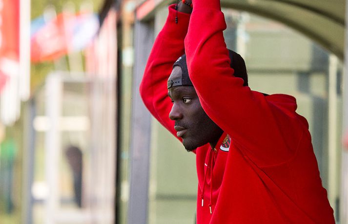 Umfjöllun, viðtöl og einkunnir: Víkingur - Breiðablik 1-0 | Níu Víkingar lögðu Breiðablik að velli Guðmundur Marínó Ingvarsson skrifar 22. júní 2014 00:01 Vísir/Daníel Víkingur vann þriðja leik sinn í röð í Pepsí deild karla í fótbolta í kvöld þegar liðið lagði Breiðablik 1-0 á heimavelli sínum í Víkinni. Pape Mamadou Faye skoraði sigurmarkið á 15. mínútu.Daníel Rúnarsson, ljósmyndari Vísis og Fréttablaðsins, var á leiknum í kvöld og náði þessum skemmtilegu myndum sem má sjá hér fyrir ofan og neðan. Það var jafnræði með liðunum framan af en fyrri hálfeikurinn endurspeglast af markinu sem Pape skoraði. Breiðablik átti horn og upp úr því fékk Víkingur skyndisókn þar sem Aron Elís Þrándarson stakk vörn Breiðabliks af og fann Pape sem átti mjög gott hlaup inn í teiginn og skoraði af stuttu færi. Breiðabliki gekk ágætlega að halda boltanum úti á velli en þegar komið var í nálægð við vítateig Víkings fór allt í baklás og lítið gekk. Víkingar voru aftur móti alltaf hættulegir í sínum sóknaraðgerðum framan af en það setti strik í reikninginn hjá þeim að bæði Pape og Todor Hristov þurftu að fara meiddir af leikvelli í fyrri hálfleik. Víkingur byrjaði seinni hálfleikinn betur og gestirnir virkuðu aldrei líklegir til að skora fyrr en Garðar Örn Hinriksson góður dómari leiksins fór að tína Víkinga af leikvelli. Arnþór Ingi Kristinsson fékk sitt annað gula spjald á 76. mínútu og manni fleiri sóttu Blikar af meiri krafti en áður. Það var þó ekki fyrr en fyrirliðinn Igor Taskovic fékk beint rautt spjald á 89. mínútu að Breiðablik fann leiðina að marki Víkings en markstangirnar og Ingvar Þór Kale sáu til þess að Víkingur héldi út og landaði stigunum þremur. Breiðablik getur nagað sig í handabökin að hafa ekki nýtt þau færi sem liðið skapaði sér en liðið þarf að gera mun betur en liðið gerði þegar bæði lið höfðu ellefu leikmenn inni á vellinum. Þá voru ákvarðanir á síðasta þriðjung vallarins ekki líklegar til árangurs. Víkingur getur vel við unað. Breiðablik náði ágætlega að halda aftur af þeirra hættulegstu leikmönumm, sérstaklega í seinni hálfleik en Víkingur varðist vel og hélt forystunni sem snilli Arons Elísar og Pape skóp. Víkingur er með 16 stig í fimmta sæti deildarinnar eftir 9 leiki en Breiðablik er enn án sigurs, í 10. sæti með 6 stig. Ingvar: Aldrei að vita nema ég bjóði Árna í bíó„Blikarnir sóttu fast á okkur og gáfu okkur erfiðan leik en við héldum út og ég er gríðarlega ánægður með að landa þessum stigum,“ sagði Ingvar Þór Kale markvörður Víkings í leikslok. „Þeir fengu þrjú dauðafæri í lokin og við náðum að henda okkur fyrir það og landa sigrinum. „Það er gríðarlega erfitt að leika manni færri á móti Breiðabliki. Breiðablik er erfiðasta liðið að lenda manni færri á móti. Þeir halda boltanum vel og koma sér í færi. Það var frábært hjá okkur að ná að halda þetta út,“ sagði Ingvar sem náði loksins að leggja Breiðablik að velli eftir að hafa yfirgefið félagið og farið í Víking. „Ég var búinn að spila við þá held ég þrisvar eftir að ég kom yfir aftur og alltaf gengið illa. Það var mjög gott að ná að klára þetta í dag og sætur sigur,“ sagði Ingvar en það vakti óneitanlega athygli þegar Árni Vilhjálmsson fyrrum liðsfélagi Ingvars hljóp að Ingvari eftir að greinilega var brotið á markverðinum og lét hann heyra það. „Það gerist bara í hita leiksins. Ég og Árni eigum eftir að takast í hendur á eftir og það er aldrei að vita nema ég bjóði honum í bíó eða eitthvað,“ sagði Ingvar léttur. Guðmundur: Þurfum menn sem ætla sér að skora mörk„Mér fannst algjör óþarfi að tapa þessum leik hér í Víkinni. Við fengum reyndar á okkur mark sem gerist í fótbolta en það er spurning hvernig þú bregst við þeim,“ sagði Guðmundur Benediktsson þjálfari Breiðabliks. „Mér fannst við spila góðan leik í fyrri hálfleik en það vantaði þessa loka ákvörðun, þessa loka sendingu. Við komum okkur í mjög góðar stöður og boltinn gekk vel hjá okkur hratt en það þarf að skora mörk til að vinna leiki og því miður var það ekki á hjá okkur í dag. „Einum fleiri og um tíma tveimur fleiri þá verður þú að vera með aðeins meiri ís í maganum og hausnum hreinlega til að vera klókari í þeim stöðum sem við fáum hér. Svo getum við litið á það að við setjum hann í tvígang eða þrígang í tréverkið og Kale ver tvisvar ótrúlega. Það er óþarfi að tapa þessum leik,“ sagði Guðmundur. Breiðablik hefur ekki enn unnið leik á tímabilinu, gert sex jafntefli og tapað þremur leikjum til þessa á tímabilinu. „Við erum minntir trekk í trekk að það séu níu leikir komnir og við erum enn að leita að fyrsta sigrinum. Við getum ekkert verið að spá í því. Við þurfum bara að hugsa um næsta leik og reyna að ná sigri þar. „Við höfum spilað hraðmót síðan ég tók við og ég hef verið ánægður með framlagið og það er kraftur í liðinu en það dugir ekki til. Það þarf líka að vera ákveðin skynsemi í leik liðsins og hana vantaði í dag. „Það þarf menn sem ætlar sér ekkert annað en að skora mörk. Þó ég sé ekkert hrifinn af því að fá á mig mörk þá er allt í lagi að fá á sig eitt mark hér því við áttum að skora fleiri mörk en Víkingur í kvöld. Hvort þessir leikmenn séu innan hópsins eða ekki til hjá okkur, við þurfum að skoða það,“ sagði Guðmundur sagði vildi þó ekki meina að hann væri farinn að horfa til þess að leikmannaglugginn opni til að styrkja liðið þó hann hafi viðurkennt að það þurfi að skoða þau mál verði ekki breyting