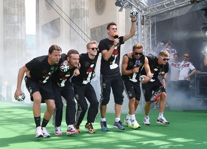 "Þjóðverjar fögnuðu eins og nasistar“ Eiríkur Stefán Ásgeirsson skrifar 18. júlí 2014 13:00 Vísir/Getty Fögnuður þýska landsliðsins á risastórri athöfn í höfuðborginni Berlín á þriðjudag hefur verið harkalega gagnrýnd víða um heim, ekki síst í heimalandinu. Afar vel var tekið á móti leikmönnum landsliðsins eftir sigur þeirra á HM í Brasilíu þar sem þeir lögðu Argentínumenn að velli í úrslitaleiknum, 1-0. Leikmenn brugðu á leik með hinum ýmsu uppátækjum. Þeir hafa hins vegar verið harkalega gagnrýndir fyrir svokallaðan gaucho-dans sem má sjá neðst í fréttinni. „Svona ganga gauchos - svona ganga þeir,“ sungu þeir og áttu þar með við Argentínumenn. „En svona ganga Þjóðverjar - svona ganga þeir,“ var sungið við miklar undirtektir viðstaddra. Gaucho þýðir kúreki í Suður-Ameríku og þar þótti mörgum dans Þjóðverja afar óviðeigandi. Einn þeirra er Victor Moreales, þekktur fjölmiðlamaður frá Úrúgvæ sem líkti framkomu þýsku leikmannanna við nasista í síðari heimsstyrjöldinni. „Þeir höguðu sér í raun eins og nasistar,“ var haft eftir Morales í spænskum fjölmiðlum. „Fólk sem hugsaði eins og þessir leikmenn myrtu sex milljónir manna. Nákvæmlega svona með þessum hugsunarhætti - með svona heimsku og mikilmennskubrjálæði.“ „Svona höguðu þeir sér gagnvart gyðingum, sígaunum og þeim sex milljónum sem þeir myrtu á fjórða og fimmta áratug síðustu aldra. Þetta fólk hefur lítið gert fyrir Þýskaland.“ HM 2014 í Brasilíu Tengdar fréttir Fyrsti heimsmeistaratitilinn eftir sameininguna Þýskaland fagnaði í kvöld sínum fjórða heimsmeistaratitli, en Þjóðverjar hafa nú unnið bikarinn eftirsótta jafn oft og Ítalía. 13. júlí 2014 22:23 Heimsmeistararnir á toppnum Nýkrýndir heimsmeistarar Þýskalands eru í efsta sæti styrkleikalista FIFA. 17. júlí 2014 08:47 Þýskaland heimsmeistari í fjórða sinn Mario Götze tryggði sigurinn með marki í framlengingu. 13. júlí 2014 00:01 Mest lesið Leikið um Ofurskálina í sextugasta sinn: Augu heimsins á Super Bowl Sport „Hún hegðar sér eins og díva“ Sport Trump kallar keppanda Bandaríkjanna á Ólympíuleikunum „algjöran lúser“ Sport Lindsey Vonn fótbrotnaði við fallið Sport Nýi leikmaður Liverpool meiddist alvarlega Enski boltinn Öll stúkan söng um Orra eftir markið hans Fótbolti Drama í skíðagöngu Dags: Stytti sér leið en fékk samt silfur Sport Manchester City kom til baka eftir stórskostlegt mark Szoboszlai Enski boltinn „Gagnrýnin og viðbjóðurinn aldrei verið meiri“ Handbolti Guðmundur Magnússon skiptir úr bláu í grænt Íslenski boltinn Fleiri fréttir Nýi leikmaður Liverpool meiddist alvarlega Real Madrid fylgir Barcelona eftir eins og skugginn Öll stúkan söng um Orra eftir markið hans Guðmundur Magnússon skiptir úr bláu í grænt „Enn og aftur dæmir dómarinn ekki okkur í vil“ „Við urðum að vinna, annars væri titilbaráttan búin“ Luis Diaz með þrennu á móti tíu mönnum Hoffenheim Manchester City kom til baka eftir stórskostlegt mark Szoboszlai Viktori tókst ekki að skora á Elías Cecilía hélt hreinu í Íslendingaslagnum á Ítalíu Ísak lagði upp mark í svekkjandi tapi Sarr tryggði sigur gegn Mávunum Emilía skoraði á mikilvægri stundu Stefán Teitur skoraði sitt fyrsta mark fyrir Hannover Sjáðu fjórða sigur United, þrennu Palmer og tvennu Gyökeres Mætast undir allt öðrum kringumstæðum en áður Farinn að leita að rakara og vill fá tíma 10. febrúar Orri aftur með draumainnkomu Albert meiddist og Fiorentina missti frá sér sigurinn Kristian Nökkvi á skotskónum í Hollandi Brentford upp að hlið Liverpool eftir endurkomusigur á Newcastle Mikel Arteta segir að níu stiga forysta Arsenal þýði „ekkert“ Fótboltalið Vals semur við son Alexanders Petersson Börsungar gefa ekkert eftir á toppnum Hamrarnir sóttu sigur, Everton sneri leiknum en Villa missti niður forystu Skytturnar með níu stiga forskot á toppnum Palmer með þrennu í fyrri hálfleik gegn Úlfunum Fær fjögurra leikja bann og missir af Lundúnaslagnum United fagnaði fjórða sigrinum í röð Sjáðu mörkin sem Sean Dyche fannst alveg skelfileg Sjá meira