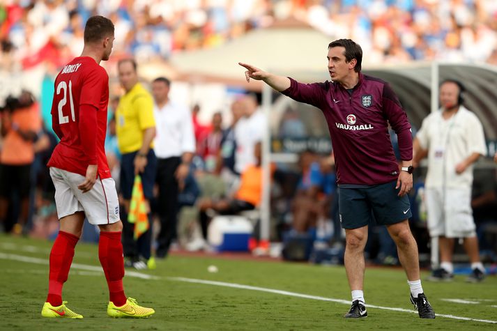 Neville: Læra vonandi af þessu Kristinn Páll Teitsson skrifar 11. júlí 2014 09:30 Vísir/Getty Gary Neville vonast til þess að ungir leikmenn enska landsliðsins muni læra af reynslunni þrátt fyrir slakt gengi enska landsliðsins á Heimsmeistaramótinu í ár. Ekki voru miklar væntingar gerðar til liðsins fyrir mót en leikmenn liðsins ollu miklum vonbrigðum. England sem var í erfiðum riðli fékk aðeins eitt stig úr þremur leikjum. „Við vorum alveg ónýtir eftir að hafa dottið út og ég finn ennþá fyrir vonbrigðum. Við verðum að reyna að gleyma mótinu sem leið og reyna að halda áfram sem lið. Það eru margir ungir leikmenn sem tóku þátt og verkefni okkar er að þeir verði betur í stakk búnir fyrir Evrópumótið eftir tvö ár.“ „Henderson, Wilshere, Sturridge, Welbeck, Jones, Smalling, Barkley og Shaw eiga allir nokkur stórmót eftir á ferlinum og það er undir þeim komið hvernig liðinu mun ganga. Þeir verða að læra af fyrsta mótinu sínu og reyna að bæta árangurinn eftir tvö ár,“ sagði Neville. HM 2014 í Brasilíu Mest lesið „Gagnrýnin og viðbjóðurinn aldrei verið meiri“ Handbolti Farinn að leita að rakara og vill fá tíma 10. febrúar Enski boltinn Íslandsmeistari í ólympískum lyftingum þremur vikum eftir að hún missti fóstur Sport Keppandi Suður-Kóreu á Ólympíuleikunum fæddist á Íslandi Sport Orri aftur með draumainnkomu Fótbolti Trump um baulið á Vance á setningu ÓL: „Er það satt? Það kemur á óvart“ Sport Mætast undir allt öðrum kringumstæðum en áður Enski boltinn Lindsey Vonn úr leik eftir hrikalegt fall í fyrstu ferð Sport Mætir á sinn sextugasta Super Bowl-leik en segir að þessi sé sá síðasti Sport Ákærður fyrir morðið á kærustu sinni Sport Fleiri fréttir Mætast undir allt öðrum kringumstæðum en áður Farinn að leita að rakara og vill fá tíma 10. febrúar Orri aftur með draumainnkomu Albert meiddist og Fiorentina missti frá sér sigurinn Kristian Nökkvi á skotskónum í Hollandi Brentford upp að hlið Liverpool eftir endurkomusigur á Newcastle Mikel Arteta segir að níu stiga forysta Arsenal þýði „ekkert“ Fótboltalið Vals semur við son Alexanders Petersson Börsungar gefa ekkert eftir á toppnum Hamrarnir sóttu sigur, Everton sneri leiknum en Villa missti niður forystu Skytturnar með níu stiga forskot á toppnum Palmer með þrennu í fyrri hálfleik gegn Úlfunum Fær fjögurra leikja bann og missir af Lundúnaslagnum United fagnaði fjórða sigrinum í röð Sjáðu mörkin sem Sean Dyche fannst alveg skelfileg Biður Liverpool að slaka á reglunum Fara fögrum orðum um Íslendinginn unga Stóð með sjálfri sér: „Fann að ég myndi ekki ná að blómstra í þessu umhverfi“ Dagskráin í dag: Risa dagur í enska boltanum Risa sigur fyrir Leeds United Lengjubikarinn: Fylkir vann Breiðablik og FH skoraði sjö Hjörtun í vörn Íslands mættust ekki í kvöld Arnór fékk allt greitt frá Rússunum og saknar landsliðsins Þvertaka fyrir að þjálfarinn stökkvi frá borði rétt fyrir HM Arteta með lykilmenn meidda og svaraði ásökunum Segir fótboltasérfræðinga bera ábyrgð FH sækir sænskan miðvörð Úlfar í sauðagæru? „Myndi segja að þetta sé framsækin nálgun“ Sakar Arsenal um virðingarleysi „Skrítið að klæðast grænu en það mun venjast hratt“ Sjá meira