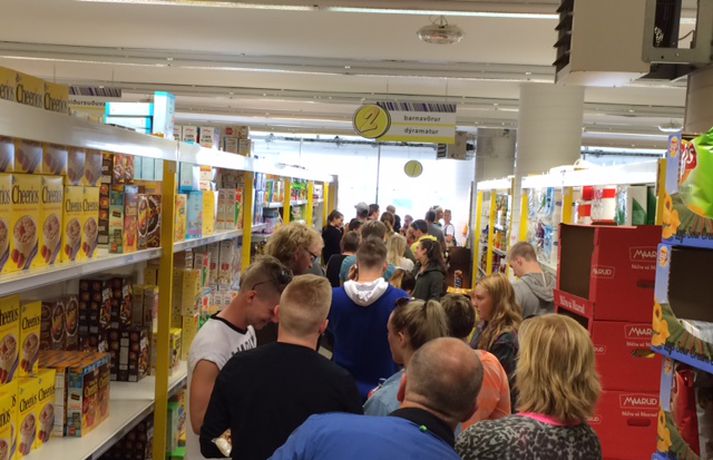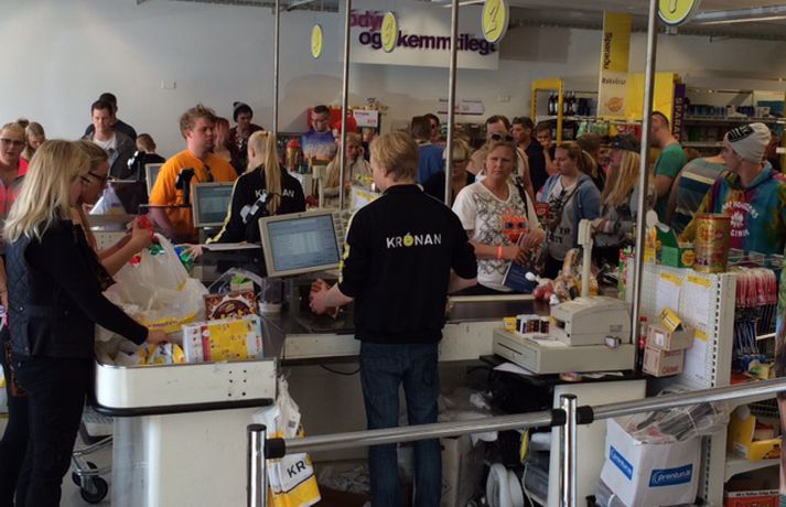 Biðröð fyrir utan ÁTVR í Eyjum Sunna Karen Sigurþórsdóttir skrifar 1. ágúst 2014 13:32 Hleypt var inn í hollum í vínbúðina í Vestmannaeyjum. vísir/kolbeinn tumi Sól og blíða er í Vestmannaeyjum, þar sem Þjóðhátíð verður sett í kvöld. Búið er koma upp vel á annað hundrað tjöldum í Herjólfsdal, ef frá eru talin hvítu tjöldin sem heimafólk er í óða önn að innrétta. Straumur fólks til Eyja eykst stöðugt og þegar vínbúðin opnaði í miðbænum í dag myndaðist fljótlega töluverð röð, en Eyjamenn fara þá leið að hleypa fólki inn í hollum, enda vínbúðin í smærri kantinum. Þá myndaðist jafnframt örtöð í verslun Krónunnar og fleiri stöðum í Vestmanneyjum. Þjóðhátíð stendur á gömlum merg, og búst er yfir tólf þúsund manns. Helstu skemmtikraftar þar verða Quarashi, Skítamórall, John Grant, Sálin Hans Jóns Míns, Kaleo, Mammút, Jón Jónsson og Páll Óskar ásamt fleirum.Þessir voru í góðu yfirlæti í glampandi sól í Herjólfsdal í dag.vísir/kolbeinn tumi Mest lesið Gerðu vopnin upptæk og sviptu hann leyfinu Innlent Trump sagður beita sér í ESB-umræðunni hér á landi Innlent Skólastjórinn umdeildi snýr ekki aftur Innlent Rannsaka kynferðisbrot á Akureyri Innlent Fundar með lækni frá Úkraínu sem þjónar til borðs á Íslandi Innlent Rífur niður hús sem hann gekk framhjá alla skólagönguna Innlent „Þetta eru alltof miklar hækkanir“ Innlent Bjóða upp á tjaldsvæði inni Innlent Ræddi við Pútín í síma og íhugar að slaka frekar á refsiaðgerðum Erlent Einn á sjúkrahús eftir árekstur á Hringbraut Innlent Fleiri fréttir Óttast ekki að þjóðaratkvæðagreiðslunni verði seinkað Vísbendingar um að Kristrún vísar þögn um ESB-málið á bug Sjúklingar enn á göngum bráðamóttökunnar Frekari ESB-umræður í þinginu Lögregla varar enn á ný við vasaþjófum Fundar með lækni frá Úkraínu sem þjónar til borðs á Íslandi Skólastjórinn umdeildi snýr ekki aftur Einn á sjúkrahús eftir árekstur á Hringbraut Hafa dregið rafbyssurnar fram hundrað sinnum Rannsaka kynferðisbrot á Akureyri Gerðu vopnin upptæk og sviptu hann leyfinu Trump sagður beita sér í ESB-umræðunni hér á landi Ræddu þjóðaratkvæði fram á kvöld og halda áfram í dag Áfram skúrir í dag Rífur niður hús sem hann gekk framhjá alla skólagönguna Stóraukin þátttaka kvenna í skimun fyrir krabbameini Ný greiningaraðferð á endómetríósu í sjónmáli „Þetta eru alltof miklar hækkanir“ Ekki í forgangi hjá Isavia að smíða bílastæðahús Oddvitinn lætur gott heita í Mosfellsbæ Evrópuhiti, Bjarni Ben og bílastæði Að kljúfa þjóðina með tilfinningaþrunginni spurningu Fréttinni skylt að birta andsvar Sigurbjargar Þau verða í efstu tíu sætunum á lista Pírata Þriðjungur andvígur atkvæðagreiðslunni Saka Þorgerði um brot á þingsköpum Hefur setið tvo af þremur borgarstjórnarfundum frá því að hann skipti um lið Kostar allt að 210 þúsund krónum að vera í golfklúbbi Bein útsending: ESB-ballið byrjar á Alþingi Sjá meira