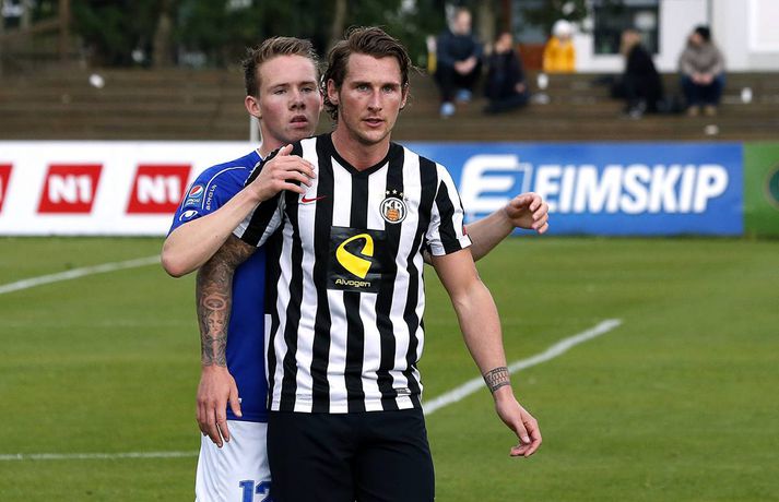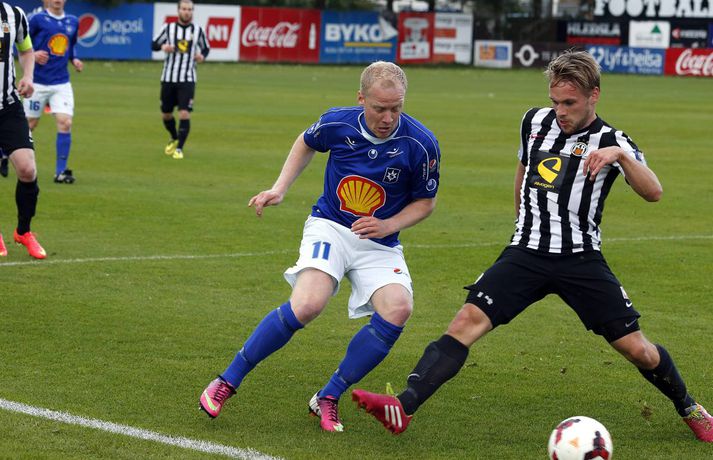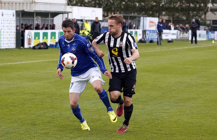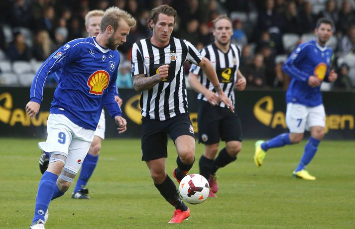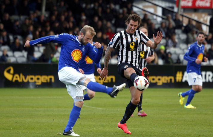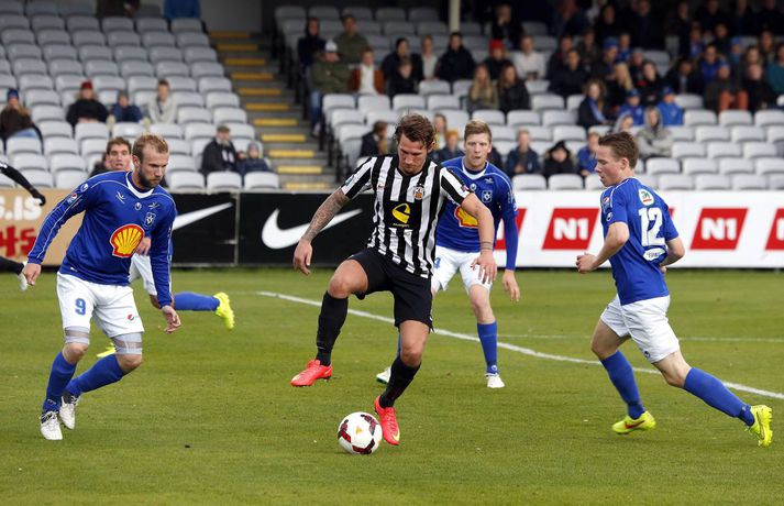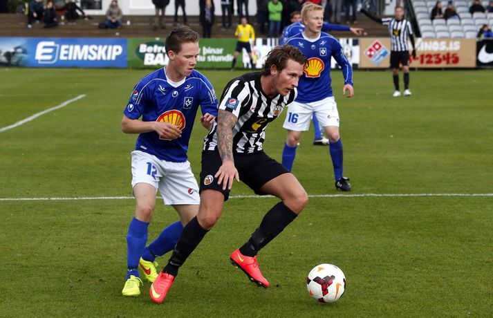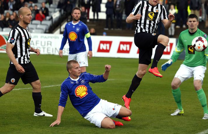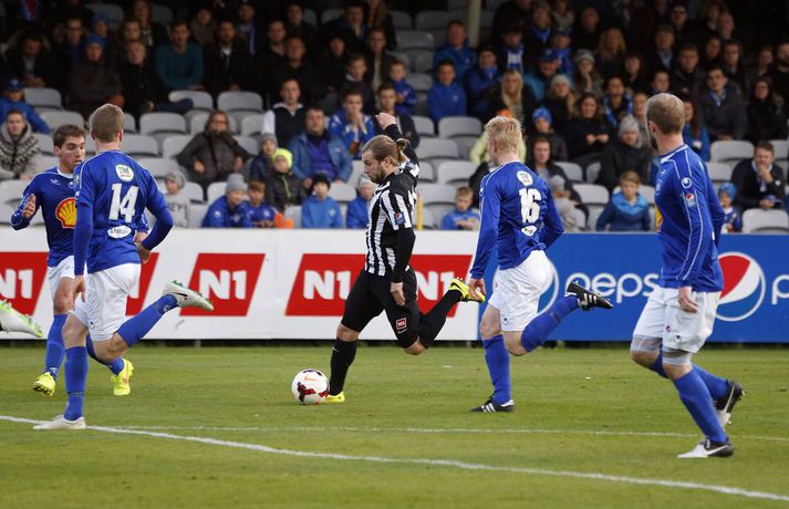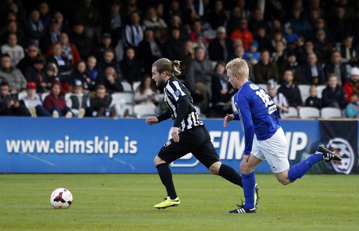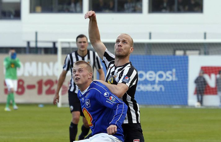 Umfjöllun, viðtöl, myndir og einkunnir: KR - Stjarnan 2-3 | Stjarnan heldur í titilvonina Stefán Árni Pálsson skrifar 31. ágúst 2014 00:01 Vísir/Stefán Stjarnan vann magnaðan sigur, 3-2, á KR-ingum í Vesturbænum í kvöld. Ólafur Karl Finsen gerði tvö mörk fyrir Stjörnuna í kvöld sem heldur áfram í Íslandsmeistaravonirnar. KR-ingar voru mikið mun betri til að byrja með og sóttu án afláts. Stjörnumenn voru hreinlega enn í Mílanó og ekki mættir til leiks. Heimamenn komust yfir í leik þegar tæplega tuttugu mínútur voru liðnar af leiknum þegar Aron Bjarki Jósepsson skoraði. Aron fékk boltann í lappirnar eftir hornspyrnu og mikið klafs en hann snéri sér við og stýrði boltanum af stuttu færi í netið. Virkilega vel gert. Eftir markið virtust Stjörnumenn vakna til lífsins. Þeir sóttu mikið næstu mínútur og fengu fjölmörg færi en náðu ekki að koma boltanum í netið fyrir hálfleik. Staðan var 1-0 í hálfleik. Stjörnumenn voru fínir til að byrja með í síðari hálfleiknum og ætluðu sér greinilega að jafna strax metin. Stjörnumenn voru ekki lengi að jafna leikinn en Veigar Páll skallaði boltann í netið eftir fimmtán mínútur í síðari hálfleiknum. Þá fékk hann frábæra sendingu úr aukaspyrnu frá Pablo Punyed og stýrði honum laglega í netið. Ólafur Karl Finsen skoraði síðan annað mark Stjörnumanna þegar tuttugu mínútur voru eftir af leiknum. Garðbæingar koma alltaf til baka eins og þeir hafa sýnt í allt sumar. Þeir bláu komnir yfir. Stjörnumenn ætluðu sér greinilega að vinna leikinn. Heimamenn voru aftur á móti ekki búnar að syngja sitt síðasta og Óskar Örn Hauksson náði að jafna metin þegar korter var eftir af leiknum. Óskar lék á hvern leikmann Stjörnunnar á fætur öðrum og þrumaði boltanum í markið með hægri fæti. Spennandi lokamínútur framundan. Sigurmark beggja liða lág í loftinu og það kom. Ólafur Karl Finsen skoraði magnað mark þremur mínútum fyrir leikslok en Stjörnumenn unnu boltann á miðjum vellinum og voru allt í einu komnir tveir gegn Stefáni í markinu. Toft lagði boltann á hárréttum tíma á Ólaf sem renndi honum í autt markið. Stjarnan vann að lokum ótrúlega mikilvægan sigur en liðið er sem fyrr í öðru sæti deildarinnar með 39 stig, aðeins tveimur stigum á eftir FH sem er í efsta sætinu. Rúnar: Kjartan fer líklega til Danmerkur á morgun„Þetta er nánast farið frá okkur núna, við eigum kannski einhverja stærðfræðilega möguleika,“ segir Rúnar Kristinsson, þjálfari KR, eftir tapið í kvöld. KR-ingar eiga litla sem enga möguleika á því að verja Íslandsmeistaratitilinn í ár. „Við vorum frábærir í fyrstu tuttugu og fimm mínútur leiksins og hefðum raun þá átt að gera fleiri mörk. Stjarnan er með gott lið og því komu þeir sterkir til baka.“ Rúnar segir að Stjörnumenn hafi gert þeim erfitt fyrir með því að pressa KR-ingana hátt. „Mér fannst reyndar bara eitt lið á vellinum eftir að við jöfnuðum leikinn en þá gerum við skelfileg mistök sem kostuðu okkur leikinn.“ Fjallað hefur verið um það í fjölmiðlum í dag að Kjartan Henry Finnbogason, leikmaður KR, sé á förum frá félaginu og þetta hafi jafnvel verið hans síðasti leikur í bili. „Það er mjög líklegt að það gerist á morgun að hann fari til Danmerkur. Það er ekki búið að ganga frá neinu og því ætla ég ekki að tjá mig meira um það,“ segir Rúnar. Kjartan Henry gaf ekki kost á viðtölum eftir leikinn en hann ku vera á leiðinni til danska B-deildarliðsins Horsens. Rúnar Páll: Vorum miklu betri allan leikinn„Þetta var bara flottur fótboltaleikur og mér fannst við vera miklu betri en KR-ingarnir allan leikinn,“ segir Rúnar Páll Sigmundsson, þjálfari Stjörnunnar, eftir leikinn. „Eftir að KR skoraði fyrsta markið í leiknum, þá fannst mér þeir aldrei sjá til sólar.“ Stjarnan tapaði gegn Inter ytra á fimmtudagskvöldið, 6-0, og féll því úr leik í undankeppni Evrópudeildarinnar. „Við megum ekki gleyma því að þetta Inter-ævintýri hefur hjálpað okkur mikið. Að spila á móti Inter Milan á þeirra heimavelli var frábært fyrir okkur alla, þrátt fyrir að hafa tapað 6-0.“ Rúnar segir að liðið eigi heldur betur séns á Íslandsmeistaratitlinum. „Við þurfum bara að vera fókuseraðir á þessi verkefni sem framundan eru, það eru fullt af erfiðum leikjum.“ Ólafur Karl: Flottasta mark sem ég hef skorað„Það var gaman að vinna og þetta var skemmtilegur fótboltaleikur á leiðinlegum sunnudegi,“ segir Ólafur Karl Finsen, leikmaður Stjörnunnar, eftir leikinn. Ólafur gerði tvö mörk fyrir Stjörnuna í kvöld. „Við byrjuðum eins og við værum að bíða eftir því að fá einhvern skell á okkur en eftir það förum við í gang.“ Ólafur segir að Inter-ævintýrið hafi bara verið ógeðslega skemmtilegt. „Þessi Inter-leikur gaf okkur bara meiri orku en einhverja þreytu. Það eina sem við horfum á núna er Íslandsmeistaratitill.“ Ólafur gerði sigurmark leiksins þegar þrjár mínútur voru eftir af venjulegum leiktíma. „Þetta var bara flottasta mark sem ég hef skorað,“ sagði Ólafur og var greinilega að grínast. „Eftir því sem markið er ljótara, því meira fagnar maður.“ Enski boltinn Mest lesið Kærastan tók eftir því að eitthvað var að Handbolti Sjáðu brot af því besta úr enska boltanum í dag Fótbolti Ótrúleg varnartölfræði Arsenal í október Fótbolti „Gott að við gátum verið liðið sem kláraði þetta“ Körfubolti Dagskráin í dag: Enski boltinn og margt fleira Sport Eins og á gamlárskvöldi á Íslandi inni á leikvanginum Fótbolti Erfitt kvöld fyrir Ármann og Tindastól Körfubolti Liverpool loks á sigurbraut á ný Enski boltinn Juventus landaði sigri í fyrsta leik Spalletti