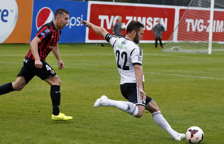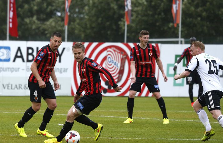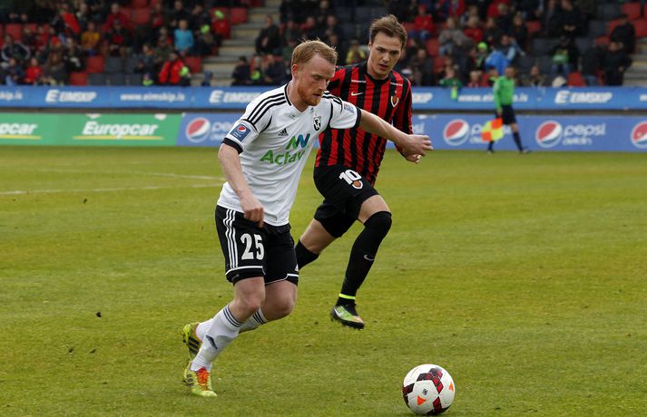 Umfjöllun, viðtöl. myndir og einkunnir: Víkingur - FH 2-3 | FH á toppinn á ný Guðmundur Marinó Ingvarsson á Víkingsvelli skrifar 25. ágúst 2014 15:41 FH tyllti sér á topp Pepsí deildar karla í fótbolta á nýjan leik í kvöld þegar liðið lagði Víking 3-2 á útivelli. Staðan í hálfleik var 0-0.Stefán Karlsson, ljósmyndari Vísis og Fréttablaðsins, var á leiknum í kvöld og náði þessum myndum sem sjá má hér fyrir ofan. Fyrri hálfleikur var tíðindalítill í kvöld þó FH hafi verið mikið meira með boltann og leikurinn fór nánast eingöngu fram á vallarhelmingi heimamanna. Það kom því eins og þruma úr heiðskíru lofti þegar Michael Abnett kom Víkingi yfir strax á fjórðu mínútu seinni hálfleiks. FH kann ekki vel við að vera undir jafnaði strax í fyrstu sókn eftir markið en mun meira jafnræði var með liðunum í seinni hálfleik og munaði mikið um að Aron Elís Þrándarson kom inn á í hálfleik en hann var settur á bekkinn fyrir leik. Þegar tæpur hálftími var eftir af leiknum skipti Heimir Guðjónsson Atla Guðnasyni inn á og í kjölfarið náði FH yfirhöndinni í leiknum á ný og ekki hjálpaði það Víkingum að varamaðurinn Ventseslav Ivanov fékk rautt spjald 17 mínútum eftir að hann kom inn á. FH lagði allt í sóknarleikinn vitandi það að Stjarnan missteig sig í gær. Stórsóknin skilaði FH tveimur mörkum á lokamínútunum en Atli Viðar Björnsson kom FH yfir skömmu eftir að hann kom inn á sem varamaður. Það er gríðarlegur styrkur fyrir FH að geta skipt eins öflugum vararmönnum inn á og raun ber vitni. Með þessa breidd er erfitt að sjá liðið misstíga sig á lokasprettinum þó enginn geti afskrifað Stjörnuna eða KR sem lúrir rétt fyrir aftan. Víkingur náði að malda í móinn í uppbótartíma en skaðinn var skeður og úrslitin ráðin. FH er komið með tveggja stiga forystu á toppi deildarinnar en Víkingur er sem fyrr í fjórða sæti en liðið hefur aðeins náð í eitt stig í þremur síðustu leikjum sínum og hefur kvatt toppbaráttuna. Davíð Þór: Alltaf líklegir til að skora með Atla Viðar á vellinum„Við sköpuðum okkur ekki nóg í fyrri hálfleik og vorum aðeins of hægir en svo fáum við þetta mark í andlitið en að sama skapi jöfnuðum við mínútu seinna. Við lentum ekkert í það miklum vandræðum,“ sagði Davíð Þór Viðarsson miðjumaður FH. „Við vorum einum fleiri og pressuðum þvílíkt á þá og auðvitað fer aðeins um mann þegar maður sækir og sækir og sækir og það kemur ekki nógu mikið út úr því en þegar maður er með Atli Viðar Björnsson inni á vellinum þá er maður alltaf líklegur til að skora. „Þeir gáfu okkur eitt mark og við gáfum þeim eitt mark, það var 1-1 í því,“ sagði Davíð og átti við tvö síðustu mörk leiksins. „Það var kæruleysi hjá okkur í lokin en það skiptir ekki öllu, við unnum þennan leik. Við vorum búnir að vera duglegir að halda boltanum og þeir komust ekki neitt. Þá gerðumst við sekir um smá kæruleysi en mér er alveg sama. „Við komumst aftur á toppinn og erum í flottum málum. Við ætlum okkur að vinna þetta mót og Stjarnan tapar ekki mörgum stigum og við þurfum að vinna okkar leiki. Við stefnum að því að vinna alla leiki fram að síðasta leiknum gegn Stjörnunni í október og þá sér maður hvort það verði úrslitaleikur,“ sagði Davíð. Ólafur Þórðarson: Dómarinn hafði ekki kjark í að dæma á FH„Ég er ósáttur við aulaskap minna leikmanna að hafa gefið þennan leik frá sér í dag,“ sagði Ólafur Þórðarson þjálfari Víkings. „Mér fannst fyrsta markið ekki vera gegn gangi leiksins. Við vörðumst vel og þeir voru ekki að skapa neitt. Þeir fengu ekkert fleiri færi en við og svo skorum við fínt mark úr fyrsta færinu okkar. „Ef við byrjum á byrjuninni þá er stærsta atvikið í leiknum þegar dómarinn sleppir því að reka Jón Ragnar (Jónsson) útaf í fyrri hálfleik. Hann hafði ekki kjark í að dæma á FH eins og hann átti að gera í kvöld. „Hann var síðasti maður og Viktor (Jónsson) er sloppinn í gegn. Ef hann flautar þá er það rautt spjald,“ sagði Ólafur sem var ekki heldur sáttur við rauða spjaldið sem Ivanov fékk. „Ég sé ekki nógu vel hvort Ivanov sé með olnbogann uppi. Mér fannst hann fara upp í þetta til að skalla boltann og það tók dómarann langan tíma að ákveða hvað hann ætti að gera þarna og hann lét FH tala þetta spjald á hann.“ Ólafur var ekki heldur sáttur við fyrra spjaldið sem Ivanov fékk en þar var hann ekki síður ósáttur við leikmanninn sem fékk spjaldið fyrir dýfu. „Hann fór niður, það er klárt. Hann gat staðið og fengið markmanninn á sig. Það átti hann að gera. Markmaðurinn fór í hann, það er engin spurning og fyrir mér er það brot.“ Aron Elís Þrándarson byrjaði á bekknum í dag en innkoma hans í upphafi seinni hálfleiks breytti leiknum fyrir Víking. „Hann hefur ekki verið að standa sig nógu vel að undanförnu. Það er þannig að ungir strákar spila upp og niður og hann er ungur og á langt í land ennþá. Það var ekki verið að refsa honum. Maður velur það lið sem maður treystir best hverju sinni. Það var vitað að Aron myndi koma inn í leiknum. Hann stóð sig nokkuð vel eftir að hann kom inn á,“ sagði Ólafur að lokum.Vísir/Stefán Pepsi Max-deild karla Mest lesið Joshua kjálkabraut Paul Sport Salah bað samherjana afsökunar Enski boltinn Gagnrýndi Paul: „Beið eftir að verða sleginn“ Sport Lineker fokillur við blaðamann: „Þvílíkt kjaftæði“ Enski boltinn Rekinn af HM eftir að hafa fallið á lyfjaprófi Sport Skírði soninn LFC og Mac Allister lét draum feðganna rætast Enski boltinn „Hann er ein stærsta ástæðan fyrir því“ Handbolti Varði fjó
