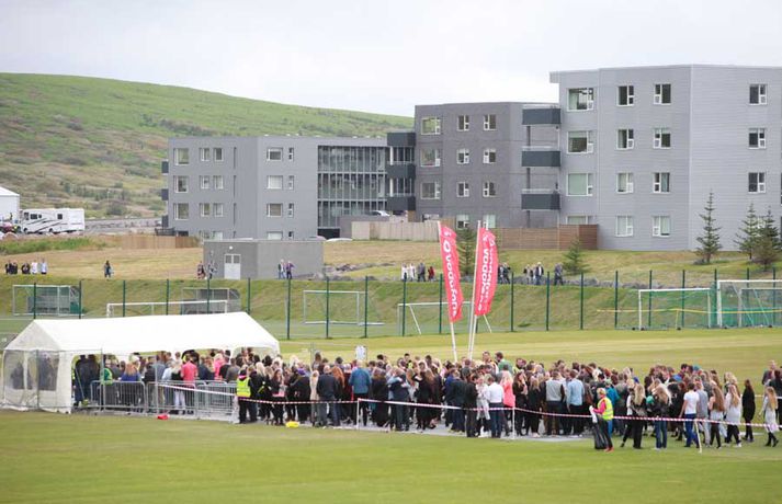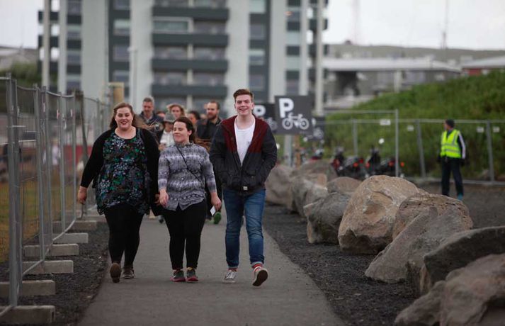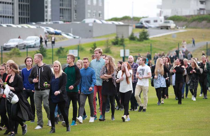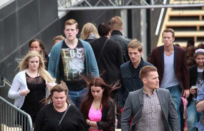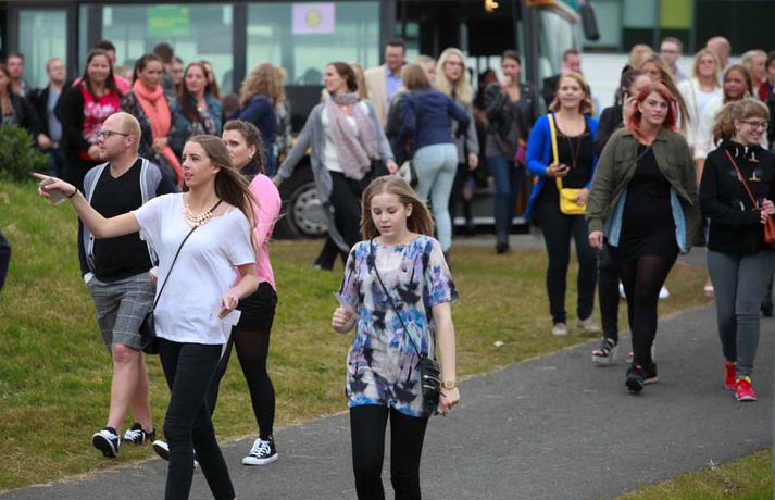 Tónleikagestir að gera sig klára Um 19 þúsund Íslendingar bíða spenntir eftir tónleikum Justin Timberlake í Kórnum í kvöld. 24. ágúst 2014 17:19