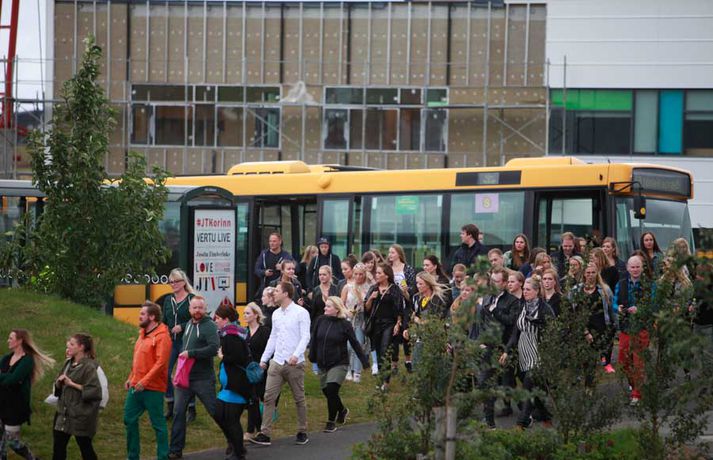 „Var svolítið eins og að taka strætó á busaballið" Thelma Einarsdóttir og Davíð Valsson eru mætt á Justin Timberlake tónleikana í Kórnum. Þau lögðu bílnum sínum við Smáralind og tóku strætó að Kórnum. Þeim fannst þau heldur eldri en hinir gestirnir í strætóinum. 24. ágúst 2014 18:47
