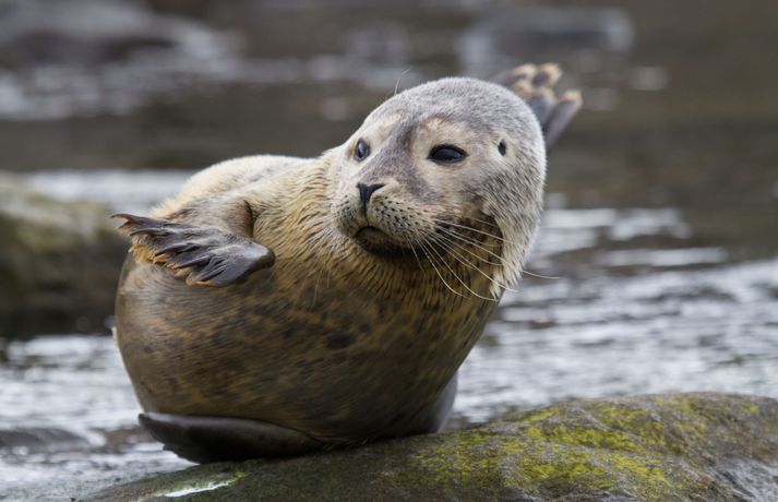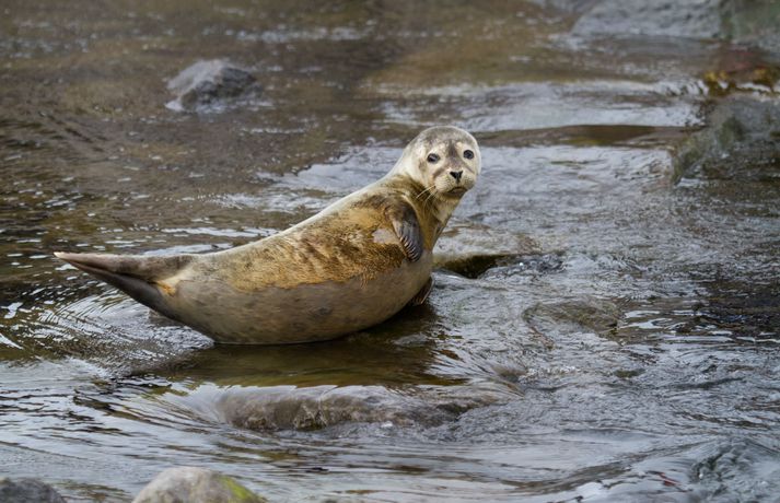 Myndir: Mannelskur kópur gleður íbúa og ferðamenn í Ólafsvík Nanna Elísa Jakobsdóttir skrifar 6. september 2014 19:25 Kópurinn liggur í mestu makindum í höfninni við Ólafsvík Myndir/Þröstur Albertsson „Ég hugsa að hann eigi eftir að vera þarna áfram. Honum líður vel þarna,“ segir Þröstur Albertsson, íbúi og ljósmyndari í Ólafsvík, en í höfn bæjarins hefur gullfallegur kópur vanið komur sínar. „Við urðum fyrst varir við hann um miðjan ágúst en svo hvarf hann. Síðan sá ég hann aftur í gærkvöldi þar sem hann sat á steini í höfninni.“ Þröstur tók myndirnar sem fylgja með fréttinni en kópurinn virtist ekkert hræddur og forðaðist ekki fólkið er það færði sig nær honum. Kópurinn virtist njóta athyglinnar sem hann fékk í dag en bæði ferðamenn og heimamenn hópuðust að honum og tóku myndir. „Það stoppaði ekki traffíkin hjá honum í dag,“ segir Þorsteinn og hlær. Kópurinn lá á steinhleðslu sem er umkringd vatni og því komst fólk ekki alveg að honum. „En þegar hann sást fyrst hérna þá leyfði hann fólki að klappa sér.“ Kópurinn virðist því mannelskur og er það kannski ekki að furða því makrílbátarnir hafa verið að gefa honum fisk í matinn. „Hann er líka búinn að stækka síðan ég sá hann síðast,“ fullyrðir Þorsteinn. „Hann er búinn að veita mörgum ánægju, bæði ferðamönnum og heimafólki.“ Kópar eru alla jafna á spena hjá móður sinni til fjögurra vikna aldurs en halda þá út í heiminn og sjá um sig sjálfir. Mest lesið Gefst upp og flytur eftir sjö ára mótmæli Innlent Mikill meirihluti féll fyrir íslenskri gervigreindarmynd Innlent Noem rekin Erlent Sjá sér með engu móti fært að ná björgunarflugi Innlent Hola í vegi tók fjóra bíla úr umferð á vanræktum vegkafla Innlent Blöskrar viðbrögðin eftir tilnefningu fyrir mistök Innlent Þór styrkti Kvennaathvarfið og fær að halda pútternum Innlent Jón Baldvin segir söguskýringu Dags af og frá: Samdi við Davíð um EES Innlent Komin með ógeð af því að hlusta á „hverja silkihúfuna á fætur annarri“ Innlent „Þessi umræða er rosalega niðurlægjandi“ Innlent Fleiri fréttir Tveir í varðhaldi vegna líkamsárásar Plóma mjólkar mest allra kúa og setti Íslandsmet Þessi leiða Viðreisn í Garðabæ Kynnir hvenær þjóðaratkvæðagreiðsla um viðræður við ESB fer fram Þau skipa lista Viðreisnar í Reykjavík Ráðist var á ungmenni í strætóskýli Íslendingar á flótta, nýr listi og fegrunaraðgerðir karla Óþolandi tafir vegna ágreinings við landeigendur heyri sögunni til Bein útsending: Kynna lista Viðreisnar borginni „Enginn meira hrelldur en ég þegar rödd Eiríks hljómaði á línunni“ Dómur barnaníðingsins Brynjars staðfestur Gefst upp og flytur eftir sjö ára mótmæli Hættur við lágmarksíbúafjölda í sveitarfélögum Blöskrar viðbrögðin eftir tilnefningu fyrir mistök Breiðu bökin verði skattlögð svo forsendur kjarasamninga standist Komin með ógeð af því að hlusta á „hverja silkihúfuna á fætur annarri“ Ákvarðanir teknar af heift en ekki skynsemi Andstæðingum borgarlínu hafi verið bolað af lista Fjórir handteknir eftir alvarlega líkamsárás „Þessi umræða er rosalega niðurlægjandi“ ASÍ segir niðurskurðaraðgerðir ekki koma til greina Þór styrkti Kvennaathvarfið og fær að halda pútternum Skrifstofustjórinn fær ekki áheyrn og situr uppi með feitan reikning Mikill meirihluti féll fyrir íslenskri gervigreindarmynd Jón Baldvin segir söguskýringu Dags af og frá: Samdi við Davíð um EES Ekki í fyrsta skipti sem oddvitarnir kljást um bílastæðamál Vilja gagnagrunn um hatursorðræðu og hatursglæpi á Íslandi Meiriháttar líkamsárás og sérstakt innbrotaeftirlit Hola í vegi tók fjóra bíla úr umferð á vanræktum vegkafla Tólf prósent Íslendinga á bótum Sjá meira