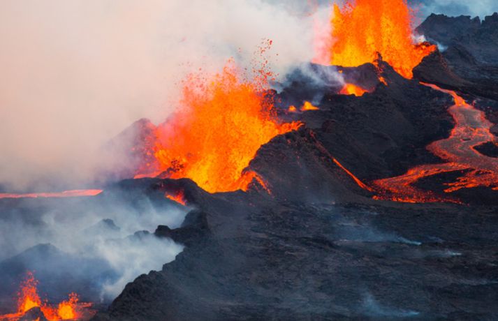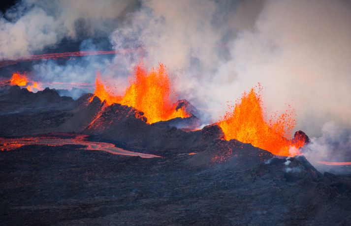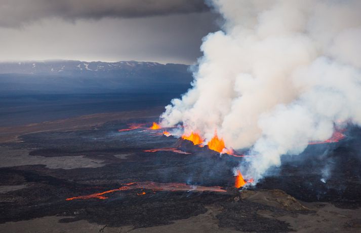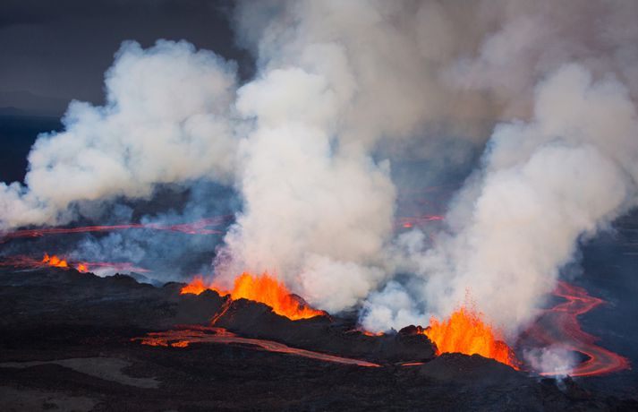 Magnificent images of the volcanic eruption By Samúel Karl Ólason 4. september 2014 07:34 Vísir/Auðunn The eruption at Holuhraun lava field, just north of Vatnajökull glacier, has now lasted just over five days. Last night lava from the eruption encompassed over nine square kilometers. Volcanic activity has not decreased since it started and a 4,8 earthquake was detected in the area at four o´clock last night. All traffic arround the lava field has been banned. Auðunn Níelsson, photographer for Fréttablaðið and Vísir, flew over the eruption yesterday and took these images og the breathtaking scene. News in English Mest lesið Ástæða fyrir því að genaumræðan hafi ekki náð mikilli útbreiðslu Innlent Veðurvaktin: Biðja fólk að halda sig heima í kvöld Veður Karlmaður lést í Bláa lóninu Innlent Hlýni á föstudag og snjórinn geti horfið í næstu viku Veður Færeyingar marka leið fyrir risastór neðansjávargöng Erlent Ráðgjafinn ráðinn tveimur dögum eftir að grennslast var fyrir um málið Innlent Stærsti fellibylur í sögu Jamaíka Erlent Ungur Miðflokksmaður gengst við rasisma og segir af sér Innlent Flugmaðurinn sem fórst millilenti oft í Reykjavík Innlent Biðu í fjóra tíma úti á braut og aðra fjóra við farangursbeltin Innlent