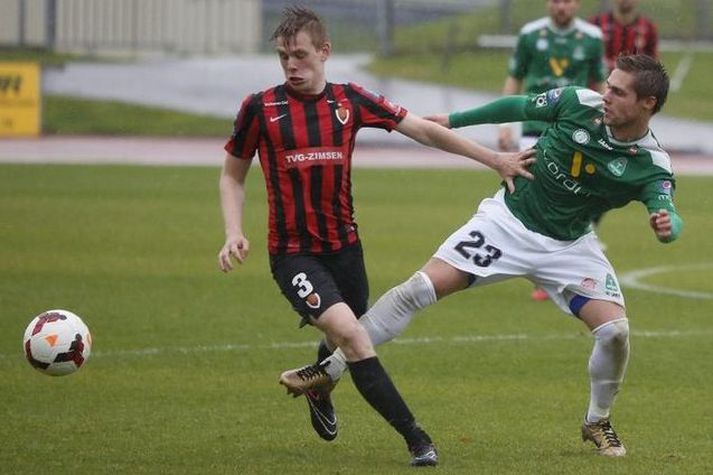 Stela Blikar Evrópusæti á markatölu? Tómas Þór Þórðarson skrifar 22. september 2014 13:15 Ívar Örn Jónsson úr Víkingi og Árni Vilhjálmsson eigast við í leik liðanna í gær. vísir/pjetur Víkingar eru heldur betur búnir að opna dyrnar fyrir Val, Fylki og Breiðablik í baráttunni um fjórða sæti Pepsi-deildarinnar, það síðasta sem gefur þátttökurétt í forkeppni Evrópudeildarinnar á næsta ári. Nýliðarnir virtust vera með sætið í höndum sér fyrir nokkrum vikum síðan, en jafntefli gegn Val fyrir viku og tap gegn Breiðabliki í gær er búið að hleypa fleiri liðum í baráttuna um sætið sem gefur af sér tugi milljóna króna. Víkingar eru eftir sem áður í bílstjórasætinu með 30 stig, tveimur stigum á undan Val, fimm stigum á undan Fylki og sex stigum á undan Breiðabliki þegar tvær umferðir eru eftir. Þeir eiga þó eftir tvo erfiða leiki og geta hæglega misst af Evrópu. Stig gæti ekki einu sinni verið nóg í lokaumferðinni. Valsmenn eru líklegastir til að stela af þeim sætinu þegar litið er á töfluna, en þeir eiga reyndar leik gegn FH í næstu umferð. Hafnafjarðarliðið gefur ekkert eftir þar enda í harðri baráttu um Íslandsmeistaratitilinn. Valur mætir svo Breiðabliki á útivelli í lokaumferðinni, en þar getur annaðhvort liðið mögulega tryggt sér Evrópusæti tapi Víkingar síðustu tveimur leikjum sínum gegn KR og Keflavík. Keflvíkingar verða væntanlega að berjast fyrir lífi sínu í lokaumferðinni. Breiðablik er sex stigum á eftir Víkingum, en þeir eiga Þórsara í næstu umferð sem verða að teljast líkleg þrjú stig í sarpinn. Þá mæta þeir sem fyrr segir Valsmönnum í lokaumferðinni og geta þar tryggt sér Evrópusæti á markatölu tapi Víkingar sínum tveimur. Þá má ekki gleyma Fylki sem er fimm stigum á eftir Víkingum og eiga leiki eftir gegn Fjölni og Fram. Tvö lið úr neðri hluta deildarinnar, en þó lið sem eru að berjast fyrir lífi sínu í deildinni. Fylkir kemst í Evrópu með tveimur stigum svo fremi að Víkingar tapi sínum tveimur og Valur og Breiðablik geri jafntefli í lokaumferðinni.Nær Evrópu-Maggi Evrópusæti eftir allt saman?vísir/ernirStaðan í Evrópubaráttunni núna:4. Víkingur 30 (-1)5. Valur 28 (+1)6. Fylkir 25 (-6)7. Breiðablik 24 (+2)Víkingur kemst í Evrópudeildina ef... ... Víkingar vinna KR eða Keflavík og Valur tapar stigum gegn FH eða Breiðabliki. Þá væru Víkingar komnir með 33 stig og Valur fengi aldrei meira en 32. Vinni Víkingur annan hvorn leikinn skiptir engu máli hvað Fylkir og Breiðablik gera.Valur kemst í Evrópudeildina ef... ... Valur vinnur FH og Breiðablik og Víkingur fær fjögur stig gegn KR og Keflavík. Þá ætti Valur líklega að komast í Evrópu með betri markatölu og engu máli skiptir hvað Breiðablik og Fylkir gera. ... Valur vinnur annaðhvort FH eða Breiðablik og Víkingur tapar báðum. Þá enda Valsmenn með 31 stig, en Víkingur 30 stig. ... Valur vinnur annað hvort FH eða Breiðablik og Víkingur fær aðeins eitt stig úr síðustu tveimur leikjunum. Fylkir má þá vinna báða sína en ekki vinna upp sjö marka mun milli sín og Vals. Breiðablik verður alltaf að vinna báða sína leiki.Fylkir kemst í Evrópudeildina ef... ... Fylkir vinnur bæði Fram og Fjölni og Víkingur tapar báðum og Valur fær aðeins eitt stig úr sínum tveimur leikjum. Fylkir og Valur geta bæði endað með 31 stig, en Fylkir er með verstu markatöluna. Líka gagnvart Víkingi sem er fimm mörkum á undan.Breiðablik kemst í Evrópudeildina ef... ... Það vinnur bæði Þór og Val, Víkingar tapa bæði gegn KR og Keflavík, Fylkir tapar stigum og Valur tapar stigum gegn FH. Þá endar Breiðablik með 30 stig líkt og Víkingur en kemst í Evrópu með betri markatölu. Pepsi Max-deild karla Tengdar fréttir Umfjöllun, viðtöl, einkunnir og myndir: Breiðablik - Víkingur 4-1 | Blikar í stuði gegn Víkingum Árni Vilhjálmsson skoraði þrennu þegar Blikar skelltu vængbrotnum Víkingum í rigningu og roki á Kópavogsvelli. 21. september 2014 00:01 Umfjöllun, viðtöl og einkunnir: Valur - Þór 2-0 | Evrópudraumur Vals lifir enn Valsmenn tryggðu sér sigur á Þór með tveimur síðbúnum mörkum. 21. september 2014 00:01 Umfjöllun, viðtöl, einkunnir og myndir: FH - Fram 4-2 | FH sigur í fjörugum leik FH náði þriggja stiga forystu í Pepis-deild karla með sigri á Fram. 21. september 2014 00:01 Umfjöllun, viðtöl og einkunnir: Keflavík - Fylkir 0-1 | Sterkur sigur Fylkis í rokinu í Keflavík Fylkismenn kvöddu fallbaráttuna með sigri á Nettó-vellinum í dag. 21. september 2014 00:01 Umfjöllun, viðtöl og einkunnir: KR - ÍBV 3-3 | ÍBV missti niður unninn leik KR og ÍBV skildu jöfn 3-3 í hörku leik á KR-vellinum í Pepsí deild karla í fótbolta í dag. Leikmenn létu erfiðar aðstæður ekki slá sig út af laginu. 21. september 2014 00:01 Mest lesið Arnar Daði rekinn frá Stjörnunni en áfram þjálfari kvennaliðsins Handbolti Koepka fyrsta stjarnan sem riftir samningi við LIV Golf Ótrúlegur sigur á HM: „Ég er mjög tregur svo pressan nær ekki til mín“ Sport „Þetta er stærsti klúbbur Íslands“ Íslenski boltinn Man. Utd reyndi stíft en Semenyo kaus City Enski boltinn Þessi tíu eru tilnefnd sem Íþróttamaður ársins 2025: 23 ára aldursmunur Sport Sagan ekki sönn: „Veit ekki hvaðan þetta á að hafa komið“ Íslenski boltinn Öll höllin æpti nafn Gísla í spennutrylli Handbolti Ekkert spilað í vetur en gæti mætt Íslandi í fyrsta leik á EM Handbolti Stefndi á ÓL en fannst látinn á hótelherbergi Sport Fleiri fréttir Úr Bestu heim í Hauka „Þetta er stærsti klúbbur Íslands“ Sagan ekki sönn: „Veit ekki hvaðan þetta á að hafa komið“ Meira en 37 stöðugildi hjá Knattspyrnusambandi Íslands Óskar Hrafn um komu Arnórs Ingva: „Gífurlega dýrmætt