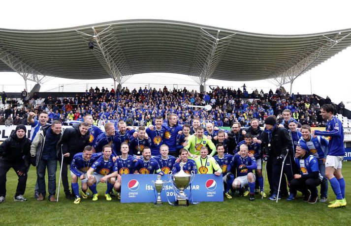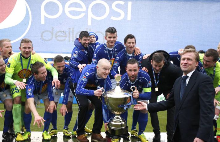 Stjarnan stóð uppi sem Íslandsmeistari í Pepsi-deild karla í knattspyrnu eftir 2-1 sigur á FH í hreinum úrslitaleik um titilinn í gær. Þetta er fyrsti stóri titill Stjörnunnar í karlaflokki, en stelpurnar úr Garðabænum urðu tvöfaldir meistarar í ár. Pepsi-mörkin voru á dagskrá í síðasta sinn í gærkvöldi þegar þau gerðu upp lokaumferðina og svo allt mótið í árlegum uppgjörsþætti sínum. Það var við hæfi að mótinu væri lokað með frábæru myndbandi sem sýnt var í gær. Það má sjá í spilaranum hér að ofan.Vísir/Andri MarinóVísir/Andri Marinó