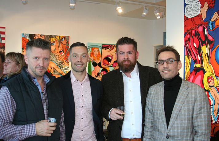 Hjalti Parelius fagnaði stórum samningi við Alvogen 12. október 2014 16:24 Myndir/Bergný Th. Baldursdóttir Myndlistarmaðurinn Hjalti Parelius Finnsson hefur verið ráðinn til að mála þrjú risastór olíumálverk í nýjar höfuðstöðvar Alvogen í Vatnsmýrinni. Þetta er stærsti samningur sem íslenskur myndlistamaður hefur fengið í rúmlega hálfa öld. Hjalti bauð til kokteilboðs í Reykjavik Modern Art Gallery í gær til að fagna þessum áfanga ásamt góðum gestum. Verkefnið er afar umfangsmikið og vinna við það mun taka tvö ár. Alls verða verkin rúmlega 100 fm að stærð og verða afhjúpuð árið 2016. Fram að þeim tíma mun Hjalti ekki geta sinnt neinum öðrum verkefnum. „Þetta er mikill heiður fyrir mig og ég er þakklátur fyrir það traust sem mér er sýnt. Þetta er gríðarlega umfangsmikið verk og á sama tíma mjög spennandi fyrir mig sem myndlistarmann,” segir Hjalti Parelius. Hjalti hefur vakið mikla athygli fyrir verk sín og er hvað þekktastur fyrir olíumálverk þar sem teiknimyndamótíf eru í forgrunni. Mest lesið Vinsælustu myndböndin á Vísi á árinu Lífið Íslenskur mágur Rex Heuermann efins um ódæði hans Lífið Ásgeir Kolbeins furðu lostinn yfir steini í jólapakkanum Lífið „Fyrri kona mannsins míns er með Parkinson, ekki ég“ Áskorun Frægir fjölguðu sér árið 2025 Lífið Sat uppi með sex kíló af kæstri skötu Lífið Skilaði týndum heyrnartólum alla leið til Hamborgar Lífið Jólagjafir íslenskra vinnustaða Lífið Þakkar Trump í ólettutilkynningunni Lífið Sjáðu nýja stiklu úr stjörnuprýddri hasarmynd Balta Lífið Fleiri fréttir Sjálfur jólasveinninn skotspónn samsæriskenninga Þakkar Trump í ólettutilkynningunni Íslenskur mágur Rex Heuermann efins um ódæði hans Vinsælustu myndböndin á Vísi á árinu Frægir fjölguðu sér árið 2025 Gítarleikari The Cure er látinn Skilaði týndum heyrnartólum alla leið til Hamborgar Sjáðu nýja stiklu úr stjörnuprýddri hasarmynd Balta Ásgeir Kolbeins furðu lostinn yfir steini í jólapakkanum Viðtöl ársins 2025: Missir, afsögn ráðherra, umsáturseinelti og læknir sem þóttist vera með krabbamein Sat uppi með sex kíló af kæstri skötu Kristmundur Axel tók við af Bubba Seinfeld og Friends-leikari látinn Jólagjafir íslenskra vinnustaða Deildar meiningar um lyktina: „Þetta er byrjendaskata“ Fréttamenn gæða sér á skötu í gegnum árin Laufey á landinu Þar sem vinsælustu lög landsins verða til Þessi smurðu mest á reikning Jommunnar Einhverfir kaþólikkar um allan heim heita Þorlákur Cooper bað móðurina um hönd Hadid „Mér finnst gaman að láta sjokkera mig“ Brúðkaup ársins 2025 Heitt í hamsi hjá gestum á „helvíti á jörðu“ í Breiðholti Chris Rea hefur ekið heim um jólin í síðasta skipti Saga jarðaði alla við borðið Vísa ásökunum Skinner um kosningasvindl á bug Kimmel ávarpar bresku þjóðina: Frábært ár fyrir fasisma „Ég hugsa til þín á hverjum einasta degi“ Stjörnulífið: Óskar tíkunum gleðilegra jóla Sjá meira