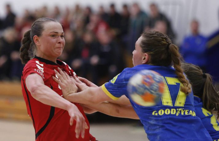 Grótta afgreiddi Hauka | Myndir 7. nóvember 2014 21:45 Það er aldrei gott að lenda í lúkunum á Önnu Úrsulu. Þessi Haukastúlka virkar hreinlega skíthrædd við hana. vísir/valli Grótta styrkti stöðu sína í öðru sæti Olís-deildar kvenna í kvöld með fínum sigri á Haukum. Haukastúlkur mættu grimmar til leiks og stóðu í Gróttunni lengi vel. Jafnt var á með liðunum í leikhléi. Grótta tók aftur á móti fram úr í þeim síðari. Grótta er með fjórtán stig í öðru sæti deildarinnar eða tveimur færri en topplið Fram. Haukar sitja sem fastast í níunda sætinu.Grótta-Haukar 23-19 (12-12) Mörk Gróttu: Laufey Ásta Guðmundsdóttir 7, Anna Úrsula Guðmundsdóttir 4, Guðný Hjaltadóttir 4, Lovísa Thompson 3, Karólína Lárudóttir 2, Eva Björk Davíðsdóttir 2, Arndís María Erlingsdóttir 1. Mörk Hauka: Marija Gedroit 7, Karen Helga Díönudóttir 5, Ragnheiður Sveinsdóttir 3, Viktoría Valdimarsdóttir 2, Silja Ísberg 1, Ásta Björk Agnarsdóttir 1. Hér að ofan má sjá myndir sem Valgarður Gíslason tók af leiknum í kvöld. Olís-deild kvenna Mest lesið „Örugglega nokkrir Fantasy-þjálfarar ósáttir“ Enski boltinn „Haaland er þetta góður“ Enski boltinn Tilþrif 5. umferðar: Jukic stal senunni Körfubolti Kærastan tók eftir því að eitthvað var að Handbolti „Það verður hundleiðinlegt að spila við Val“ Íslenski boltinn Lygilega jafnt á toppnum eftir sigur AC Milan Fótbolti Ítalinn hoppaði upp fyrir Alcaraz eftir sigur í París Sport Uppgjörið: Þýskaland - Ísland 29-31 | Svöruðu skellinum með frábærum sigri Handbolti Hermann tekinn við Val Íslenski boltinn Hólmbert skoraði í Suður-Kóreu og stjórnaði sigursöngvum eftir leik Fótbolti Fleiri fréttir Uppgjörið: Þýskaland - Ísland 29-31 | Svöruðu skellinum með frábærum sigri Kærastan tók eftir því að eitthvað var að KA/Þór gerði jafntefli við botnliðið Valskonur unnu 24 marka sigur og ÍR upp í annað sætið „Fannst þetta verða svartara og svartara“ Alfreð hissa: Veit að Íslendingar geta mun betur Andri kallaður inn í hópinn fyrir meiddan Hauk Arnór Snær snýr aftur heim Besta handboltadeild heims missir aðalstyrktaraðila sinn Grafalvarleg staða: „Þurfum að fara í sársaukafullar aðgerðir“ ÍR áfram eftir sigur í Mosfellsbæ Uppgjörið: Þýskaland - Ísland 42-31 | Þrot í Þýskalandi Tilkynnti um óléttu og nýjan samning á sama tíma Patrekur hættur eftir dapurt gengi Stjörnunnar Rekinn fyrir ummæli sín um krabbameinssjúka handboltagoðsögn Janus Daði myndaður í heimsókn hjá Barcelona Epicbet sýni handboltann í leyfisleysi: „Enda ólöglegar síður“ Teitur inn í landsliðið Gísli bjó til meira en þriðjung markanna Haukur magnaður í sigri Löwen Blær skoraði þrjú og lagði upp jöfnunarmarkið KA/Þór sótti sigur gegn Fram og stigalausar Stjörnukonur Fram kjöldró HK og spenna í Eyjum Meistararnir unnu gegn ÍBV og ÍR hafði betur gegn Selfyssingum Donni og félagar björguðu stigi undir lokin Afturelding komst upp að hlið Hauka Seldu bleika búninginn hennar Herrem fyrir meira en milljón „Leið vel þegar ég fór inn úr færinu“ Uppgjörið FH - Haukar 27-26 | Birgir Már tryggði FH sigur eftir spennutrylli Bernard fór mikinn en Valsmenn sluppu með sigurinn Sjá meira