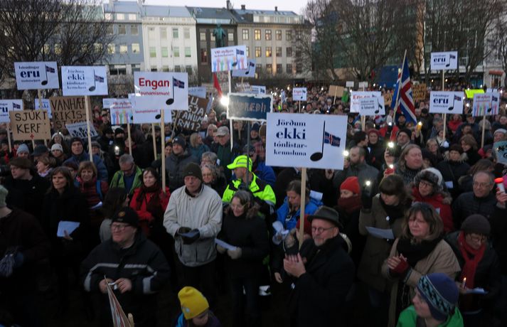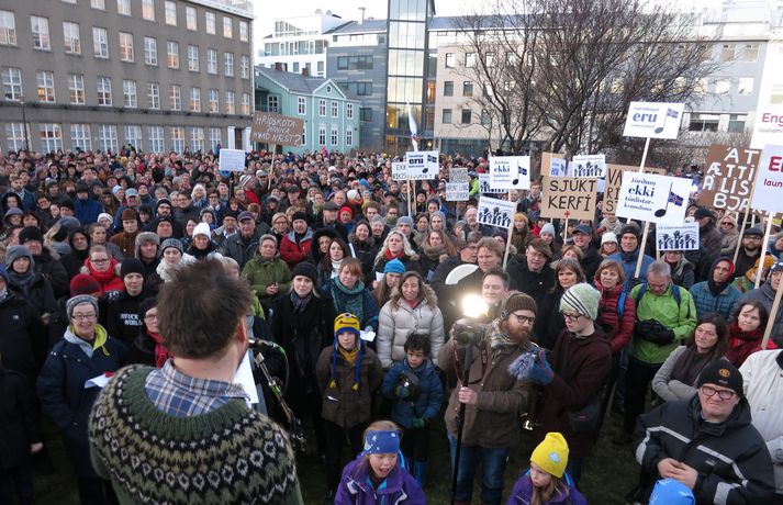 Á fimmta þúsund manns mótmæltu á Austurvelli í dag en mótmælin hófust klukkan 17. „Fólk er reitt og sárt. Þessi ríkisstjórnin misbýður ákveðnum grunngildum trekk í trekk. Ofan á það sýnir hún eintóman skæting og leiðindi og dólgshátt þegar hún fær á sig gagnrýni,“ segir Svavar Knútur einn skipuleggjenda mótmælanna. Hann segir mótmælin algjörlega grasrótarsprottin. Hópurinn eigi ekki neitt sameiginlegt annað en að misbjóða framkoma ríkisstjórnarinnar. Beina útsendingu frá Austurvelli má sjá hér.Hér fyrir neðan má sjá myndir og færslur af Instagram og Twitter. Hægt er að senda myndir og fleira til ritstjórnar með því að merkja færslurnar #visir.Uppfært klukkan 18:00. Um 4.500 manns eru nú stödd á Austurvelli og taka þar þátt í mótmælunum. Uppfært klukkan 19:15. Mótmælin eru svo gott sem búin og fólk farið að streyma frá Austurvelli. Nýja Ísland dagur 1 #nýjaísland #bravenewicelandA photo posted by @asgeirhelgi on Nov 11, 2014 at 9:19am PST #austurvollur #austurvöllur pic.twitter.com/Jk6pqBZGOF— Asgeir B. Torfason (@asgeirbt) November 3, 2014 Pakkað á mótmælafundi á Austurvelli! #austurvöllurA photo posted by Vilhjálmur Þorsteinsson (@villithorsteins) on Nov 11, 2014 at 9:05am PST Svavar Knútur er maðurinn #austurvöllurA photo posted by G. Pétur Matthíasson (@gpetur) on Nov 11, 2014 at 9:17am PST #austurvöllurA photo posted by Vilhjálmur Þorsteinsson (@villithorsteins) on Nov 11, 2014 at 9:06am PST Mótmæli #austurvöllurA photo posted by Steinunn Friðriksdóttir (@steinunnfridriks) on Nov 11, 2014 at 9:11am PST Enn og aftur #austurvöllur #mótmæliA photo posted by Guðni Tómasson (@gydnid) on Nov 11, 2014 at 8:56am PST Here we go again... Fullur Austurvöllur fólkið minnir á sig.A photo posted by Andri Magnason (@andrimagnason) on Nov 11, 2014 at 9:15am PST Fólki er nóg boðið. Fullur Austurvöllur.A photo posted by Svandís Svavarsdóttir (@svasva64) on Nov 11, 2014 at 9:27am PST #austurvöllur #austurvollurA photo posted by Sóley Tómasdóttir (@soleytomasar) on Nov 11, 2014 at 9:24am PST #austurvöllurA photo posted by Heiða Kristín Helgadóttir (@heidabest) on Nov 11, 2014 at 9:10am PST #austurvöllur #mótmæli2014 pic.twitter.com/Qn7RLAjzrd— Guðmundur Hörður (@gudmundurhordur) November 3, 2014 Austurvöllur 16:00. An hour before the protest. The barricades are being set up. pic.twitter.com/xpMHRuGvXq— Guðjón Idir (@Gudjon_Idir) November 3, 2014 MÆTA - MÆTA - MÆTA - Austurvöllur kl 17 í dag!!!. Nú er spurning hvort ég og aðrir sem eru í vanda dröslast út... http://t.co/YoMy1FRdlY— Greta Jonsdottir (@GretaJons) November 3, 2014 Mótmæli á Austurvelli 3.11.2014 #demonstration #mótmæliA photo posted by Elsa Ófeigsdóttir (@elsaof) on Nov 11, 2014 at 9:31am PST #mótmæli #demonstrationA photo posted by Camilla Reuter (@ceereu) on Nov 11, 2014 at 9:12am PST Fyrsta kennslustund í mannasiðum #mótmæli gegn fólki sem kann enga;-)A photo posted by Kjartan Bollason (@kbwalking) on Nov 11, 2014 at 9:03am PST Öxar við ána #austurvöllurA photo posted by G. Pétur Matthíasson (@gpetur) on Nov 11, 2014 at 9:33am PST #austurvöllurEtt foto publicerat av Vilhjálmur Þorsteinsson (@villithorsteins) den Nov 11, 2014 at 9:41 PST Austurvöllur hrópar ,,Sigmundur Davíð hvar er peningurinn minn" ,,burt með byssurnar" ,,burt með loforðin" ,,áfram lýðræði" ,,áfram Ísland"— Ísak Hinriksson (@isakhinriksson) November 3, 2014 Post by A Year in Iceland. Hér er samstaða og mótstaða!! #austurvöllur pic.twitter.com/vT7BUKNyH7— Rakel Hildardóttir (@rakelhildar) November 3, 2014 Lifi byltingin! #austurvöllur #bylting pic.twitter.com/D8IfWnvEo2— Haukur Jónasson (@Swooper86) November 3, 2014 #jón2014 #mótmælin2014 #Austurvöllur2014 #svikastjórn2014A photo posted by Sara Stef (@sarastefs) on Nov 11, 2014 at 9:47am PST Allt að gerastA photo posted by Elísabet (@elisaaabetj) on Nov 11, 2014 at 10:01am PST Bland í poka. #mótmæliA photo posted by Líf Magneudóttir (@lifmagn) on Nov 11, 2014 at 9:47am PST Á Austurvelli var mótmælt #lifibyltingin #SHÍ #RöskvaA photo posted by Röskva (@roskvaroskva) on Nov 11, 2014 at 9:47am PST