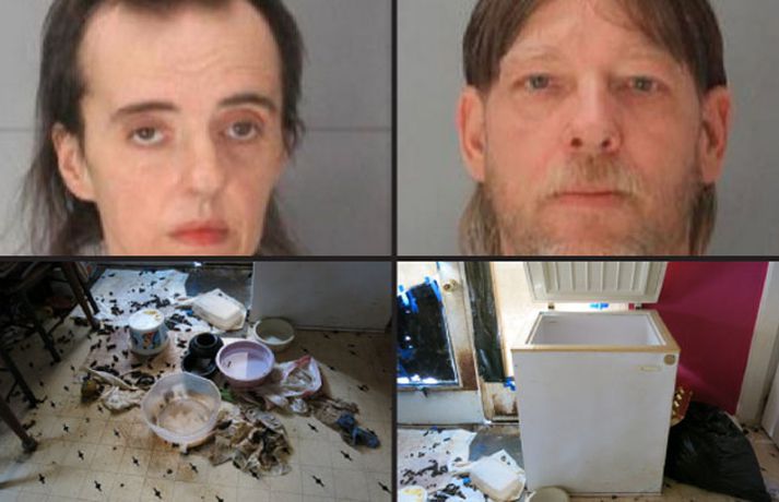Stúlka og ellefu hundar fjarlægðir af skítugu heimili Kjartan Atli Kjartansson skrifar 10. nóvember 2014 11:04 Hér má sjá hjónin og íbúðina. Lögreglan í Richland sýslu í Suður Karólínu í Bandaríkjunum hefur birt myndir af híbýlum hjóna sem áttu eina stúlku og ellefu hunda. Hjónin voru handtekin fyrir að stela rafmagni í lok síðasta mánaðar og var dóttir þeirra tekin af þeim í kjölfarið auk þess sem hundarnir voru sendir í umönnun enda voru aðstæður á heimilinu vægast sagt slæmar. Hér að neðan má sjá myndir sem lögreglan sendi fjölmiðlum og vildi koma á framfæri. Lesendur geta flett í gegnum myndirnar með því að smella á örvarnar við hlið myndanna. Ástæða er til þess að vara við sumum myndanna. Á myndunum má sjá dýraúrgang og rusl allsstaðar á heimilinu. Einn hundurinn var orðinn blindur og hafði misst eina löpp.Í yfirlýsingu lögreglu kom fram að hjónin Paul og Melanie Howard hafi ekkert hugsað um ellefu ára dóttur sína. Hundar hjónanna er nú hjá stofnun sem annast dýr sem hafa fengið grimmúðlega meðferð. Auk þess að vera kærð fyrir þjófnað á rafmagni var hjónunum birt kæra fyrir vanrækslu á barni og dýraníð. Mest lesið Sakfelling Steinu staðfest Innlent Bein vaxið yfir augun og fólk afmyndast í andliti við notkun peptíða Innlent Keyrði inn í hvítan vegg: „Í besta falli vítavert gáleysi“ Innlent Þotum Icelandair lent í Reykjavík Innlent Mette boðar óvænt til kosninga Erlent Tíu manns í árekstri á Suðurlandi Innlent Tækinu ekki ekið of hratt þó hraðinn segi ekki allt Innlent Voru að tína dópið úr töskunni þegar löggan réðst til atlögu Innlent Alvarleg hótun gegn orkukerfi Norðurlandanna Erlent Vilja borgarlest í stað borgarlínu Innlent Fleiri fréttir Úkraínumenn opna drónaverksmiðju á Englandi Mette boðar óvænt til kosninga Alvarleg hótun gegn orkukerfi Norðurlandanna Segjast hafa skotið hryðjuverkamenn á bandarískum báti Hyggjast gefa í kjarnorku- og eldflaugaáætlanir sínar Evrópskir unglingar reykja mest allra af rafrettum Ráðamenn tvísaga um markmið viðræðanna við Íran Gögn um ásökun konu á hendur Trump vantar í Epstein-skjölin Boðaði þingkosningar í skyndi Fjarhægriflokkur sakaður um „kerfisbundna frændhygli“ Nýr Louvre-stjóri sóttur til Versala Fyrrverandi kærasta segir Høiby oft hafa gripið um háls hennar Hefja ræðismannaþjónustu í landtökubyggð á Vesturbakkanum Tíðindalítil en metlöng stefnuræða Sjö gámar frá Íslandi á leið til Úkraínu Noregskonungur á sjúkrahús á Tenerife Íslendingar geti verið stoltir af stuðningnum við Úkraínumenn Jagland á sjúkrahúsi í kjölfar ákærunnar Komu forsætisráðherranum í var vegna sprengjuhótunar Fjögur ár frá innrás Rússa: Sorg sé ekki nógu stórt orð Ráðast Bandaríkin á Íran? Segja Trump munu reiða sig á ráðgjöf Witkoff og Kushner Sendi Epstein sænsk kvenleiðtogaefni Nick Reiner segist saklaus af því að hafa myrt foreldra sína Áhrif stóraukins geimrusls á lofthjúpinn óþekkt Forsætisráðherra sækir minningarathöfn og fundi í Kænugarði Samþykktu Suðureyjargöng og hækkun eftirlaunaaldurs Sendiherra sem missti stöðuna vegna tengsla við Epstein handtekinn Hundruð milljarða í að verja strandir fyrir ágangi sjávar Yngsti forsætisráðherrann sór embættiseið Norðaustan stórhríð hrellir íbúa austurstrandar Bandaríkjanna Sjá meira