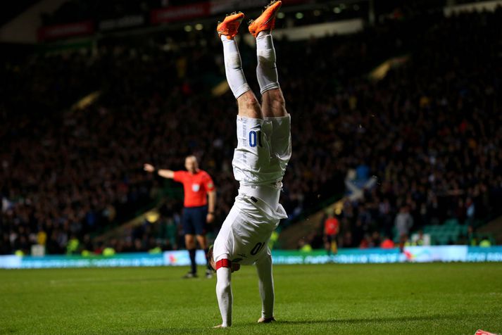 Rooney fór í handahlaup fyrir son sinn Eiríkur Stefán Ásgiersson skrifar 20. nóvember 2014 15:30 Vísir/Getty Wayne Rooney segir að hann hafi fagnað öðru marka sinna gegn Skotlandi um helgina með handahlaupi fyrir Kai, fimm ára son sinn. „Hann hefur verið að gera mikið af handahlaupum að undanförnu og pantaði eitt hjá mér,“ sagði Rooney við enska fjölimðla en hann fagnaði marki sínu af mikilli innlifun eins og sjá má í myndbandinu hér fyrir neðan. „Stundum þegar úrslitin falla ekki með manni þá vilja sumir meina að við séum ekki að leggja okkur fram fyrir land og þjóð. En það er fjarri sannleikanum,“ sagði Rooney. Í myndbandinu sést Rooney einnig fagna marki í leik með U-16 liði Englands gegn Skotlandi á samskonar hátt. Enski boltinn Tengdar fréttir Rooney með tvö í sigri á Skotum - Írar burstuðu Bandaríkjamenn Wayne Rooney skoraði tvö mörk fyrir enska landsliðið í 3-1 sigri á nágrönnum sínum í Skotlandi í vináttulandsleik á Celtic Park í Glasgow í kvöld. Írar unnu á sama tíma 4-1 stórsigur á Bandaríkjunum. 18. nóvember 2014 21:57 Rooney: Mjög sérstakt kvöld fyrir mig Wayne Rooney, fyrirliði enska landsliðsins, var kátur eftir 3-1 sigur á Skotum í vináttulandsleik í Glasgow í kvöld en hann skoraði tvö mörk í leiknum og er þar með kominn með 46 mörk fyrir enska landsliðið. 18. nóvember 2014 22:24 Mest lesið Laufey Lín hjálpaði Alysu Liu að vinna gullið Sport Drukkin í útsendingu og baðst afsökunar Sport Þórsarar fá nýtt íþróttahús Sport Uppgjör: Haukar - FH 25-32| Haukar létu valta yfir sig á heimavelli Handbolti Ísraelskir Ólympíuforkólfar vilja banna sjónvarpslýsanda Sport „Þegar ég lít til baka veit ég ekki hvað ég var að hugsa“ Enski boltinn „Það væri bara mjög hrokafullt að vera ekki ánægður“ Sport Hákon tekinn af velli í hálfleik í tapleik Fótbolti Slot býst við Isak í mars og vonast eftir „bestu útgáfunni“ af honum Enski boltinn Víkingur og Breiðablik unnu bæði 1-0 sigra í kvöld Íslenski boltinn Fleiri fréttir „Þegar ég lít til baka veit ég ekki hvað ég var að hugsa“ Slot býst við Isak í mars og vonast eftir „bestu útgáfunni“ af honum Hákon tekinn af velli í hálfleik í tapleik Víkingur og Breiðablik unnu bæði 1-0 sigra í kvöld Stórsigur hjá Forest en Brann tapaði á heimavelli „Prestianni-lögin“ gætu orðið hluti af fótboltanum Snýr aftur heim frá Val: „Nenni ekki að hafa þetta of væmið“ Reddaði Blikum en þurfti svo að vera í stúkunni Frekur Gordon minnti á Shearer og bætti markamet hans Sjáðu mörkin úr Meistaradeildinni: Fyrrum Valsarinn vann Inter, Gordon setti fernu og Madrídingar molnuðu Þjálfari danska dýnamítsins fallinn frá „Ef við viljum fá Haaland verðum við að fá Messi aftur“ Sjáðu Arsenal renna á rassinn gegn Úlfunum Fabrégas reif í treyju leikmanns en Allegri fékk rautt spjald „Mjög erfitt að sætta sig við þetta“ „Okkur var refsað fyrir það“ Atletico Madrid missti niður tveggja marka forskot í Belgíu Arsenal missti niður tveggja marka forskot í jafntefli við botnliðið Gamli Valsarinn í stuði þegar Bodö skellti Inter í Meistaradeildinni Þjálfari Stólanna segir upp störfum áður en tímabilið byrjar Elísa skoraði glæsimark hjá Fanneyju en Blikar töpuðu 11-1 samanlagt Gordon bakarameistarinn í bökun í Bakú „Af hverju ætti hann að vera að setja treyjuna yfir munninn?“ Sverrir frá Eyjum til FH Benítez valtur í sessi og gamall lærisveinn hans gæti stýrt Sverri Sparar ekki stóru orðin í garð Íslendingsins sem gæti farið alla leið í boltanum Sjáðu mörkin úr Meistaradeildinni: Dansinn hjá Vinicius, draumaleikur Doué og fimmfaldur fögnuður Valdimar fer ekki til Mexíkó Skýtur skökku við: Beindi spjótum sínum að Mourinho Segist ekki hafa kallað Vinicius apa og Benfica bakkar hann upp Sjá meira