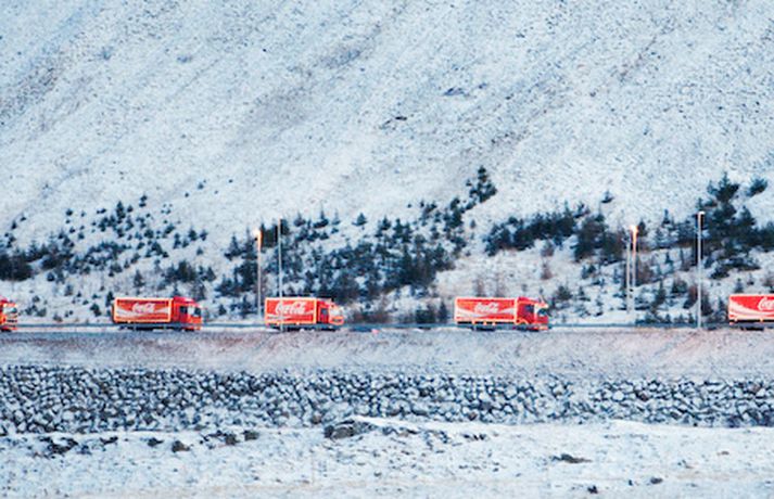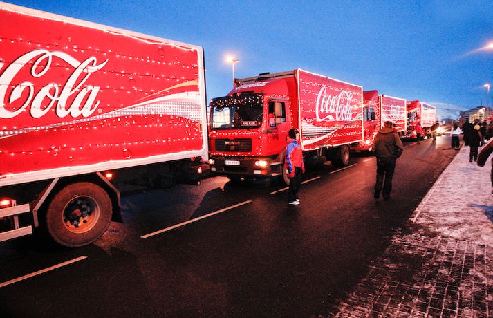 Jólaskreyttir Coca-Cola trukkar Vífilfells halda á morgun, laugardag, í sína árlegu ferð um höfuðborgarsvæðið.Jólalestin heldur af stað frá Stuðlahálsi kl. 16 og mun ferðast um helstu hverfi höfuðborgarsvæðisins en hápunktinum er náð um kl. 17 þegar hersingin ekur niður Laugaveginn. Áætlað er að um 15.000 manns fylgist með lestinni ár hvert og búist er við svipuðum fjölda í ár þegar lestin fer í sína nítjándu ferð.Tveir kílómetrar af ljósaseríum Jólalestin samanstendur af fimm stórum flutningabílum sem skreyttir eru með rúmlega tveimur kílómetrum af ljósaseríum. Það tekur starfsmenn Vífilfells yfir 10 klukkutíma að skreyta bílana. Jólalestin spilar þekkt jólalög á ferð sinni um borgina og til þess að lögin fái örugglega að njóta sín er notað sama hljóðkerfi og á stórtónleikum í Laugardalshöll. Jólalestin fær lögreglufylgd og björgunarsveitarmenn munu ganga meðfram henni við stærstu verslunarkjarna og á Laugaveginum , til að draga úr slysahættu.Gleðja börnin Jólalestin mun hvergi stoppa nema stuttlega í Spönginni í Grafarvogi um kl. 16:30 og við Smáralind upp úr kl. 18. Þá verður Jólalestin stöðvuð við Barnaspítala Hringsins þar sem jólasveinninn mun líta inn til barnanna og færa þeim gjafir. Nánari leiðarlýsingu Jólalestarinnar er að finna á coke.is en þar er hægt að fylgjast með á korti hvar lestin er stödd hverju sinni, auk þess sem hægt er að horfa á beina útsendingu frá för hennar um bæinn. Fólk getur smellt myndum af jólalestinni og merkt þær #jolalestin. Þeir sem taka skemmtilegustu myndirnar fá verðlaun.