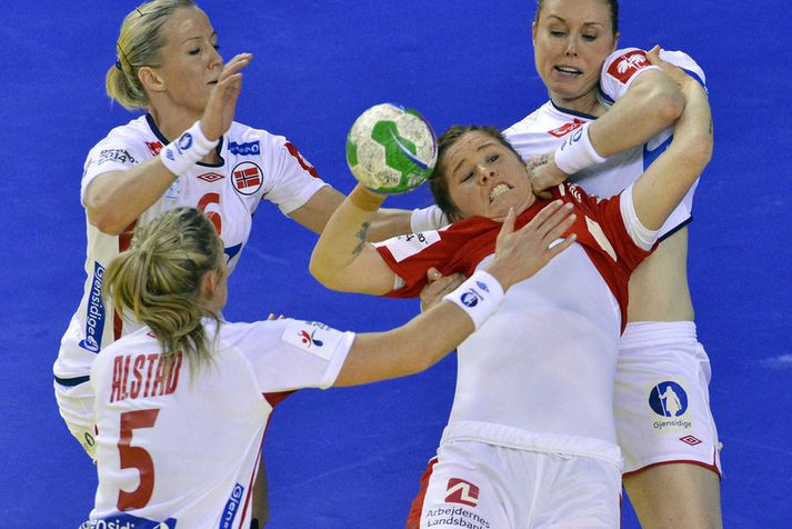 Hafa varðveitt drápseðlið frá gömlu góðu hvaladögunum Óskar Ófeigur Jónsson skrifar 12. desember 2014 14:15 Vísir/AP Þórir Hergeirsson og stelpurnar hans í norska kvennalandsliðinu koma með fullt hús inn í milliriðilinn á EM í handbolta eftir 27-21 sigur á Danmörku í lokaumferð riðlakeppninnar í gær. Danir unnu brons á HM í fyrra og ætluðu sér stóra hluti á EM. Liðið fer hinsvegar bara með eitt stig inn í milliriðilinn eða þremur stigum minna en bæði Spánn og Noregur og það verður því mjög erfitt fyrir þær dönsku að komast í undanúrslitin. Blaðamaður danska blaðsins Ekstra Bladet er bjartsýnn fyrir hönd Þóris og leikmanna hans í norska kvennalandsliðinu og telur að þarna sé eitt sigurstranglegasta lið keppninnar á ferðinni. Hann nefnir sérstaklega drápseðli liðsins sem hann telur að Norðmenn hafi varðveitt frá gömlu góðu hvaladögunum. „Þær keyra hnífanna í andstæðinginn þegar hann er að berjast við að ná andanum og hefur misst vonina," skrifar blaðamaður Ekstra Bladet í grein sinni um leikinn. Norsku stelpurnar keyrðu hreinlega yfir þær dönsku í seinni hálfleiknum sem Noregur vann 15-8. Danska liðið var 13-10 yfir í leiknum þegar rúmar tvær mínútur voru til hálfleiks en norska liðið vann hinsvegar næstu 27 mínútur 14-5 og gerði út um leikinn.Vísir/AP Handbolti Mest lesið Hafnaði 34 milljónum: „Vil ekki styðja kerfi sem býr til fíkn og eyðileggur líf“ Sport Segir starfið í húfi hjá Alfreð Handbolti Sjáðu fyrsta mark Wirtz, laglega sjálfsmarkið og Watkins stúta Chelsea Enski boltinn Littler sjóðheitur en sá fjórði besti varð fyrir áfalli Sport Van Gerwen: „Alveg sama um Luke og Luke“ Sport Liverpool-skotmarkið ekki á förum í janúar Enski boltinn Salah sakaður um dýfu: „Getum ekki keppt við Egypta og dómarana“ Fótbolti Arnar Þór ráðinn til FIFA: „Himinlifandi að hafa fengið þetta starf“ Fótbolti Calvert-Lewin skoraði í sjötta leiknum í röð Enski boltinn Haukur náði hundrað og hundrað fyrir EM Handbolti Fleiri fréttir Kolstad tapaði bikarúrslitaleiknum í vítakeppni Segir starfið í húfi hjá Alfreð Haukur náði hundrað og hundrað fyrir EM Íslendingarnir í miklum ham fyrir EM Handarbrotinn og missir af úrslitaleiknum Reynir farinn að láta til sín taka í þýsku deildinni Elín Klara atkvæðamikil og sigursæl í jólaleiknum Birgir byrjaði rólega eftir jólafrí en fagnaði sigri Stoltur af stráknum en ætlar ekki að kaupa hann aftur Ekkert spilað í vetur en gæti mætt Íslandi í fyrsta leik á EM Arnar Daði rekinn frá Stjörnunni en áfram þjálfari kvennaliðsins Öll höllin æpti nafn Gísla í spennutrylli Sakaður um niðurlægingu: „Við viljum ekki hafa hann sem þjálfara“ Haukur getur náð hundrað plús hundrað fyrir EM-fríið Rúnar sótti sinn fyrsta sigur sem þjálfari Wetzlar Haukur með sjö mörk og Magdeburg rétt marði botnliðið Rúmlega áttræður Moustafa endurkjörinn forseti IHF með yfirburðum Slæm fjárhagsstaða HSÍ kemur ekki niður á EM Donni fagnaði EM vali með skotsýningu Sigvaldi Björn fjarri góðu gamni í sjaldséðu tapi Kolstad Eva Björk með stórleik í fyrsta sigri Stjörnunnar „Hann er ein stærsta ástæðan fyrir því“ KA-menn fengu góða jólagjöf Flautumark hjá FH og ÍR með þeim í Höllina KA í undanúrslit á kostnað bikarmeistaranna Stærsti leikur ársins í Eyjum fer fram í kvöld „Er því miður kominn í jólafrí“ „Þetta var mjög skrítinn leikur“ Haukakonur í fjórða sætið KA/Þór - Valur 23-30 | Ótrúlegur viðsnúningur gestanna Sjá meira