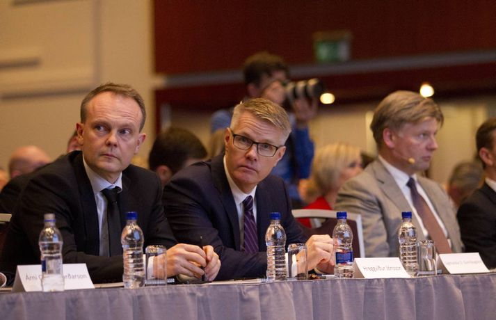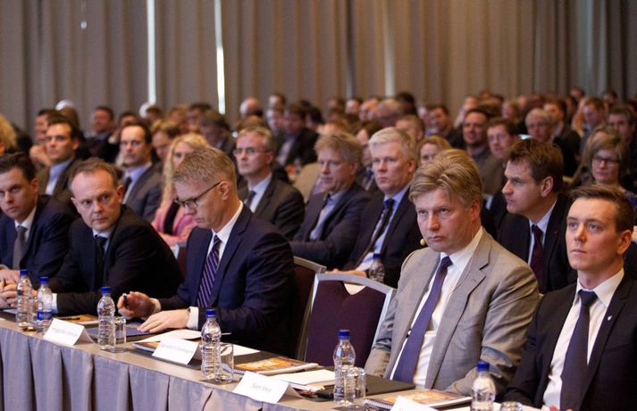 Það var margt um manninn á hinu árlega Viðskiptaþingi Viðskiptaráðs Íslands sem haldið var á Hilton í dag. Allir helstu forkólfar íslensk atvinnulífs og stjórnmála sátu þingið. Yfiorskrift þingsins að þessu sinni var: Open for business? - Uppbygging alþjóðageirans á Íslandi. Fundarstjóri þingsins var Edda Hermannsdóttir. Hreggviður Jónsson, formaður Viðskiptaráðs í ræðu sinni að Íslendingar þyrftu nú sem aldrei fyrr að taka breytingum fagnandi og standa ekki í vegi fyrir þeim.Sigmundur Davíð Gunnlaugsson, forsætisráðherra tók einnig til máls en framsögurnar voru margar og áhugaverðar. Einnig voru pallborðsumræður um það hvort menntakerfið styðji við eflingu alþjóðageirans. Meðfylgjandi myndir tók Pjetur Sigurðsson.