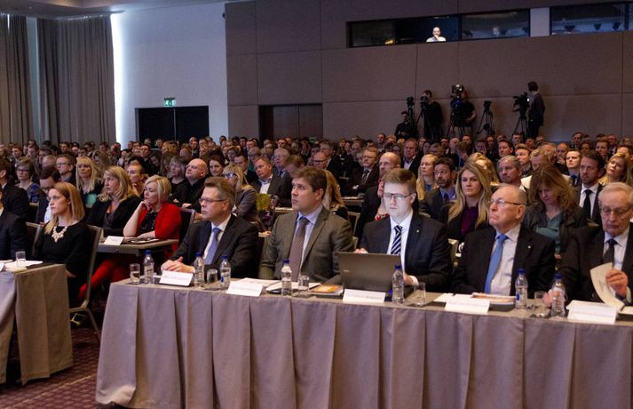 Framámenn íslensks viðskiptalífs á Viðskiptaþingi Samúel Karl Ólason skrifar 12. febrúar 2014 16:36 Hreggviður Jónsson, formaður Viðskiptaráðs. Vísir/Pjetur Það var margt um manninn á hinu árlega Viðskiptaþingi Viðskiptaráðs Íslands sem haldið var á Hilton í dag. Allir helstu forkólfar íslensk atvinnulífs og stjórnmála sátu þingið. Yfiorskrift þingsins að þessu sinni var: Open for business? - Uppbygging alþjóðageirans á Íslandi. Fundarstjóri þingsins var Edda Hermannsdóttir. Hreggviður Jónsson, formaður Viðskiptaráðs í ræðu sinni að Íslendingar þyrftu nú sem aldrei fyrr að taka breytingum fagnandi og standa ekki í vegi fyrir þeim.Sigmundur Davíð Gunnlaugsson, forsætisráðherra tók einnig til máls en framsögurnar voru margar og áhugaverðar. Einnig voru pallborðsumræður um það hvort menntakerfið styðji við eflingu alþjóðageirans. Meðfylgjandi myndir tók Pjetur Sigurðsson. Mest lesið Finna meira gull á Grænlandi Viðskipti innlent Sér ljós við enda ganganna: „Kannski þurfti svona stóra truflun til“ Viðskipti innlent Jónas Már til Réttar Viðskipti innlent Umfangsmiklar uppsagnir hjá Amazon Viðskipti erlent „Ekki bara smá eyða, þetta er risastórt gat“ Viðskipti innlent „Það verða fjöldagjaldþrot“ Viðskipti innlent Hætt við að vextir hækki Viðskipti innlent Mun leiða svið markaðsmála og þjónustuupplifunar hjá Advania Viðskipti innlent „Niðursveifla í byggingariðnaði er hafin“ Viðskipti innlent Hafi áhrif á innan við tíu prósent fyrstu kaupenda Viðskipti innlent Fleiri fréttir Segir mikla vinnu í gangi vegna lánamála Sér ljós við enda ganganna: „Kannski þurfti svona stóra truflun til“ Mun leiða svið markaðsmála og þjónustuupplifunar hjá Advania Finna meira gull á Grænlandi Jónas Már til Réttar „Ekki bara smá eyða, þetta er risastórt gat“ Hætt við að vextir hækki „Niðursveifla í byggingariðnaði er hafin“ Niðurstaða í máli Arion banka um miðjan desember Hafi áhrif á innan við tíu prósent fyrstu kaupenda Ráðin framkvæmdastjóri Sólar ehf. Tilkynntu Terra og Kubb eftir fundi með sveitarfélögum Línur gætu skýrst hjá Norðuráli í næstu viku Síldarvinnslan birtir jákvæða afkomuviðvörun „Það verða fjöldagjaldþrot“ Veitingamenn uggandi yfir erfiðum rekstrarskilyrðum Meirihluti vill afnema áminningarskyldu Byrjaði 18 ára í þjónustuverinu og hættir nú sem framkvæmdastjóri Öll lónin full og vatnsbúskapur tók stökkbreytingum Tekjur Isavia jukust um tæpa 1,2 milljarða króna milli ára Þrjú kvár stýra fyrirtækjum Hyggjast opna lágvöruverslun og Orkustöð á Blönduósi Landsbankinn breytir framboði á lánum eftir vaxtadóminn Ljóst að kaupverð á íbúðum í Vesturbugt verði í hærri kantinum „Atvinnulífið er sannarlega að kólna“ Landsbankinn hagnast um tæpa 30 milljarða á níu mánuðum Síminn kaupir Motus og Pei Sjóvá hagnast um 666 milljónir það sem af er ári Húsleit hjá Terra Kampavínsklúbbar, innherjasvik og nú meint skattsvik Sjá meira