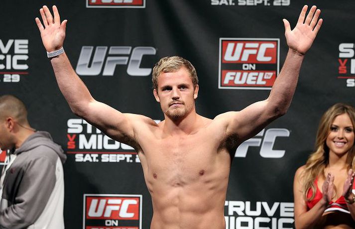 Gunnar Nelson æfir af kappi á Írlandi fyrir risabardaga Gunnar Leó Pálsson skrifar 23. janúar 2014 11:30 Mynd frá bardaga Gunnars gegn Jorge Santiago á síðasta ári. nordicphotos/getty „Hann fór út til Írlands í byrjun janúar og var þá aðallega að fara þangað til að skipta um umhverfi og til að æfa með John Kavanagh,“ segir Haraldur Dean Nelson, faðir og umboðsmaður Gunnars Nelsons. Gunnar er nú í æfingaferð á Írlandi og æfir þar hjá þjálfaranum sínum, John Kavanagh. „John var að opna nýtt gym í Dublin og því kærkomið fyrir Gunna og breyta til og fara út,“ bætir Haraldur við. Gunnar æfir að minnsta kosti tvisvar sinnum á dag, þá yfirleitt í hádeginu og svo aftur seinni partinn. Þar æfir hann undir leiðsögn þjálfara síns, en einnig er Conor McGregor, sem er einnig keppandi í UFC, að æfa með Gunnari. „John er líka aðalþjálfari McGregors. Mér skilst að þeir félagar hafi verið á sex tíma æfingu fyrir nokkrum dögum, þeir eru miklir pælarar báðir.“Gunnar Nelson og Conor McGregor.mynd/einkasafnHaraldur hittir son sinn í München á mánudag, þar sem Gunnar kemur fram á íþróttavörusýningu. Þeir koma svo báðir til Íslands á fimmtudaginn og þá halda æfingar áfram hér á landi. „Hingað til lands koma Írar sem æfa með Gunna og svo kemur John Kavanagh hingað um miðjan febrúar og tekur lokasprettinn með Gunnari,“ útskýrir Haraldur. Bardagi Gunnars fer fram í London þann 8. mars næstkomandi þar sem hann keppir á móti rússneska Sambó-meistaranum Omari Akhmedov.Nordic Photos / Getty Images Mest lesið Ísland lenti í algjörum martraðarriðli Fótbolti Þjálfari sem mætti Víkingi í fyrra lést í miðjum leik Fótbolti Lýsir eftir leiðtoga íslenska landsliðsins Handbolti Þjálfaragoðsögn látin taka pokann sinn: „Ég er undrandi“ Fótbolti Falla fleiri gleðitár hjá fjölskyldu Viktors í kvöld? Fótbolti Björgvin Páll hafi þaggað niður í efasemdaröddum Handbolti „Í ástarsorg er gott að finna sér nýja ást sem fyrst“ Íslenski boltinn Of kalt til að Ísland geti mætt Noregi og Svíþjóð Fótbolti David Beckham aðlaður: „Ég gæti ekki verið stoltari“ Enski boltinn Veggmynd af Alexander-Arnold skemmd: „Bless, rotta“ Fótbolti Fleiri fréttir Njarðvík - Hamar/Þór | Taka þær toppsætið? Cunha eða Mbeumo? Slavia Prag - Arsenal | Geta tékkað sig inn á toppinn Ráku lærlinga sem fögnuðu marki í beinni Falla fleiri gleðitár hjá fjölskyldu Viktors í kvöld? Mickelson blandast aftur inn í innherjasvikamál David Beckham aðlaður: „Ég gæti ekki verið stoltari“ Fram líka fljótt að finna nýja ást Viðtal Kjartans við Carrick: „Þolinmæðin minni og dómharkan meiri í hverri viku“ Steini um martraðarriðilinn: „Ekki draumaandstæðingar“ Veggmynd af Alexander-Arnold skemmd: „Bless, rotta“ Bikarmeistararnir fara norður Ísland lenti í algjörum martraðarriðli Gyökeres ekki með Arsenal í Prag Þjálfaragoðsögn látin taka pokann sinn: „Ég er undrandi“ Þjálfari Alberts rekinn Of kalt til að Ísland geti mætt Noregi og Svíþjóð Björgvin Páll hafi þaggað niður í efasemdaröddum Sjáðu glæsilegan einleik Ndiayes og jöfnunarmarkið frá Xhaka „Í ástarsorg er gott að finna sér nýja ást sem fyrst“ Ronaldo kveðst vera betri en Messi: „Vil ekki vera hógvær“ Fannst Tottenham spila eins og fjórðu deildarlið gegn Chelsea Þjálfari sem mætti Víkingi í fyrra lést í miðjum leik Lýsir eftir leiðtoga íslenska landsliðsins Hverjir eru bestu ungu strákarnir í Bónus-deildinni? Dagskráin í dag: Stórleikir í Meistaradeildinni Umboðsmaður hótaði leikmanni með byssu Söguleg byrjun OKC á tímabilinu O'Neil tekur ekki við Úlfunum á ný Emilía opnaði markareikninginn gegn Ingibjörgu Sjá meira