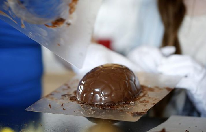Súkkulaðieggjagerð fyrir fjölskylduna 12. apríl 2014 12:00 Eva Rún fékk aðstoð frá frænkum sínum, Áróru Ísabellu og Emilíu Myrru. Í stærri eggin þarf um það bil 300 g af súkkulaði en 150 g í minni eggin. Þægilegast og fljótlegast er að nota súkkulaðihjúp en hjúpinn þarf bara að hita og hella svo í mótin. Ég notaði hjúp frá Nóa Síríusi. Ef notað er venjulegt súkkulaði þarf að tempra það og nota hitamæli til að fylgjast með. Þá skal bræða ¾ af súkkulaðinu yfir vatnsbaði upp í 42 gráður. Taka súkkulaðið þá af vatnsbaðinu og bæta þeim ¼ sem eftir er út í. Þá lækkar hitastigið niður í 32 gráður. Með þessari aðferð á eggið að verða gljáandi og fallegt. Stóru mótin skal fylla að 1/3 . Velta mótinu svo til og frá en gott er að standa úti ef það er hægt, þá gengur það hraðar. Þegar súkkulaðið hættir að renna til er gott að setja það í frysti í 15 til 20 mínútur. Litlu mótin má fylla alveg. Sniðugt er að blanda lakkrískurli í súkkulaðið en þá er gott að setja minna en í mótið. Velta því svo til og kæla og setja svo aðra umferð af súkkulaði, blönduðu lakkrískurlinu. Til að festa skeljarnar saman er bráðnu súkkulaði smurt á jaðrana og skeljarnar svo lagðar saman meðan þær eru enn í mótinu. Áður er sniðugt að setja nammi og málshátt í aðra skelina. Sett inn í frysti í 15 mínútur. Eggið losað úr mótinu og kantarnir snyrtir með hníf. Gott er að vera í bómullarhönskum við að handleika eggið svo að ekki komi fingraför. Fóturinn er steyptur á sama hátt og eggið og eggið svo að lokum fest á fótinn með bráðnu súkkulaði. Við skreyttum eggin með toppum úr blöndu úr 1 msk. af „marengs powder“, 2 msk. af volgu vatn og 1¼ bolla af flórsykri sem hrært er saman, skipt í skálar og litað með matarlit. Sprautað á plötu og þarf að harðna í tvo tíma. Mótin og fleira skraut fékk ég í Allt í köku. Páskaungana fékk ég í Blómavali. Mest lesið Ásgeir Kolbeins furðu lostinn yfir steini í jólapakkanum Lífið Gítarleikari The Cure er látinn Lífið Skilaði týndum heyrnartólum alla leið til Hamborgar Lífið „Fyrri kona mannsins míns er með Parkinson, ekki ég“ Áskorun Sjáðu nýja stiklu úr stjörnuprýddri hasarmynd Balta Lífið Allt í einu orðin mamman sem missti barnið sitt Lífið Jólagjafir íslenskra vinnustaða Lífið Þessi smurðu mest á reikning Jommunnar Lífið Sat uppi með sex kíló af kæstri skötu Lífið Óléttan uppgötvaðist þremur dögum fyrir byrjun skólans Menning Fleiri fréttir Gítarleikari The Cure er látinn Skilaði týndum heyrnartólum alla leið til Hamborgar Sjáðu nýja stiklu úr stjörnuprýddri hasarmynd Balta Ásgeir Kolbeins furðu lostinn yfir steini í jólapakkanum Viðtöl ársins 2025: Missir, afsögn ráðherra, umsáturseinelti og læknir sem þóttist vera með krabbamein Sat uppi með sex kíló af kæstri skötu Kristmundur Axel tók við af Bubba Seinfeld og Friends-leikari látinn Jólagjafir íslenskra vinnustaða Deildar meiningar um lyktina: „Þetta er byrjendaskata“ Fréttamenn gæða sér á skötu í gegnum árin Laufey á landinu Þar sem vinsælustu lög landsins verða til Þessi smurðu mest á reikning Jommunnar Einhverfir kaþólikkar um allan heim heita Þorlákur Cooper bað móðurina um hönd Hadid „Mér finnst gaman að láta sjokkera mig“ Brúðkaup ársins 2025 Heitt í hamsi hjá gestum á „helvíti á jörðu“ í Breiðholti Chris Rea hefur ekið heim um jólin í síðasta skipti Saga jarðaði alla við borðið Vísa ásökunum Skinner um kosningasvindl á bug Kimmel ávarpar bresku þjóðina: Frábært ár fyrir fasisma „Ég hugsa til þín á hverjum einasta degi“ Stjörnulífið: Óskar tíkunum gleðilegra jóla Veikindi eyðilögðu líka stóru stund Manúelu Hefur misst vini og kunningja vegna skoðana sinna Leitin á Svínafellsjökli sem hefur enn ekki skilað árangri Krakkatía vikunnar: Ísskápastríð, Eivör og Grafarvogur „Við byrjuðum að hlusta á jólalög í júlí“ Sjá meira