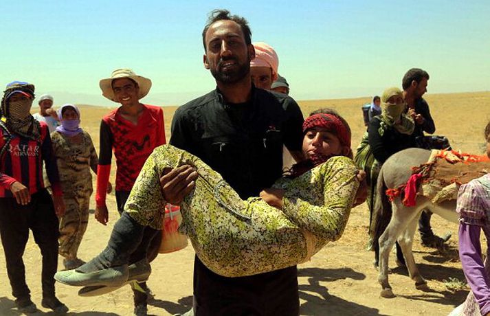 Um tuttugu þúsund komust af Sinjar-fjalli Nanna Elísa Jakobsdóttir skrifar 11. ágúst 2014 07:00 Þessir Jasídar komust úr herkvínni eftir undankomuleið Kúrda og fengu að fara til Sýrlands. NordicPhotos/Getty Talið er að um tuttugu þúsund manns af ættbálki Jasída hafi komist niður af Sinjar-fjalli í gærdag en Sameinuðu þjóðirnar áætluðu í síðustu viku að um fimmtíu þúsund manns sætu þar föst í herkví öfgamanna í samtökunum Íslamskt ríki. (ÍS) ÍS-liðar réðust inn á landsvæði hinna kristnu Jasída í fjöllunum í síðustu viku og ættbálkurinn flúði af ótta við að verða drepinn en ekki komust allir undan. Talið er að hundruð manna hafi verið drepin nú þegar, konur hafi verið hnepptar í þrældóm og tugir barna látist úr þorsta. „Við heyrðum í sprengjuvörpum morguninn sem þeir [herskáu íslamistarnir] komu á Sinjar-fjall,“ segir Zahra Jardo, Jasídakona, í samtali við Reuters. „Þannig að við flúðum til fjalla og þeir sem þar eru þjást af miklum þorsta. Það er ekkert vatn. Þeir tóku líka stúlkur og nauðguðu þeim. Þeir segja að Jasídar verði að snúast til íslamstrúar.“ Þeir sem ekki komast af fjallinu hafa úr tveimur jafn slæmum kostum að velja: Annars vegar deyja úr þorsta eða hungri á fjallinum þar sem ÍS leyfir ekki að þangað séu fluttar nauðþurftir eða koma niður af fjallinu og verða slátrað af herflokknum sem ferðast um landið allt og þvingar kristin samfélög til þess að taka upp íslamstrú eða láta lífið ella. Bandaríkjamönnum hefur fimm sinnum tekist að sleppa matarpökkum til ættbálksins síðan á fimmtudag en talið er að tuttugu slíkar ferðir þyrfti til þess að halda þeim þúsundum einstaklinga, sem fastir eru á fjallinu, á lífi í viku. Barack Obama, forseti Bandaríkjanna, hefur lofað að koma fólkinu til aðstoðar með einhverjum hætti en viðurkennir að erfitt sé að koma upp öruggum undankomuleiðum af fjallinu. Bandarískar orrustuþotur hafa varpað sprengjum á meðlimi ÍS síðan á laugardag en landhernaður kemur þó ekki til greina að sögn forsetans. Mest lesið Kókaínkóngur handtekinn á Spáni Erlent „Þar erum við eftirbátar nágrannaþjóðanna“ Innlent Sonur Beckham sviptur ökuréttindum Erlent Loftslagskvíði geti ýtt undir fíkniefnaneyslu Erlent Hækka viðbúnaðarstigið í Bretlandi Erlent Minntust þeirra sem hafa látist í umferðinni Innlent Segir forsetann tala fyrir einangrun Innlent Lenti utan vegar vestan við Grundarfjörð Innlent Hvaða oddviti er duglegastur að mæta? Innlent 70 ára afmæli Tónlistarskóla Árnesinga fagnað Innlent Fleiri fréttir Loftslagskvíði geti ýtt undir fíkniefnaneyslu Kókaínkóngur handtekinn á Spáni Sonur Beckham sviptur ökuréttindum Kynna umfangsmiklar breytingar á stuðningi við hælisleitendur Bílstjóri strætisvagnsins laus úr haldi Um hundrað slösuðust og tuttugu voru handtekin á mótmælum í Mexíkó Segist hafa fengið fjölda hótana eftir að Trump hætti að styðja hana Ætlar að lögsækja BBC þrátt fyrir afsökunarbeiðni Árekstur rútu rannsakaður sem manndráp af gáleysi Árásir á lestarkerfi Úkraínu hafi þrefaldast Hætta notkun metanhemjandi íblöndunarefnis Rannsaka tengsl Epstein við Clinton Þrír látnir eftir að rútu var ekið á biðskýli Sprengdu næst stærstu olíudælustöð Rússlands Sautján ára og í leit að peningum fyrir spöngum „Þeir sem leika sér að eldinum munu brenna upp til agna“ Rufu einangrun jaðarhægrisins til að afnema umhverfisreglur Enginn ákærður eftir umdeilt þrjú hundruð manna áhlaup Átján ára látnir svara spurningalista um hæfni þeirra til herþjónustu Vilja ekki feita innflytjendur Embættismenn hafa áhyggjur af sölu F-35 herþota til Sádi Arabíu BBC biður Trump afsökunar en hafnar bótakröfu Eldar í nær öllum hverfum eftir árásir Rússa á Kænugarð Óttast að Úkraínumenn verji Pokrovsk of lengi „Áratugur er ekki langur tími fyrir þá sem lifðu af“ „Ég er sá sem getur fellt hann“ Leiðtogi AfD segir Rússa ekki ógna Þýskalandi en varar við Pólverjum Minnast þess að tíu ár eru frá hryllingnum í París Lætur ráðherra fjúka vegna umfangsmikils spillingarmáls Alríki fjármagnað út janúar 2026 Sjá meira