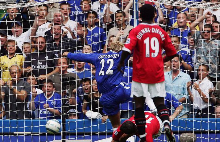 Gylfi snýr aftur með Swansea á stóra sviðinu Óskar Ófeigur Jónsson skrifar 16. ágúst 2014 08:30 Eiður Smári Guðjohnsen skorar markið gegn Manchester United. Vísir/Getty Enska úrvalsdeildin fer af stað í dag og augu knattspyrnuáhugamanna verða örugglega á leik Manchester United og Swansea á Old Trafford í hádeginu. Þetta verður fyrsti leikur úrvalsdeildarinnar á nýrri leiktíð og fyrsti deildarleikur Manchester United liðsins undir stjórn hollenska knattspyrnustjórans Louis van Gaal. Íslenskir knattspyrnuáhugamenn bíða líka spenntir eftir þessum leik af einni annarri ástæðu. Íslenski landsliðsmaðurinn Gylfi Þór Sigurðsson spilar þarna sinn fyrsta úrvalsdeildarleik með Swansea í 27 mánuði en velska félagið keypti hann frá Tottenham í sumar. Nú er liðinn áratugur síðan íslenskur knattspyrnumaður stal senunni í fyrstu umferð á móti Manchester United . 15. ágúst 2004 var mjög eftirminnilegur dagur fyrir Eið Smára Guðjohnsen sem var í byrjunarliði Chelsea í fyrsta deildarleik liðsins undir stjórn Portúgalans Jose Mourinho. Mourinho stillti Eiði Smára upp í framlínunni með Didier Drogba sem lék þarna sinn fyrsta deildarleik með Chelsea eftir að félagið keypti hann frá franska liðinu Marseille. Eiður Smári og Drogba unnu vel saman strax á 15. mínútu leiksins þegar Fílabeinsstrendingurinn skallaði boltann til Eiðs sem skoraði af harðfylgi af stuttu færi. Þetta mark reyndist vera eina mark leiksins og Chelsea fagnaði 1-0 sigri í fyrsta leik knattspyrnustjórans Jose Mourinho. Drogba og Jose Mourinho hafa báðir farið frá Chelsea og komið til baka síðan þá en Eiður Smári spilaði sinn síðasta leik í ensku úrvalsdeildinni í maí 2011. Drogba og Jose Mourinho verða með Chelsea í vetur og liðið er að margra mati talið vera það sigurstranglegasta á þessu tímabili. Þessi frábæra byrjun hjálpaði Eiði örugglega mjög mikið í harðri samkeppni hjá Chelsea og hann varð tvisvar sinnum enskur meistari með Chelsea undir stjórn Mourinho. Leikurinn í dag verður þriðji deildarleikur Gylfa á Old Trafford en hann lék allan leikinn með Swansea í 2-0 tapi fyrir United 6. maí 2012 og kom inn á sem varamaður þegar Tottenham vann 3-2 sigur á United á Old Trafford 29. september 2012. Gylfi var aftur á móti ekki í hópnum þegar Tottenham vann 2-1 sigur á Old Trafford á síðustu leiktíð. Gylfi er nú vonandi kominn með fast sæti í sínu liði ólíkt því sem var hjá Tottenham síðustu tímabil og staðráðinn að finna formið sitt frá seinni hluta tímabilsins 2011-2012 þegar hann var með 7 mörk og 5 stoðsendingar í 18 leikjum með Swansea. Gylfi fær kjörið tækifæri í dag til að minna Tottenham-menn á hvaða leikmann þeir voru að missa í sumar. Nú er hann kominn í sína bestu stöðu á miðjunni og hefur vissulega hæfileikana til að stríða lærisveinum Louis van Gaal í dag. Leikurinn hefst klukkan 11.45 og er í beinni útsendingu á Stöð 2 Sport 2. Enski boltinn Tengdar fréttir Lykilatriðið er að fá að spila Gylfi Þór Sigurðsson verður eini Íslendingurinn í ensku úrvalsdeildinni á næsta tímabili. Gylfi gekk til liðs við Swansea á ný í sumar eftir tvö ár hjá Tottenham en hann hafði fengið nóg af því að sitja á bekknum eða vera út á kanti. Gylfi verður í eldlínunni með Swansea í hádegisleiknum gegn Manchester United. 16. ágúst 2014 08:00 Costa verður að haldast heill í vetur Guðmundur Benediktsson hefur trú á því að lærisveinar Mourinho standi uppi sem sigurvegarar í vor þegar ensku úrvalsdeildinni lýkur. 15. ágúst 2014 22:15 Gylfi hetja Swansea á Old Trafford | Myndband Gylfi Þór Sigurðsson var hetja Swansea gegn Manchester United á Old Trafford í fyrsta leik ensku úrvalsdeildarinnar í ár. 16. ágúst 2014 11:15 Komið að því að Arsenal taki titilinn Stuðningsmenn Arsenal krefjast þess að Arsenal berjist um titilinn í ár og telur Hjörvar Hafliðason að loksins takist liðinu að landa Englandsmeistaratitlinum. 15. ágúst 2014 18:30 Mest lesið Fyrrverandi kærasta Sturlu tjáir sig: „Sárt að þurfa að standa í þessu“ Sport Goðsögnin les Sturlu pistilinn eftir opinberun um framhjáhald Sport Sturla biðst afsökunar: „Ekki alveg ég sjálfur þessa dagana og hugsa ekki skýrt“ Sport Samningar sem tryggja 1,8 milljarð króna í íþróttastarf Sport Sturla sturlaður af sorg og viðurkenndi framhjáhald í beinni Sport Faðir Vonn tjáir sig og vill ekki sjá dóttur sína keppa aftur Sport Silfurhafi um viðbrögð Trumps: „Ekki gaman að vera hluti af þessu“ Sport Snoop Dogg sagður fá 61 milljón króna í laun á dag Sport „Ég skil ekki hvernig fólk getur skrifað svona“ Sport Atvinnulaus Jóhann kallaður í landsliðið Fótbolti Fleiri fréttir Frank rekinn frá Tottenham Sjáðu ótrúlega dauðafærið sem Palmer klúðraði og öll mörkin úr enska Finnst ólukkan elta Liverpool Engin klipping því Manchester United gerði jafntefli Tottenham í tómu tjóni Chelsea glutraði niður góðri forystu gegn Leeds United Ræddu mögulegan arftaka Pep Langerfiðasta leiktíð Slot: „Leikmennirnir finna vonbrigðin“ „Hann er kominn í rétta stöðu“ „Vildi ekki ljúka tímabilinu svona“ Hárið ekki notað í neina ræðu Getur þjálfað Hollywood-liðið ævilangt „Tottenham er í fallbaráttu“ „Eins og hann sé að grátbiðja um að verða seldur“ Arnar með „óbragð í munni“ eftir skort á heilbrigðri skynsemi Sjáðu bombu Szoboszlai og allt dramað í lokin „Ég vissi að Carrick gæti orðið frábær stjóri“ Nýi leikmaður Liverpool meiddist alvarlega „Enn og aftur dæmir dómarinn ekki okkur í vil“ „Við urðum að vinna, annars væri titilbaráttan búin“ Manchester City kom til baka eftir stórskostlegt mark Szoboszlai Sarr tryggði sigur gegn Mávunum Sj