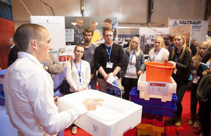 „Hérna eru allir enda er þetta hátíð fyrir okkur og mikið partí,“ segir Victor Strange, eigandi Tor-Net, þegar blaðamaður gengur inn í sýningarbás fyrirtækisins á Íslensku sjávarútvegssýningunni sem hófst í Smáranum í Kópavogi í gær. Sýningin fagnar nú 30 ára afmæli en hún hefur verið haldin á þriggja ára fresti. Hún hefur að sögn skipuleggjenda aldrei verið stærri en nokkuð er síðan öll sýningarrýmin seldust upp. Um 500 þátttakendur, frá fimm heimsálfum, fylla nú 250 bása í íþróttahúsi Breiðabliks.Victor Strange og aðrir starfsmenn Tor-Net kynntu flottroll fyrirtækisins fyrir gestum og gangandi.„Hingað koma menn til að kynna sér það sem er í boði en voðalega margir í þessum bransa koma til að hitta félagana og skipstjórana og aðra,“ segir Victor. „Svo fyrir okkur sýnendur er auðvitað mikilvægt að geta kynnt okkar vörur en í sjálfu sér fer mjög lítil sala fram á sýningunni sjálfri. En þetta situr eftir hjá mönnum og því er sýningin gríðarlega mikilvæg.“