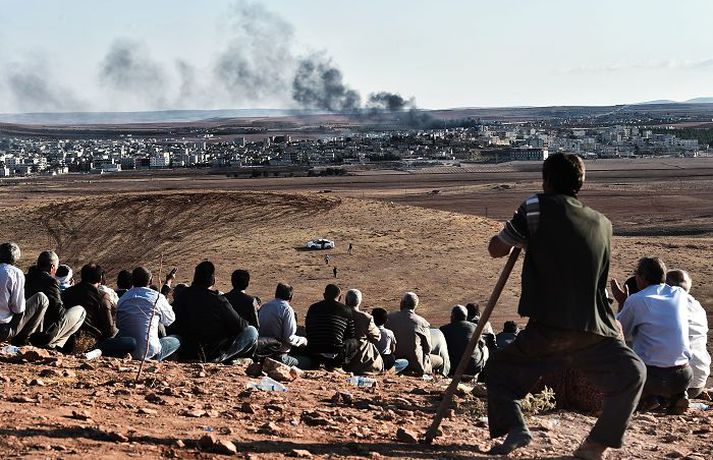 Frá því vígasveitir íslamska ríkisins hófu innrás sína inn á Kúrdasvæðin í norðanverðu Írak og norðanverðu Sýrlandi hafa þeir flúið tugum þúsunda saman yfir landamærin til Tyrklands. Margir þeirra hafa síðan viljað snúa aftur yfir landamærin til Sýrlands að berjast við vígasveitirnar. Tyrkneski herinn hefur hins vegar ekki viljað taka það í mál, og mótmælti harðlega þegar ríkisstjórn Tyrklands leyfði herliði íraskra Kúrda að koma til Tyrklands og fara þaðan yfir landamærin til Sýrlands til átaka við Íslamska ríkið. Skýringanna er að leita í áratuga langri baráttu tyrkneska hersins og tyrkneska ríkisins gegn Kúrdum, sem krafist hafa aukinna réttinda og sjálfstjórnar í suðausturhluta landsins. Lengi vel litu tyrknesk stjórnvöld almennt á Kúrda sem hryðjuverkamenn, og þótt það hafi eitthvað verið að breytast á síðustu árum lifir tortryggnin enn góðu lífi. Ekki síst meðal yfirmanna tyrkneska hersins. Tyrkneska stjórnin hefur jafnvel verið sökuð um að vilja frekar styðja vígasveitir Íslamska ríkisins en Kúrda.Kúrdabyggðunum skipt upp Kúrdar hafa frá fornu fari flestir búið á slóðum sem landamæri nútímans kljúfa niður í fjögur lönd: Tyrkland, Sýrland, Írak og Íran. Upphaflega tilheyrði þetta landsvæði norðvestanverðri Persíu, sem nú heitir Íran. Í nokkrar aldir var þetta svæði undir yfirráðum Tyrkjaveldis, allt þangað til það veldi hrundi í lok seinni heimsstyrjaldarinnar. Það er því ekki nema tæp öld frá því Vesturlönd skiptu niður Kúrdabyggðunum með því að draga landamæri þvers og kruss í gegnum þær. Kúrdarnir sjálfir hafa helst ekki viljað taka mark á þessum handahófskenndu landamærum og líta enn á sig sem eina þjóð. Og dreymir um að sameinast í sjálfstæðu ríki.Fótum troðin réttindi Stjórnvöld ríkjanna fjögurra hafa, eins og kannski gefur að skilja, ekki verið jafn áhugasöm um að missa frá sér landsvæði Kúrdabyggðanna og þær auðlindir sem þeim fylgja. Réttindi Kúrda til þess að rækta menningu sína og nota sitt eigið tungumál hafa verið fótum troðin, í mismiklum mæli þó eftir löndum og stjórnmálaástandinu hverju sinni. Í Tyrklandi var því einna harðast fylgt eftir að tungumál Kúrda mætti hvergi heyrast. Það mátti ekki nota það í skólum og það mátti ekki gefa út bækur á kúrdísku. Tyrkjastjórn vildi ekki til þess hugsa að í landinu byggi önnur þjóð en Tyrkir, og Kúrdar áttu bara að sætta sig við það að vera Tyrkir úr því þeir bjuggu í Tyrklandi. Strax upp úr fyrri heimsstyrjöldinni tóku þeir samt að gera uppreisnir, sem jafnharðan voru barðar niður. Og stuttu fyrir seinna stríð sömdu Tyrkir við nágrannalönd sín um samhæfðar aðgerðir gegn Kúrdum. Eftir það máttu þeir sín lítils.Erdogan veitti heimild Recep Tayyip Erdogan, sem nú er orðinn forseti Tyrklands eftir meira en áratug í embætti forsætisráðherra, hefur nú heimilað hersveitum Kúrda frá Írak að fara yfir tyrkneskt land og áfram inn í Sýrland. Tyrkneski herinn hefur hins vegar ekki verið alls kostar sáttur við það fyrirkomulag. Erdogan hefur, ekki síður en herinn, verið tregur til að veita Kúrdum aðstoð, og spurði nýverið hvers vegna öll þessi áhersla beindist að landamæraþorpinu Kobane í Sýrlandi, þaðan sem flestir íbúarnir voru hvort eð er flúnir. „Hvers vegna Kobane? Og hvers vegna ekki aðrar borgir eins og Idlib, Hama eða Homs?“ spurði hann. „Og hvers vegna ekki í Írak, þar sem fjörutíu prósent landsins hafa verið hertekin?“ Engu að síður lét hann á endanum undan þrýstingi, ekki síst frá Vesturlöndum.Taflið að snúast við? Sigurganga Íslamska ríkisins virðist reyndar komin á einhverja endastöð, í bili að minnsta kosti. Loftárásir Bandaríkjanna hafa haft sitt að segja, þótt ekki dugi þær til að vinna bug á vígasveitunum. Í vikunni hétu tyrknesk og írösk stjórnvöld því að vinna saman gegn Íslamska ríkinu, og nú hafa Kúrdar náð aftur á sitt vald hluta bæjarins Kobane. Átökin um þetta litla þorp hafa orðið að lykilatriði í huga Kúrda, sem leggja allt kapp á að ná bænum aftur úr höndum Íslamska ríkisins. „Kobane hefur orðið að sameiningartákni fyrir Kúrda í Mið-Austurlöndum,“ hefur bandaríska dagblaðið New York Times eftir Barham Salih, fyrrverandi forsætisráðherra Kúrdahéraðanna í Írak. „Að sumu leyti hefur Kobane einnig breytt sögu Kúrdaþjóðarinnar úr því að vera harmleikur yfir í sögu andspyrnu.“