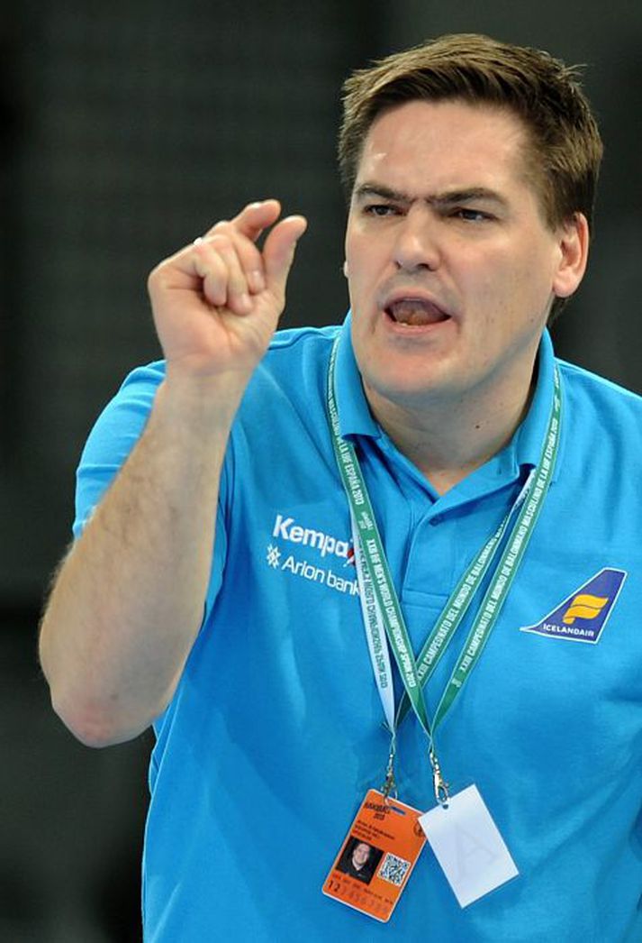 Kapphlaup um Katarmiðana Henry Birgir Gunnarsson skrifar 19. desember 2014 07:00 Aron Kristjánsson að stýra íslenska landsliðinu. Vísir/AFP „Þetta var mjög erfitt val. Ég var að kljást við síðustu tvær stöðurnar í svolítinn tíma. Þá þarf maður að skoða heildarpakkann út frá taktísku sjónarmiði,“ segir Aron Kristjánsson landsliðsþjálfari en hann tilkynnti í gær hvaða 20 leikmenn muni keppa um farseðlana á HM í Katar sem fram fer í næsta mánuði. Aron má vera með sextán menn í hópnum hjá sér en má gera tvær breytingar meðan á mótinu stendur. Hann segist vera að skoða þann möguleika að taka sautján leikmenn með út enda um langan veg að fara ef það þarf að kalla inn leikmann.Þórir skilur mína stöðu Mesta athygli vakti í valinu að hann skyldi skilja hornamanninn Þóri Ólafsson eftir heima en Þórir hefur átt mjög farsælan landsliðsferil. „Þetta er vísir að ákveðnum kynslóðaskiptum hjá okkur en Þórir er til í að hjálpa okkur áfram og vera til taks ef á þarf að halda. Auðvitað var samt mjög erfitt að tjá honum tíðindin. Hann er keppnismaður en skilur samt mína stöðu og veit um hvað málið snýst. Við ræddum þetta fyrst síðasta sumar. Það er þessi fína lína, hvar og hvenær á að skipta út. Bæði Arnór Þór og Guðmundur Árni hafa spilað vel og svo eigum við Ásgeir Örn og Alex sem geta líka leyst hornið,“ segir Aron.Leitað að arftaka Sverres Ólafur Gústafsson gefur ekki kost á sér í hópinn vegna meiðsla og svo er enn óvissa með þátttöku Sverres Jakobssonar. Þar af leiðandi fær Tandri Már Konráðsson tækifæri í hópnum að þessu sinni. „Ólafur átti að fá aukið vægi í vörninni hjá mér enda verið að spila vel í vörninni í Danmörku. Við vitum að það styttist í að það þurfi að finna mann fyrir Sverre. Valið á Tandra er í ljósi þess að við erum að reyna að finna mann sem getur staðið í miðju varnar og líka borið upp boltann. Tandri er sterkur í því. Hugmyndin með 20 manna hópinn er líka að koma mönnum eins og Tandra nær landsliðinu og kynnast því sem við erum að gera. Við erum líka með fimm æfingaleiki þannig að okkur vantar mannskap og við verðum að passa upp á álagið. Það verður gaman að sjá hvernig Tandri kemur út úr þessu.“xxÓlafur þarf að taka næsta skref Ólafur Andrés Guðmundsson kemst ekki í hópinn að þessu sinni en hann hefur tekið þátt á stórmótum áður. Nú síðast á EM í Danmörku fyrir tæpu ári. „Hann hefur verið meiddur undanfarið. Ólafur hefur verið svolítið óstöðugur með landsliðinu. Hann hefur átt ágætis innkomur og í öðrum leikjum hefur vantað upp á. Hann þarf kannski að fá tíma til þess að taka næsta skref á sínum ferli í þýsku úrvalsdeildinni. Þá gæti hann komið sterkur aftur inn í landsliðið. Ég er alls ekki búinn að afskrifa hann.“ Það verður engin barátta um markvarðastöðurnar fyrir HM. Aron velur aðeins þá Björgvin Pál og Aron Rafn og þeir fara því til Katar nema þeir meiðist. „Ég tel að þetta séu þeir markmenn sem eru að standa sig best núna. Þeir hafa unnið vel saman og markvarslan á síðustu tveimur mótum með þá tvo hefur gefið góða raun. Þeir hafa náð að vega hvor annan ágætlega upp,“ segir landsliðsþjálfarinn.Unnið í varnarleiknum Liðið kemur saman til æfinga þann 30. desember og spilar svo tvo æfingaleiki við Þjóðverja þann 4. og 5. janúar. Liðið tekur svo þátt á æfingamóti í Danmörku frá 9. til 11. janúar. Lokahópurinn verður svo tilkynntur í kjölfarið. „Ég gæti verið búinn að skera aðeins niður hópinn fyrir þetta mót. Svo er spurning hvort ég taki sextán eða sautján með út. Það veltur líklega á ástandinu á liðinu. Undirbúningur verður annars með frekar hefðbundnu sniði en við munum leggja mikla áherslu á varnarleikinn. Við ætlum að koma með nýtt varnarafbrigði sem við gætum beitt að hluta til í leikjum,“ segir Aron Kristjánsson landsliðsþjálfari. Handbolti Mest lesið Hafnaði 34 milljónum: „Vil ekki styðja kerfi sem býr til fíkn og eyðileggur líf“ Sport Littler sjóðheitur en sá fjórði besti varð fyrir áfalli Sport Liverpool-skotmarkið ekki á förum í janúar Enski boltinn Syrgja átján ára fimleikakonu Sport Arnar Þór ráðinn til FIFA: „Himinlifandi að hafa fengið þetta starf“ Fótbolti Salah sakaður um dýfu: „Getum ekki keppt við Egypta og dómarana“ Fótbolti Haukur náði hundrað og hundrað fyrir EM Handbolti Írar ætli að fylgja eftir tillögu Heimis Fótbolti Skoraði og fékk gult fyrir að benda Fótbolti Watkins hélt ótrúlegri sigurgöngu Villa áfram Enski boltinn Fleiri fréttir Haukur náði hundrað og hundrað fyrir EM Íslendingarnir í miklum ham fyrir EM Handarbrotinn og missir af úrslitaleiknum Reynir farinn að láta til sín taka í þýsku deildinni Elín Klara atkvæðamikil og sigursæl í jólaleiknum Birgir byrjaði rólega eftir jólafrí en fagnaði sigri Stoltur af stráknum en ætlar ekki að kaupa hann aftur Ekkert spilað í vetur en gæti mætt Íslandi í fyrsta leik á EM Arnar Daði rekinn frá Stjörnunni en áfram þjálfari kvennaliðsins Öll höllin æpti nafn Gísla í spennutrylli Sakaður um niðurlægingu: „Við viljum ekki hafa hann sem þjálfara“ Haukur getur náð hundrað plús hundrað fyrir EM-fríið Rúnar sótti sinn fyrsta sigur sem þjálfari Wetzlar Haukur með sjö mörk og Magdeburg rétt marði botnliðið Rúmlega áttræður Moustafa endurkjörinn forseti IHF með yfirburðum Slæm fjárhagsstaða HSÍ kemur ekki niður á EM Donni fagnaði EM vali með skotsýningu Sigvaldi Björn fjarri góðu gamni í sjaldséðu tapi Kolstad Eva Björk með stórleik í fyrsta sigri Stjörnunnar „Hann er ein stærsta ástæðan fyrir þv