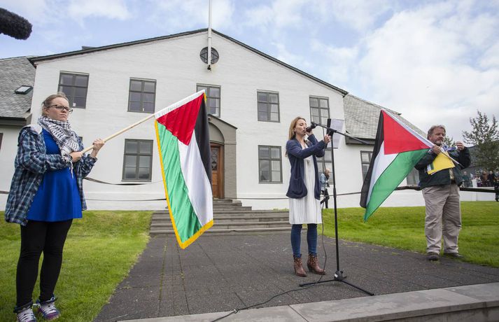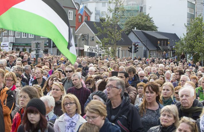 Fundur félagsins Ísland-Palestína hófst á Ingólfstorgi klukkan 17.Talið er að rúmlega þrjú þúsund manns hafi komið saman á torginu þar sem loftárásum Ísraelsmanna á óbreytta borgara var mótmælt. Kröfur fundarins voru að blóðbaðið á Gaza yrði stöðvað tafarlaust, Palestínumönnum verði veitt alþjóðleg vernd, að herkvíin um Gaza fari burt og hernámið stöðvað. Fundarstjóri var Sveinn Rúnar Hauksson og meðal ræðumanna var Dagur B. Eggertsson borgarstjóri. Að loknum fundi gekk hópurinn að Stjórnarráðinu með minningarkrans með borða sem á eru skráð nöfn meira en 600 palestínskra fórnarlamba hernaðarins. Þá var forsætisráðherra afhent ályktun fundarins. Sigmundur Davíð Gunnlaugsson sendi í dag forsætisráðherra Ísraels bréf þar sem komið er á framfæri alvarlegum áhyggjum af stöðu mála á Gaza þar sem mikill fjöldi óbreyttra borgara hefur látið lífið að undanförnu.Myndir af fundinum má sjá hér að neðan.Frá mótmælunum við StjórnarráðiðVísir/DaníelVísir/DANÍELVísir/DANÍELVísir/DANÍELFundargestir lögðust á Arnarhól til að tákna þá tæplega 700 sem fallið hafa í átökunum til þessa.VÍSIR/Sunna KarenSolidarity meeting for Palestine in Ingólfstorg, Reykjavík. #GazaUnderAttack pic.twitter.com/Y2h4ar9DlP— Kári Emil (@kariemil) July 23, 2014