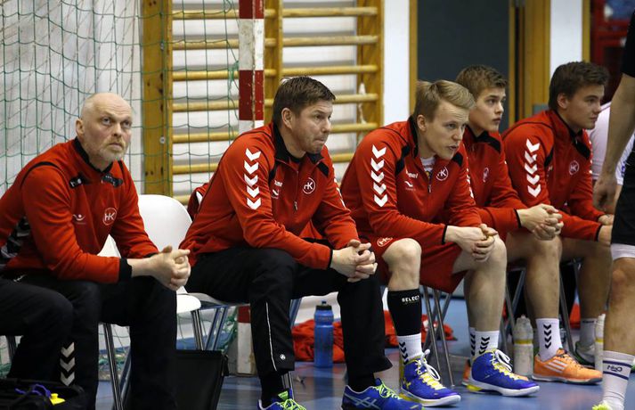 HK og Akureyri skildu jöfn í hörku spennandi leik í dag, 22-22. Leikurinn var ekki mikið fyrir augað en þó var gaman að sjá baráttuna í heimamönnum, sem náðu að knýja fram jafntefli á æsilegri lokamínútu. Lárus Helgi Ólafsson varði þá vítakast á sama tíma og lokaflautan gall. Byrjun leiksins fer seint í sögubækurnar fyrir góðan handbolta. Báðum liðum gekk ævintýralega illa að skora og gerðu sig sek um ótal mistök. Staðan eftir 10 mínútur var 2-1 fyrir Akureyri og mikil deyfð yfir leiknum. Það lifnaði þó yfir þessu og Akureyri virtist ætla að stinga af, náðu mest fimm marka forystu, 10-5, þegar sjö mínútur lifðu af fyrri hálfleik. HK var þó ekki af baki dottið og náði að minka muninn. Staðan í hálfleik var 12-10 fyrir Akureyri og enn gat allt gerst. Það var allt annað að sjá heimamenn í síðari hálfleik. Þeir byrjuðu af miklum krafti og náðu forystu í fyrsta sinn í leiknum eftir 10 mínútur í síðari hálfleik, 17-16. HK tók Sigþór Heimisson úr umferð og við það riðlaðist sóknarleikur Akureyrarliðsins og gestirnir gerðu sig seka um klaufaleg mistök trekk í trekk. Leikurinn var jafn og spennandi allt til enda. Akureyri fékk gullið tækifæri til að tryggja sér sigur þegar dæmt var vítakast á HK á sama tíma og leiktíminn rann út. Kristján Orri Jóhannsson tók vítakastið en Lárus Helgi Ólafsson, besti leikmaður HK, gerði sér lítið fyrir og varði vítakastið. Lokatölur urðu 22-22. Markverðir beggja liða áttu ágætisleik í dag. Tomas Olason er öflugur markvörður og nýtur góðs af því að hafa Sverre og Ingimund fyrir framan sig. Með þessa tvo turna í miðri vörn og Tomas í stuðu fyrir aftan þá, geta öll lið lent í erfiðleikum. Sóknarleikur Akureyrarliðsins er hins vegar vandamálið. Í þessum leik var það helst Sigþór Heimisson sem bar sóknarleik Akureyrar uppi. Hann er klókur leikmaður en Akureyri þarf fleiri vopn í sóknarleikinn til að taka næsta skref. HK á ennþá tölfræðilega möguleika á að halda sæti sínu í deildinni. Með fjóra leiki eftir er liðið 8 stigum á eftir Stjörnunni sem situr í 8. sæti. Sú von er hins vegar veik en á meðan enn sést í ljós við enda gangnanna hljóta HK-ingar að leggja allt í sölurnar. Ég tek hattinn ofan fyrir HK að hafa barist eins og ljón í þeirri stöðu sem liðið er í og var komið í í þessum leik. Næsti leikurinn liðsins er gegn Aftureldingu í Mosfellsbæ á fimmtudaginn, en þar vann HK þriggja marka sigur í október, 25-22.Lárus Helgi Ólafsson: Hefði viljað að þessi varsla hefði tryggt sigur Lárus Helgi Ólafsson markvörður var besti leikmaður HK í leiknum og var ánægður með að hafa tryggt sínu liði eitt stig í dag. Hann varði vítakast Akureyrar um leið og lokaflautan gall. "Mér leist nú ekkert á þetta þarna í lokinn en allt er gott sem endar vel. Ég hefði viljað að þessi varsla hefði tryggt sigur en ég er mjög ánægður að við náðum allavega einu stigi. Við byrjuðum hægt en um miðjan seinni hálfleik komumst við yfir. En okkur tekst eitthvað voðalega illa upp einum fleiri í leikjum. En við fengum séns á að komast aftur inní leikinn og gripum það tækifæri," sagði Lárus Helgi í samtali við Vísi. "Við erum voðalega lítið að líta á töfluna. Við einbeitum okkur bara að því að hafa gaman og spila handbolta. Næsti leikur er gegn Aftureldingu í Mosó. Við unnum þá í október og það er held ég einn skemmtilegasti leikur sem við allir höfum spilað. Við hlökkum bara til að mæta aftur þangað," sagði Lárus Helgi að lokum, aðspurður um möguleika liðsins um að halda sæti sínu í deildinni.Bjarki Sigurðsson: Byrjunin feldi okkur "Bæði lið gerðu mörg mistök og þetta var hægur handbolti. Jafntefli er niðurstaðan og við erum ágætlega sáttir við það. Byrjunin fellir okkur smávegis. Við skorum eitt mark á fyrstu 12 mínútunum eða svo. Það er ekki boðlegt. En varnarlega vorum við flottir og Lalli var flottur í markinu. Sóknarleikur gekk ágætlega þegar við létum boltann ganga og vorum hreifanlegir," sagði Bjarki Sigurðsson, þjálfari HK, að leik loknum. "Við erum bara að reyna að njóta þess að spila handbolta og sjá hvað það skilar okkur mörgum stigum. Við erum farnir að horfa fram á við, fram á næsta ár og hvað við getum gert. Hvernig við ætlum að halda í hópinn. Við erum búnir að vera óheppnir með meiðsli í vetur. Og svo þegar við fáum allan hópinn saman fyrir tveimur vikum, þá sér maður strax bætingu hjá liðinu. Ég hefði viljað hafa það svoleiðis frá upphafi. En það er ekkert hægt að segja við því núna. Við sjáum hver niðurstaðan verður," sagði Bjarki.Sverre Jakobsson: Við héldum að þetta myndi bara koma, næsti maður myndi redda þessu fyrir okkur Sverre Jakobsson, leikmaður Akureyrar, var fremur daufur eftir leikinn og alls ekki sáttur við spilamennsku sinna manna. "Mér fannst við byrja illa og það var erfitt að finna taktinn. Svo fórum við í gang en aftur fórum við af sporinu. Og þeir gengu á lagið. Eftir það vorum við að strögla, gerðum of mikið af tæknifeilum, vorum andlausir og hreinlega ekki tilbúnir. Ég vil alls ekki taka neitt af HK-ingum, þeir börðust allan tímann og voru til fyrirmyndar. En mér fannst við eiga að geta tekið bæði stigin hér í dag," sagði Sverre. "Ég er mest svekktur með að mér fannst toppstykkið ekki vera í lagi hjá okkur sem lið í dag. Bar keim að því að við héldum að þetta myndi bara koma, næsti maður myndi redda þessu fyrir okkur. Það er leiðinlegt," sagði svekktur Sverre. "Við erum ekkert farnir að spá í úrslitakeppni. Fyrsta markmið er að tryggja það sæti, við erum ekki öruggir. Við getum ekki beðið eftir því að önnur lið geri það fyrir okk