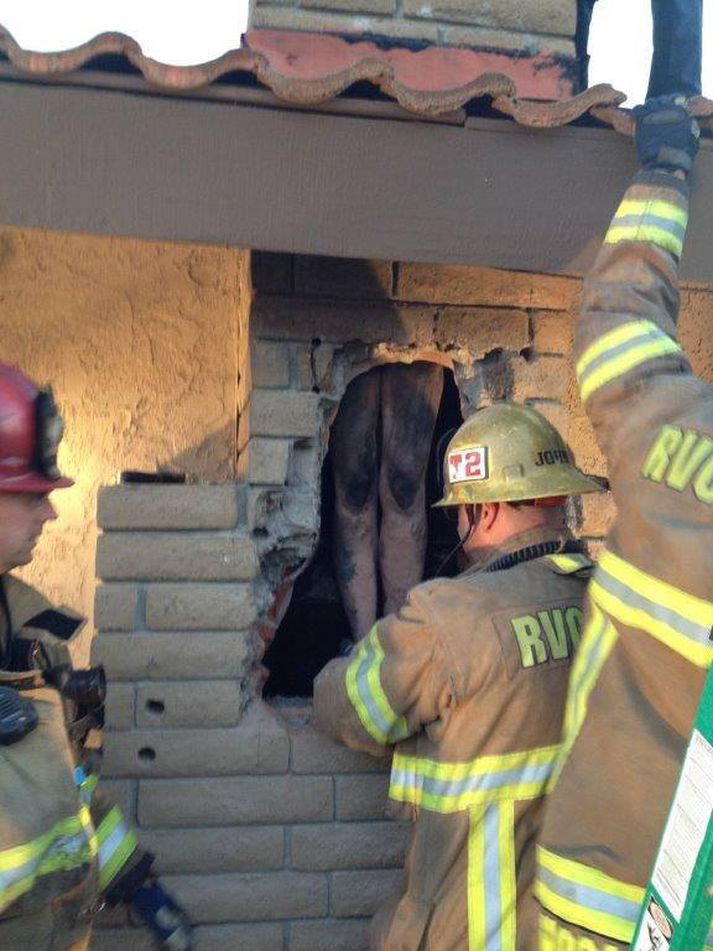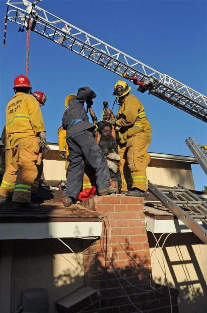 Björguðu konu úr skorsteini fyrrverandi kærastans Atli Ísleifsson skrifar 6. janúar 2015 10:32 Tvo tíma tók að bjarga konunni úr skorsteininum. Mynd/Slökkvilið í Riverside County Slökkviliðsmenn í Riverside-sýslu í Kaliforníu þurftu að bjarga konu sem hafði fests í skorsteini húss fyrrverandi kærasta síns um síðustu helgi. 23 slökkviliðsmenn unnu að því í tvo tíma að bjarga konunni sem hafði reynt að komast inn á heimili mannsins um skorsteininn með þeim afleiðingum að festast. Maðurinn og eigandi hússins segir í samtali við NBC4 að hin 35 ára kona sé fyrrverandi kærasta sín og að þau eigi saman barn. Þau hafi þó slitið samvistum og hún hafi aldrei búið í því húsi sem hún reyndi að komast inn í.Mynd/Slökkvilið í Riverside CountyMynd/Slökkvilið í Riverside CountyMynd/Slökkvilið í Riverside CountyMynd/Slökkvilið í Riverside County Mest lesið Sigríður Björk og Jón Karl til Bessastaða Innlent Spyr hvort skoða þurfi mögulega árekstra eiginmanns ráðherra og fráfarandi forstjóra Innlent Andrew handtekinn á heimili sínu Erlent Tvö innbrot á einni viku: Þýfi upp á aðra milljón Innlent „Mitt mat að þetta sé ekki peninganna virði“ Innlent „Hann reyndi að lokka þær inn í bílinn“ Innlent „Ekki af hinu góða og líklegra til að valda skaða“ Innlent „Svo fær maður svona helvíti á fyrsta opnunardegi“ Innlent Vísar gagnrýni á bug og gefur lítið fyrir rök lækna Innlent Svaraði tolladóminum með því að leggja toll Erlent Fleiri fréttir Til skoðunar að taka Andrew úr erfðaröðinni Svaraði tolladóminum með því að leggja toll Íranski byltingarvörðurinn kominn á hryðjuverkalista ESB og á Íslandi Toppurinn kominn á hæstu kirkju heims Huldumaður gaf gullstangir til að laga vatnslagnir borgarinnar Spenna eykst á einum helgasta stað gyðinga og múslima Áfram húsleit á fyrra heimili Andrews „Mjög, mjög sorglegt“ Bandaríkjastjórn opnar síðu þar sem Evrópubúar geta séð lokað efni Andrew látinn laus Norðmenn koma af fjöllum og taka fyrir ummæli Trump Nýjar forsetaflugvélar fá Trump-litina „Besti vinur“ Epsteins ætlaði að leysa frá skjóðunni 2016 Karl III: Réttlætið verður að hafa sinn gang Viðbúnaðurinn ekki verið eins mikill frá innrásinni í Írak Andrew handtekinn á heimili sínu Rétta yfir fjórtán ára gömlum leigumorðingja Tjáningarfrelsistal tæknirisa „hreinn þvættingur“ „Grunlaus“ Wexner segist hafa verið gabbaður af Epstein Skíðahópur fórst í snjóflóði í Kalíforníu Fyrrverandi forseti Suður-Kóreu í lífstíðarfangelsi Umdeilt Friðarráð fundar í Washington í dag Tengiltvinnbílar þrefalt eyðslufrekari en framleiðendur segja Verjast fregna af viðræðum dagsins „Stjórinn“ að fá nóg og líkur á árásum Kennir Selenskí um misheppnaða gagnsókn Þrýsta á Alþjóðaorkumálastofunina að hætta við orkuskipti Reyna aftur á morgun Ákærður fyrir að skilja kærustuna eftir á fjallinu Yfir þúsund grunaðir barnaníðingar handteknir í hverjum mánuði Sjá meira