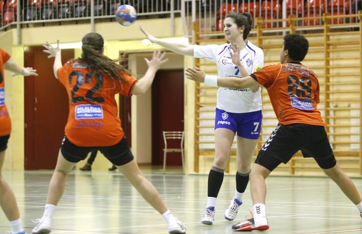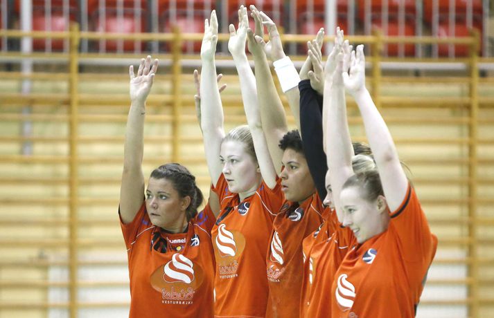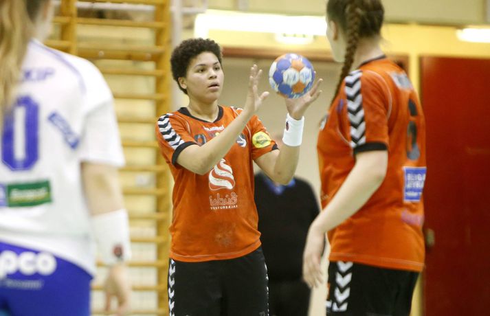 Fylkir vann í kvöld sannfærandi þrettán marka sigur á botnliði ÍR, 34-21, í Olísdeild kvenna í kvöld. Staðan í hálfleik var 17-8, Fylkiskonum í vil, og sigurinn því aldrei í hættu. Patricia Szölösi skoraði átta mörk fyrir Árbæinga í kvöld en Karen Tinna Demian var langmarkahæst ÍR-inga með tólf mörk. Fylkir komst upp í sjötta sæti deildarinnar með sigrinum í kvöld og upp fyrir Val. Fylkir er með sautján stig en ÍR á botninum með eitt.Fylkir - ÍR 34-21 (17-8)Mörk Fylkis: Patricia Szölösi 8, Thea Imani Sturludóttir 7, Kristjana Björk Steinarsdóttir 6, Ólöf Kristín Þorsteinsdóttir 3, Vera Pálsdóttir 3, Sigrún Birna Arnardóttir 3, Hildur Björnsdóttir 1, Hafdís Shizuka Iura 1, Diljá Mjöll Aronsdóttir 1, Rebekka Friðriksdóttir 1.Mörk ÍR: Karen Tinna Demian 12, Sif Maríudóttir 3, Auður Margrét Pálsdóttir 2, Sigrún Ása Ásgrímsdóttir 2, Þorbjörg Anna Steinarsdóttir 1, Jóhanna Björk Viktorsdóttir 1.Vísir/Andri Marinó