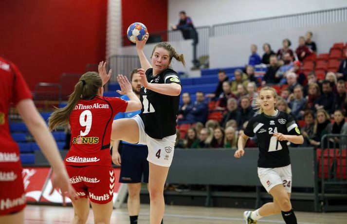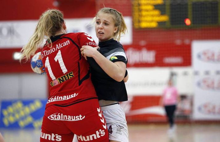 Kvennalið Haukar tyggði sér farseðilinn á bikarúrslitaleikjahelgina í handboltanum annað árið í röð eftir fjögurra marka sigur á Selfossi á Ásvöllum í kvöld, 26-22. Stefán Karlsson, ljósmyndari Vísis og Fréttablaðsins, var á leiknum og náði þessum myndum hér fyrir ofan. Grótta komst líka í Höllinni með öruggum 31-18 sigri á HK en Haukar, Grótta og ÍBV hafa því tryggt sér sæti í undanúrslitunum og Valur og Fylkir spila síðan um síðasta sætið á morgun. Þetta þýðir að Haukarnir verða með bæði liðin sín í Laugardalshöllinni því karlaliðið hafði áður unnið sinn leik í átta liða úrslitunum. Selfossliðið byrjaði leikinn vel og komst meðal annars þremur mörkum yfir, 10-7. Haukaliðið svaraði þá með fimm mörkum í röð, komst í 12-10 og var síðan 14-12 yfir í hálfleik. Hrafnhildur Hanna Þrastardóttir skoraði sjö mörk fyrir Selfoss í fyrri hálfleiknum. Haukaliðið komst mest þremur mörkum yfir í seinni hálfleiknum en Selfossliðið gafst ekki upp og náði að jafna metin í 22-22 þegar fjórar mínútur voru eftir. Karen Helga Díönudóttir kom Haukum yfir úr vítakasti og Marija Gedroit kom Haukum síðan tveimur mörkum yfir, 24-22, þegar tvær mínútur og 22 sekúndur voru eftir. Viktoría Valdimarsdóttir nánast innsiglaði síðan sigurinn með því að skora þriðja mark Hauka í röð og koma liðinu í 25-22.Haukar - Selfoss 26-22 (14-12)Mörk Hauka: Marija Gedroit 8, Viktoría Valdimarsdóttir 6, Karen Helga Díönudóttir 6, Áróra Eir Pálsdóttir 3, Ragnheiður Ragnarsdóttir 2, Agnes Ósk Egilsdóttir 1. Mörk Selfoss: Hrafnhildur Hanna Þrastardóttir 8, Kristrún Steinþórsdóttir 4, Carmen Palamariu 4, Elena Elísabet Birgisdóttir 3, Perla Ruth Albertsdóttir 2, Tinna Soffía Traustadóttir 1.Grótta - HK 31-18 (18-8)Mörk Gróttu: Laufey Ásta Guðmundsdóttir 11, Karólína Bæhrenz Lárudóttir 9, Guðný Hjaltadóttir 3, Anett Köbli 2, Arndís María Erlingsdóttir 2, Anna Úrsúla Guðmundsdóttir 2, Eva Björk Davíðsdóttir 1, Lovísa Thompson 1Mörk HK: Valgerður Ýr Þorsteinsdóttir 4, Emma Havin Sardardóttir 3, Gerður Arinbjarnar 3, Sigríður Hauksdóttir 3, Natalía María Helen Ægisdóttir 2, Sóley Ívarsdóttir 2, Ragnhildur Edda Þórðardóttir 1.Marija Gedroit skoraði átta mörk í kvöld.Vísir/Stefán