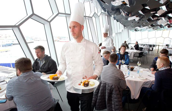 Fjöldi þátttakenda í keppninni Matreiðslumaður ársins rúmlega fjórfaldaðist eftir að fyrirkomulagi keppninnar var breytt. Engin kona var á meðal þeirra sem komust í tíu manna undanúrslit en á sama tíma var dreifing þeirra meiri en oft hefur verið. Engir tveir starfa á sama veitingahúsi og landsbyggðin átti tvo fulltrúa sem er hærra hlutfall en oft áður. Tíu kepptu í undanúrslitum í dag og mun liggja fyrir klukkan 16 hvaða fjórir munu keppa í úrslitum um titilinn Matreiðslumaður ársins næstkomandi sunnudag. Um frestaða keppni er að ræða en hætt var við að halda keppnina í september síðastliðnum þar sem aðeins fjórir skráðu sig til leiks. Úr varð nokkuð hitamál þar sem Jakob H. Magnússon, matreiðslumeistari og dómari, sagðist meðal annars telja að um metnaðar-, áhuga- og hvatningarleysi væri um að kenna. „Ef kokkar ætla sér að keppa gera þeir það þrátt fyrir allar úrtölur og neikvæðni,“ skrifaði Jakob í pistli við það tilefni. Matreiðslumaður ársins 2013 velti fyrir sér hvort menn væru eitthvað smeykir við að keppa. „Það er bara eins og þessir nýju strákar þori ekki í keppnina,“ sagði Viktor Örn Andrésson í samtali við Vísi við sama tilefni.Þorskur á dagskrá Björn Bragi Bragason, sem situr í skipulagsnefnd keppninnar auk þess að vera einn dómara, segir að staðsetningin og tímasetningin hafi verið stóra vandamál. „Á þessum tíma var mikið annríki á veitingastöðum borgarinnar og svo var landsliðið á fullu að keppa líka. Það fara margar hendur í það. Því fór sem fór,“ segir Björn Bragi. Hann er afar ánægður með hvernig til hafi tekist í ár. Fyrirkomulaginu var líka breytt á þann veg að kostnaður við þátttöku var enginn, þátttakendur sendu inn nafnlausar uppskriftir og einu leiðbeiningarnar voru að gera flottan rétt með þorsk í aðalhlutverki. Björn Bragi segir að við mat á uppskriftunum hafi meðal annars horft til hráefnanýtingar, frumlegheita og samsetningu. Í dag framreiddu svo kokkarnir tíu réttina sína en þeir urðu að vera nákvæmlega í takt við uppskriftina sem þeir skiluðu. Í dag er sérstaklega horft til útlits á matnum, hvernig uppskrift var fylgt, framsetningu og svo bragðið sem vegur 60 prósent.Hvorug konan komst áfram Sautján sendu inn uppskrift en tveir umsækjenda voru konur. Hvorug þeirra komst áfram í úrslitin. Uppskriftirnar voru sendar inn án nafns. „Það hallar mjög á konur í faginu okkar. Það vantar fleiri stelpur í kokkinn,“ segir Björn Bragi. Hann hafi engar upplýsingar um hlutfallið í stéttinni en gæti trúað að það væri ein kona fyrir hverja tíu karla. „Ef þú horfir enn lengra aftur í tímann þá voru karlar ekkert í þessu. Konurnar elduðu heima og mönnuðu mötuneytin. Svo þegar þetta varð að atvinnugrein tóku karlarnir þetta,“ segir Björn Bragi.Viktor Örn fagnar sigri í keppninni árið 2013.Vísir/ValliFara til fólksins Úrslitin fara fram á sunnudaginn fyrir framan Smurstöðina þar sem fólki gefst kostur á að fylgjast með kokkunum athafna sig. Það var ekki í boði þegar keppnirnar fóru fram í húsakynnum Menntaskólans í Kópavogi. „Við höfum átt frábært samstarf við Hótel og matvælaskólann undanfarin ár. En nú erum við að fara til fólksins. Það er ekki sjálfgefið að allir komi til okkar,“ segir Björn Bragi. Sigurvegarinn keppir fyrir hönd Íslands í keppninni Matreiðslumaður Norðurlandanna í Danmörku í júní. Viktor Örn í Bláa lóninu vann keppnina í fyrra og því eiga Íslendingar titil að verja. Einu sinni áður hefur Ísland átt sigurvegara en árið 2003 vann Ragnar Ómarsson, kokkur á Nordica keppnina.Einn þorskréttanna sem borin var fram í Hörpu í dag.Vísir/PjeturBjörn Bragi, lengst til hægri, ásamt kollegum sínum í dómarateyminu á Kolabrautinni í hádeginu í dag.Vísir/PjeturEinn þeirra sem kepptu í undanúrslitum í dag.Vísir/Pjetur