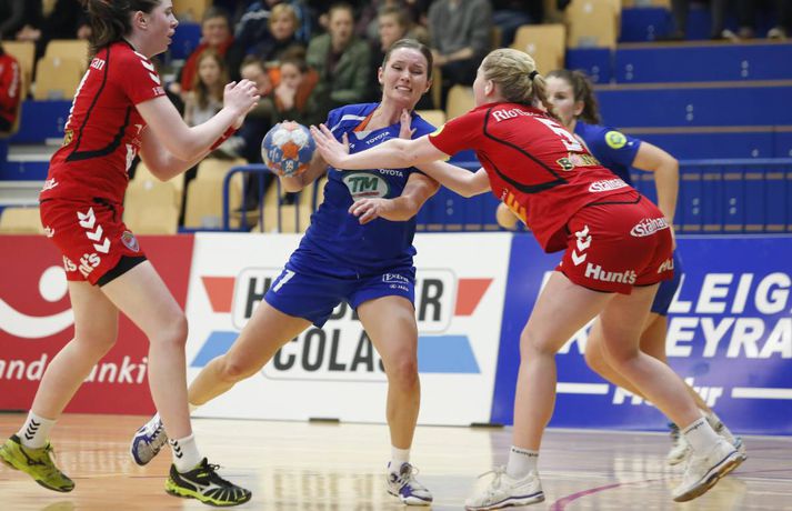 Haukar halda áfram sigurgöngu sinni í Olís-deild kvenna. Hafnarfjarðarliðið vann Stjörnuna með minnsta mun, 21-20 og var þetta sjötti sigur Hauka í röð. Gestirnir úr Hafnarfirði voru sterkari í fyrri hálfleik og leiddu með meðal annars með fjórum mörkum í hálfleik, 16-12. Í síðari hálfleik skoruðu Haukar einungis fimm mörk á meðan Stjarnan gekk á lagið. Lokatölur urðu svo eins og fyrr segir, 21-20, og Haukarnir halda áfram sigurgöngu sinni. Marija Gedroit fór á kostum í Haukaliðinu og skoraði tíu mörk. Ragnheiður Ragnarsdóttir kom næst með fjögur. Helena Rut Örvasdóttir var markahæst með fjögur fyrir Stjörnuna. Haukar hafa unnið ellefu af síðustu tólf leikjum sínum og eru í fjórða sæti deildarinnar. Stjarnan er áfram í öðru sætinu.Markaskorarar Stjörnunnar: Helena Rut Örvarsdóttir 4, Sólveig Lára Kjærnested 3, Stefanía Theodórsdóttir 3, Hanna Guðrún Stefánsdóttir 3, Nataly Sæunn Valencia 3, Þórhildur Gunnarsdóttir 3, Esther Viktoría Ragnarsdóttir 1.Markaskorarar Hauka: Marija Gedroit 10, Ragnheiður Ragnarsdóttir 4, Karen Helga Díönudóttir 2, Gunnhildur Pétursdóttir 2, Áróra Eir Pálsdóttir 1, Ragnheiður Sveinsdóttir 1, Agnes Ósk Egilsdóttir 1.
