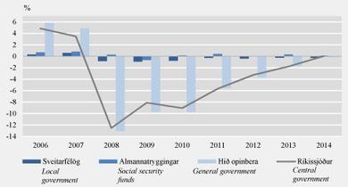 Tekjuafkoma ríkis og sveitarfélaga batnaði mikið á síðasta ári borið saman við árið á undan og batnar afkoman um 29 milljarða milli ára. Innheimtur tekjuskattur ríkissjóðs af einstaklingum og fyrirtækjum hefur ekki verið eins mikill og hann var í fyrra frá hruni efnahagslífsins. Hagstofan hefur sent frá sér bráðabirgðauppgjör á fjármálum hins opinbera fyrir árið í fyrra. En með hinu opinbera er átt við ríki og sveitarfélög. Á síðasta ársfjórðungi ársins 2014 var tekjuafkoma hins opinbera neikvæð um 7,7 milljarða króna sem er mun betri staða en árið á undan þegar afkoman var neikvæð um 15,3 milljarða. Árið í fyrra var í heildina einnig mun betra en árið 2013. Tekjuafkoma hins opinbera var neikvæð um 3 milljarða króna árið 2014 eða um 0,2% af landsframleiðslu. Til samanburðar var afkoman neikvæð um 32 milljarða króna árið 2013 eða 1,7% af landsframleiðslu. Þarna er bati upp á 29 milljaðra króna.Tekjur hins opinbera námu um 903 milljörðum króna og hækkuðu um 13,3% milli ára. Sem hlutfall af landsframleiðslu mældust þær 45,3% samanborið við 42,4% árið 2013. Útgjöld hins opinbera voru 906 milljarðar króna 2014 og jukust um 9,3% milli ára en hlutfall þeirra af landsframleiðslu fór úr 44,1% í 45,4%. Tekjuafkoma bæði ríkis og sveitarfélaga hrundi á árunum 2008 og 2009 sem hlutfall af landsframleiðslu en hefur batnað hratt allt frá árinu 2010 og er nú að komast í jafnvægi. Það vekur hins vegar athygli að skattekjur ríkisins sem hlutfall af landsframleiðslu óx í fyrra þrátt fyrir skattalækkanir ríkisstjórnarinnar. Þannig var tekjuskattur ríkissjóðs á einstaklinga og lögaðila 18 % af landsframleiðslu í fyrra og hefur hlutfallið ekki verið jafn hátt frá því fyrir hrun. Á fyrstu fimm árunum eftir hrun var þetta hlutfall á bilinu 14,8 til 16,8 prósent. Munar þar mestu um tekjuskatt á lögaðila sem var 3 prósent af landsframleiðslu í fyrra, en 2,2 prósent árið 2013 og 1,9 prósent árið 2012. Tekjuskattur einstaklinga sem hlutfall af landsframleiðslu var 13,8 prósent í fyrra og hefur ekki verið svo hátt frá því fyrir hrun.