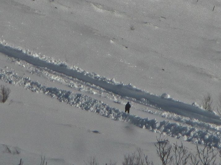 Snjóflóð féll á Tálknafirði í nótt Atli Ísleifsson skrifar 11. mars 2015 20:44 Snjóflóðið blasti við íbúum bæjarins í morgun. Mynd/Sigríður Hilmarsdóttir Snjóflóð féll á Tálknafirði einhvern tímann í nótt. Sigríður Hilmarsdóttir, íbúi á Tálknafirði, segir enga viðvörun hafa verið gefna út hjá Veðurstofunni. Sigríður segir flóðið hafa fallið innarlega í bænum. „Við tókum ekki eftir því þegar flóðið féll en þetta blasti bara við okkur þegar við vöknuðum í morgun.“ Hún segir að ekki hafi fallið snjóflóð á þessum stað í nokkuð mörg ár. „Það olli þó ekki neinum skaða, nema þá mögulega á trjágróðri. Það var frekar sérstakt að það var engin viðvörum gefin út hjá Veðurstofunni að þessu sinni. Það eru þarna hús á svokölluðu C-svæði. Það er reyndar ekki fólk í öllum þessum húsum, en þetta kom öllum að óvörum.“ Sigríður segir veður hafa verið brjálað á Tálknafirði í gærkvöldi þannig að ekki hafi sést á milli húsa. „Svo fór rafmagnið hjá okkur nokkrum sinnum í gærkvöldi. Það var gríðarlega mikil ofankoma, skafrenningur og mjög hvasst. Við hefðum því mögulega ekki heyrt þetta þó að við hefðum staðið við hliðina á þessu þegar þetta gerðist.“Mynd/Sigríður HilmarsdóttirMynd/Sigríður HilmarsdóttirMynd/Sigríður Hilmarsdóttir Mest lesið Níu ferðamenn á ísnum og heil rúta í viðbót á leiðinni Innlent Lét þingmenn heyra það og sagði Evrópu ekki geta varið sig sjálfa Erlent Foreldrar loki á samskipti barna við ömmu og afa Innlent Saltkjötið háskalegt heilsutæpum Innlent Flestir vilja Katrínu Jakobs sem forsætisráðherra Innlent Laun bæjarfulltrúa lækkuð Innlent Ók einn frá höfninni og kom til baka tæpri klukkustund síðar Innlent Fannst vanta stemmningu í skólann og skipulögðu handboltamót Innlent Richard Attenborough allur Erlent Slökkva á áróðurshátölurunum Erlent Fleiri fréttir Fannst vanta stemmningu í skólann og skipulögðu handboltamót Foreldrar loki á samskipti barna við ömmu og afa Öflugur 92 ára dósa og plast plokkari á Suðurlandi Níu ferðamenn á ísnum og heil rúta í viðbót á leiðinni „Förum strax í lífsbjargandi aðgerðir“ Ekki fleiri barnaníðsmál í fimmtán ár Eldsvoði, Bjarni Ben og fjölskylduerjur Veitir ekki viðtöl að sinni Hundrað ára gamalt hús sem varð myglu að bráð Aukin veikindaforföll ekki vegna einstaklingsbundinna vandamála Elsti Íslendingurinn 105 ára gömul kona „Margt óráðið í minni framtíð“ Ein fjölskylda aðstoðuð með gistingu vegna brunans Sigurður Helgi kjörinn varaforseti „Ég hafði ekki ímyndunaraflið í að sjá þetta fyrir mér“ Þrjú dæmd fyrir að flytja inn BMW fullan af kókaíni Ein í framboði og áfram formaður Einar og Magnea í efstu sætum Framsóknar í Reykjavík Konur hafi þurft að afgreiða áttatíu vændiskaupendur á þremur dögum Sprenging í vændi og handboltafár eftir sigur á Svíum Gríðarleg andstaða við lagareldisdrög Hönnu Katrínar Kona þungt haldin og sjö hundar hennar brunnu inni Tekur ekki undir greiningu Heiðu Bjargar um konur í Samfylkingunni Svarar gagnrýni vegna umdeildra gistihýsa í Skaftafelli Brunavarnir Suðurnesja luku störfum á öðrum tímanum í nótt Handtekinn grunaður um íkveikju „Þurfum að búa við það á meðan að vera með þennan ofbeldissegg“ Inni í húsinu þegar eldur logaði í fjölbýlishúsi Náttúruverndarsamtök fjarlægðu stíflu Ungir Sjálfstæðismenn fengu áfengi í ferð með Vilhjálmi og fóru svo á kjörstað Sjá meira