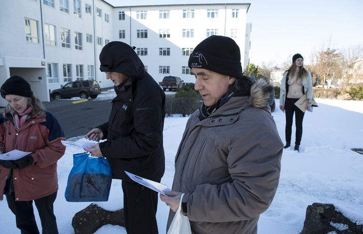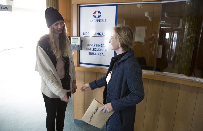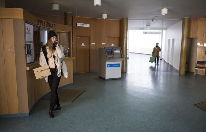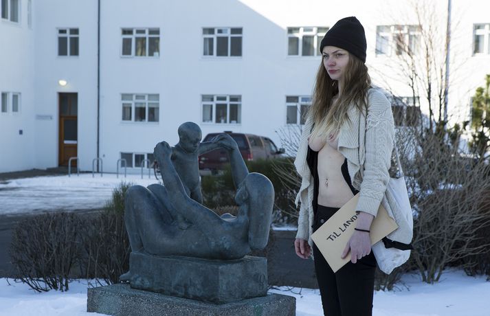 Vilja að Landspítalinn taki afstöðu til mótmælahópsins Sunna Kristín Hilmarsdóttir skrifar 31. mars 2015 13:24 Bryndís Björnsdóttir var berbrjósta við Landspítalann í dag og mótmælahópurinn Lífsvernd bað fyrir eyddum fóstrum líkt og alla þriðjudaga. Vísir/Ernir Bryndís Björnsdóttir fækkaði fötum við Landspítalann í dag og afhenti Önnu Sigrúnu Baldursdóttur, aðstoðarmanni forstjóra spítalans, undirskriftalista sem tæplega 1200 manns rituðu nafn sitt á. Með listanum er spítalinn hvattur til að taka afstöðu til mótmælahópsins Lífsverndar sem alla þriðjudaga hittist fyrir utan kvennadeild Landspítalans og biður fyrir eyddum fóstrum. Bænahópurinn var á sínum stað við Kvennadeild spítalans í hádeginu í dag auk Bryndísar og þriggja annarra kvenna. „Þetta er góður dagur til að bera brjóstin. Sólin skín og það er vor í lofti,“ sagði Bryndís í samtali við blaðamann Vísis í hádeginu. Hún ákvað að grípa tækifærið og tengja afhendingu undirskriftalistans við brjóstabyltinguna svokölluðu.Hyggst ekki mæta fyrir framan spítalann á hverjum þriðjudegi „Mér fannst alveg tilefni til þess þar sem það var komin fram þessi birtingarmynd að konur voru að bera á sér brjóstin til að sýna að þær hefðu rétt yfir líkama sínum og lífi. Ég vildi því bara taka undir með því, nota tilefnið og afhenda undirskriftirnar.“ Bryndís vonast til þess að Landspítalinn taki afstöðu til mótmælahópsins. „Við sem skrifum undir þennan lista teljum að þessi mótmæli séu áreiti í garð kvenna því það eru um 1000 konur sem ganga um þessar dyr á hverju ári.“ Aðspurð hvort að Bryndís hyggist mæta á hverjum þriðjudegi fyrir framan Kvennadeildina ef undirskriftalistinn skilar ekki einhverju strax sagði hún: „Ég myndi telja að ég væri þá að ganga undir þeirra forsendur og myndi ekki telja það æskilegt, nei.“ Tengdar fréttir Hvetur fólk til að fækka fötum fyrir utan Landspítalann Afhentur verður undirskriftalisti með 1200 nöfnum þar sem Landspítalinn er hvattur til að taka afstöðu til mótmælahóps sem hittist alla þriðjudaga og biður fyrir eyddum fóstrum. 30. mars 2015 23:36 Biðja fyrir eyddum fóstrum við Kvennadeild Landspítalans „Við biðjum fyrir vernd fyrir ófædd börn og stöðvun á fóstureyðingum. Við biðjum fyrir hugarfarsbreytingu til fóstureyðinga því við trúum að ófædd börn séu líka manneskjur og þau eigi að fá möguleika á að lifa,“ 15. október 2014 09:30 Mest lesið Veðurvaktin: Snjókoman rétt að byrja og víða erfið færð Veður Ungur Miðflokksmaður gengst við rasisma og segir af sér Innlent Snjókoman rétt að byrja Innlent Bílar út af veginum á Reykjanesbraut Innlent Eldur í blokk við Ljósheima Innlent Flugmaðurinn sem fórst millilenti oft í Reykjavík Innlent Ráðgjafinn ráðinn í tímabundið starf eftir dýra skreppitúra Innlent Skvísur geti virkað sem hálfgerðir þroskaþjófar Innlent Játar að hafa myrt Shinzo Abe Erlent Fjölmargir farþegar fastir í flugvélum á Keflavíkurflugvelli Innlent Fleiri fréttir Hvatt til varúðar vegna snjóflóðahættu á suðvesturhorninu Meiri kvika en í síðasta gosi Eldur í blokk við Ljósheima Flugmaðurinn sem fórst millilenti oft í Reykjavík Halla leiðir krabbameinsráð ráðherra Snjókomumet og umferðaröngþveiti Segir sameiginlegum gildum Norðurlanda ógnað Fjölmargir farþegar fastir í flugvélum á Keflavíkurflugvelli Ungur Miðflokksmaður gengst við rasisma og segir af sér Sturlað ástand og United vettlingar prjónaðir í bílnum Mesta snjódýpt í Reykjavík sem mælst hefur í október Viðbragðsaðilar í mikilli hættu vegna bíla á sumardekkjum Bílar út af veginum á Reykjanesbraut Vill heimila Samkeppniseftirlitinu að ráðast í húsleitir Snjókoman rétt að byrja Píratar berjist gegn „rísandi bylgju lýðskrums og fasisma“ Skvísur geti virkað sem hálfgerðir þroskaþjófar Ráðgjafinn ráðinn í tímabundið starf eftir dýra skreppitúra Misvægi atkvæða bitnar mest á Kraganum Heitavatnslaust á Suðurnesjum og rafmagnslaust víða um land Skreppiferðir í Jysk meðal þess sem ráðgjafi rukkaði fyrir „Ég tel ekki tilefni til að íhuga stöðu mína“ Áhyggjur af lánaframboði og ógnarlangar biðraðir Vara við ferðum á Fagradalsfjall þar sem aðstæður geti orðið hættulegar Kristmundur verður lögreglustjóri á Austurlandi „Vonandi klárast þetta á morgun“ Sá látni var á rjúpnaveiðum þegar hann varð fyrir voðaskotinu Kvartanir mannsins um ómannúðlega meðferð áður til skoðunar hjá NEL Ungi ökumaðurinn á Ísafirði úr lífshættu Nefnd SÞ gegn pyndingum skráir erindi hælisleitenda sem vísað var frá Íslandi Sjá meira