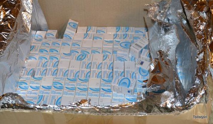 Í ferðatösku mannsins fundust rúmlega 3.500 ambúlur af sterum í vökvaformi auk talsverðs magns af sterum í töfluformi. Hann var einnig með vel á annað þúsund skammta af lyfseðilsskyldum lyfjum. Maðurinn er sagður hafa komið við sögu áður vegna svipaðra mála.