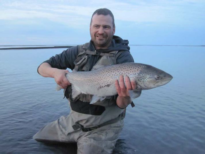Vatnamótin hafa gefið vel það sem af er vori Karl Lúðvíksson skrifar 11. apríl 2015 14:34 Flottur sjóbirtingur og ánægður veiðimaður í Vatnamótunum Vatnamótin eru síbreytilegt veiðisvæði þar sem veiðivon er góð, fiskurinn stór og þarna getur þolinmæðin launað veiðimönnum með mögnuðum augnablikum.Þarna veiðist aðallega sjóbirtingur og veiðst hafa fiskar yfir 20 pund, einnig lax og bleikja. Veiðisvæði Vatnamóta, sem er fimm stanga svæði, er á söndunum austan Kirkjubæjarklausturs, þar sem Hörgsá, Fossálar og Breiðabakkakvisl ásamt smærri lækjum, sameinast jökulvatni Skaftár. Vatnamótin eru stórt vatnasvæði með mörgum mögulegum veiðistöðum. Sandbotnin er síbreytilegur og verða veiðimenn að leita fyrir sér með líklega veiðistaði. Hægt er að veiða frá bakka á 4-5 km. Svæði. Bakkarnir eru mestu grónir en gróður er viðkvæmur akið því ekki utan slóða. Þótt Vatnamót séu þekktust fyrir sjóbirtingsveiði, veiðast þar bæði lax og bleikja.Þeir sem þekkja svæðið benda á að þar sem botninn og sandurinn er á stöðugri hreyfingu þarf og má fara nokkuð hratt yfir þegar það er verið að leita að fiski. Fljótlegasta yfirferðin sé að nota flotlínu með löngum sökkenda og stuttum taum, kasta einu sinni og láta það kast reka. Færa sig síðan strax um 2-3 metra og halda áfram. Flugurnar sem gefa þarna eru margar svo það hefur ekki verið talað um einhverja eina sem er betri en sú næsta en litríkar flugur eins og þekkist vel í sjóbirtingsveiði eru þó alltaf vinsælastar. Þeir sem vilja kynnast svæðinu má benda á laus leyfi inná www.veida.is Stangveiði Mest lesið Það er ennþá líf í Kleifarvatni Veiði 80% aukning umsókna hjá SVFR Veiði Nýjar veiðitölur úr laxveiðiánum Veiði Fín byrjun í Straumfjarðará Veiði Veiðimönnum boðið í Hlíðarvatn Veiði Svona á að hamfletta rjúpurnar Veiði Fiskvegur skal gerður fyrir ísaldarurriðann Veiði Batnandi útlit í Eyjafjarðará Veiði Rjúpan kostar allt að 5000 krónur stykkið Veiði Ágæt veiði í Laxá frá opnun Veiði