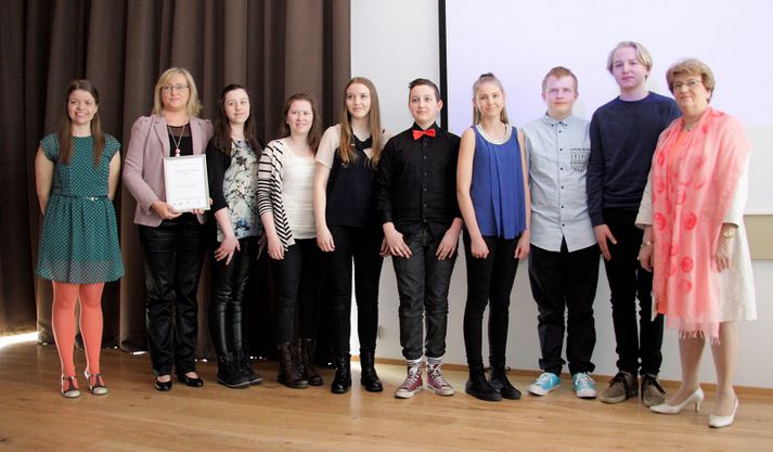 Sigrún Magnúsdóttir, umhverfis- og auðlindaráðherra, afhenti í dag Landspítalanum Kuðunginn, umhverfisviðurkenningu ráðuneytisins, fyrir framúrskarandi starf að umhverfismálum á síðasta ári. Við sama tækifæri voru nemendur í 9. bekk í Lágafellsskóla í Mosfellsbæ útnefndir Varðliðar umhverfisins. Landspítali hlýtur Kuðunginn fyrir metnaðarfulla umhverfisstefnu og markvisst umhverfisstarf undanfarin ár. „Er árangur starfsins skýr og mælanlegur og sýnir að það hefur leitt til ávinnings fyrir umhverfi, öryggi, heilsu og efnahag. Hefur sérstök áhersla verið lögð á að auka flokkun, draga úr sóun, auka vistvæn innkaup, hvetja til vistvænna ferðamáta, hafa skýrt verklag fyrir hættulegan úrgang og að auka miðlun upplýsinga um umhverfismál. Meðal annars má nefna að vegna aðgerða sem lúta að sorpflokkun fóru 130 tonnum meira á ári frá Landspítala til endurvinnslu árið 2014 en 2012, eða 370 kg meira daglega. Spítalinn hefur nýtt innkaupamátt sinn til að stuðla að auknu framboði á umhverfisvænum vörum og þjónustu á markaði með því að setja umhverfisskilyrði í útboðum sínum. Eftir að Landspítali hóf að bjóða samgöngusamninga fjölgaði þeim starfsmönnum sem ferðast með vistvænum hætti og má ætla að bílum hafi fækkað um 160 á götum borgarinnar á hverjum virkum degi og útblástur koltvíoxíðs minnkað um 120 tonn á ársgrundvelli. Á síðasta ári fór fram undirbúningsvinna vegna Svansvottunar eldhúss og matsala Landspítala og afhending Svansvottunarinnar fór fram í mars sl. Eldhúsið og matsalirnir framleiða og selja 4.500 máltíðir á dag en með markvissum aðgerðum hefur matarsóun minnkað um 40% síðan 2011. Það þýðir að 20 tonnum minna er hent af mat á Landspítala á ári hverju. Nýlega voru tekin í notkun margnota matarbox í matsölum, í stað frauðplastboxa sem áður voru notuð. Þessi aðgerð verður til þess að 123.000 færri frauðplastbox eru nú notuð á ári hverju en væri þessum fjölda boxa staflað upp í einfalda röð, yrði staflinn jafnhár og 150 Hallgrímskirkjuturnar. Er það mat dómnefndar að Landspítali sé fyrirmynd í öflugu umhverfisstarfi. Sá mikli árangur sem náðst hafi með markvissum aðgerðum sé öðrum stofnunum og fyrirtækjum hvatning í því að gera betur á þessu sviði. Jákvæð áhrif Landspítala á umhverfið felist þannig ekki síst í því að hann hefur miðlað óspart af þekkingu sinni og reynslu. Verðlaunagripurinn, Kuðungurinn, sem Landspítali hlaut, er að þessu sinni eftir Guðrúnu Indriðadóttur leirlistamann, en svo skemmtilega vill til að hún starfar einnig sem lyfjafræðingur á Landspítala. Þá öðlast stofnunin rétt til að nýta merki verðlaunanna í kynningu á starfsemi sinni,“ segir í tilkynningu frá ráðuneytinu.Nemendur í 9. bekk í Lágafellsskóla.Mynd/Umhverfis- og auðlindaráðuneytiðVarðliðar umhverfisins Nemendur í 9. bekk í Lágafellsskóla hlutu svo útnefninguna Varðliðar umhverfisins fyrir verkefni sem unnin voru sem hluti af umhverfisþema síðastliðið haust. „Verkefnin voru margþætt; til að byrja með tóku nemendurnir fyrir ákveðin umhverfismál og kynntu fyrir samnemendum sínum í formi t.d. myndbanda, fréttaþátta, heimildarmynda eða rapplags. Í kjölfarið þurftu nemendur að taka sig á í tíu atriðum er varða umhverfið í sinni hversdagslegu hegðun á heimili sínu, allt frá því að nota færri handklæði í hverri viku og að eiga samskipti við vini og ættingja í eigin persónu, án milligöngu tölvu, síma eða annarra samskiptatækja – og til þess að gera ítarlega áætlun í samráði við foreldra sína um það hvernig heimilið allt geti bætt sig í sjálfbærum lífsstíl. Loks boðuðu nemendur bæjarstjóra Mosfellsbæjar á sinn fund og afhentu honum áskorun með sjö tillögum um úrbætur í umhverfismálum bæjarins. Áskorun nemendanna var í kjölfarið tekin fyrir hjá umhverfisnefnd bæjarins og skiluðu hugmyndir þeirra sér þaðan í vinnu bæjarins við Staðardagskrá 21, sem lýtur að stefnumótun sveitarfélaga í sjálfbærnimálum. Í rökstuðningi dómnefndar segir að verkefnið hafi tekið á umhverfismálum í víðum skilningi. „Verkefnið hafði ekki eingöngu jákvæð áhrif innan skólans heldur einnig út fyrir skólann, í fyrsta lagi þar sem heimili nemenda voru virkjuð og í öðru lagi með beinum hætti í sjálfbærnivinnu bæjarfélagsins.“ Viðurkenningarnar voru afhentar á hátíðarathöfn í Nauthól í dag, sem haldin var í tengslum við Dag umhverfisins sem er 25. apríl næstkomandi. Umhverfis- og auðlindaráðuneytið óskar viðurkenningarhöfum innilega til hamingju.“