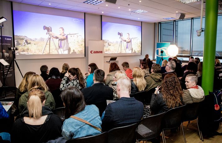 Fjölmenni á ráðstefnunni Konur í ljósmyndun - Myndaveisla Jóhann Óli Eiðsson skrifar 20. apríl 2015 14:57 Fyrirlesararnir fjórir mynd/óskar páll elfarsson Síðastliðinn fimmtudag var haldin á vegum Nýherja og Canon ráðstefnan Konur í ljósmyndun. Þar héldu Bára Kristinsdóttir, Ragnheiður Arngrímsdóttir, Saga Sigurðardóttir og Sigríður Ella Frímannsdóttir erindi þar sem þær frá reynslu sinni úr heimi ljósmyndunar og sögðu frá vinnu sinni í geiranum. Umfjöllunarefni var af ýmsum toga, allt frá auglýsingaljósmyndun fyrir Nike, Topshop, Vogue og Dazed&Confused yfir í listræna ljósmyndun og hefðbundna portrett ljósmyndun. Um 120 manns mættu á viðburðinn og hlýddu á reynslu ljósmyndaranna. Óskar Páll Elfarsson var á staðnum og tók myndir af viðburðinum. Mest lesið Heitt í hamsi hjá gestum á „helvíti á jörðu“ í Breiðholti Lífið Veikindi eyðilögðu líka stóru stund Manúelu Lífið Leitin á Svínafellsjökli sem hefur enn ekki skilað árangri Lífið Hefur misst vini og kunningja vegna skoðana sinna Lífið Helvíti á jörðu: Emmsjé Gauti minnti á líkamsræktarþjálfara í maníu Gagnrýni Stjörnulífið: Óskar tíkunum gleðilegra jóla Lífið Saga jarðaði alla við borðið Lífið Eru þetta ljótustu og fallegustu nýbyggingar ársins? Menning Íslenska stelpan sem gerðist mormóni Lífið „Sat í átta klukkutíma á dag og horfði út um gluggann“ Menning Fleiri fréttir Heitt í hamsi hjá gestum á „helvíti á jörðu“ í Breiðholti Chris Rea hefur ekið heim um jólin í síðasta skipti Saga jarðaði alla við borðið Vísa ásökunum Skinner um kosningasvindl á bug Kimmel ávarpar bresku þjóðina: Frábært ár fyrir fasisma „Ég hugsa til þín á hverjum einasta degi“ Stjörnulífið: Óskar tíkunum gleðilegra jóla Veikindi eyðilögðu líka stóru stund Manúelu Hefur misst vini og kunningja vegna skoðana sinna Leitin á Svínafellsjökli sem hefur enn ekki skilað árangri Krakkatía vikunnar: Ísskápastríð, Eivör og Grafarvogur „Við byrjuðum að hlusta á jólalög í júlí“ Frægir fundu ástina 2025 Íslenska stelpan sem gerðist mormóni Fréttatía vikunnar: Rob Reiner, Dóra Björt og fullir unglingar 500 Esjuferðir á árinu: „Sumir hrista bara hausinn og lygna augunum“ Útgefandi Walliams lætur hann róa Fáklæddir barþjónar þegar Regnboginn opnaði í Bíó Paradís Þriðja stigs krabbameinið það besta sem kom fyrir hann Dúnninn bakaður í fjóra sólarhringa til að drepa allt í honum Heilsu krónprinsessunnar hrakar gríðarlega Pete orðinn pabbi Nýkominn úr meðferð og „sjaldan verið betur nýsleginn túskildingur“ Laufey á lista Obama „Ég heyrði þá kalla á mig en gat engu svarað“ Opnar sig í fyrsta sinn: Kyssti yfirmanninn í fyrsta sinn þetta kvöld Sex hundruð ára kastali Björns í Frakklandi svo gott sem klár Fyrirsát að Valgerði, Stund Pírata og meint alzheimer Þráins Bertelssonar „Það jafnar sig enginn eftir svona og við munum aldrei gera það“ Ungir sjálfstæðismenn gefa út vandræðalegt fjölskyldudagatal Sjá meira
