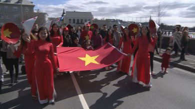 Mikið var um dýrðir í miðborg Reykjavíkur í dag þegar íbúar borgarinnar af fjölbreyttum uppruna gengu saman í skrúðgöngu frá Skólavörðuholti að Ráðhúsinu. Þar gat fólk síðan kynnt sér þjóðmenningu, siði og mat hinna ýmsu þjóðarbrota á fjölmenningarhátíð borgarinnar.Vísir/Stöð 2Það viðraði vel til hátíðarhalda í höfuðborginni í dag þegar fjölmenningardagurinn var haldinn í sjöunda skipti. En talið er að fólk af 130 þjóðernum búi í Reykjavík. Anna Kristinsdóttir mannréttindastjóri Reykjavíkurborgar segir það ómetanlegt fyrir fólk af ólíkum uppruna í borginni að haldnir séu fjölmenningardagar. „Það er þeirra vilji að fá að halda svona dag til að sýna okkur hvað er mikil fjölbreytni í borginni. Og við finnum að það eru ekki til fordómar á þessum degi, segir Anna.Vísir/Stöð 2Og Dagur B. Eggertsson borgarstjóri var í sólskinsskapi í göngunni. „Já heldur betur. Ég er ekki frá því að hitinn hafi hækkað um nokkrar gráður í dag. Ég held að sýnileiki, fjölbreytni og gleði skipti alltaf máli,“ sagði borgarstjórinn. Fjölmenningargangan endaði við ráðhúsið þar sem gaf að líta alls kyns kræsingar og kynningar frá öllum heimshornum. Bernhard, snáði um það bil sjö ára, var hæst ánægður með daginn og fannst partýið skemmtilegast og var staðráðinn í að fá sér köku.Vísir/Stöð 2Fólk allstaðar að úr heiminum býr í Reykjavík og hefur flutt þangað af ýmsum og ólíkum ástæðum. Til að mynda búa rúmlega 70 Kenýamenn í borginni. Hjónin Paul og Rosemary ramses eru meðal þeirra. Þau mættu klædd ákaflega fallegum þjóðlegum klæðnaði og buðu upp á ýmsan varning frá heimalandinu. „Við erum að styrkja skóla í Kenya. Það gengur bara mjög vel. Við erum búin að byggja leikskóla fyrir 150 börn og erum núna að byggja grunnskóla fyrir 350 börn,“ sagði Rosemary stolt. Jana er af annarri kynslóð Víetnama á Íslandi en nýstofnað félag þeirra tók í dag í fyrsta skipti formlega þátt í fjölmenningardeginum. Hún segir gott að vera Víetnami í Reykjavík. „Það er mikill munur á því og í gamla daga. Þeir fá meiri upplýsingar núna. Innflytjendur sem koma til landsins fá meiri aðstoð til að laga sig að nýju samfélagi,“ sagði Jana og bauð fréttamanni upp á gómsætan eftirrétt.