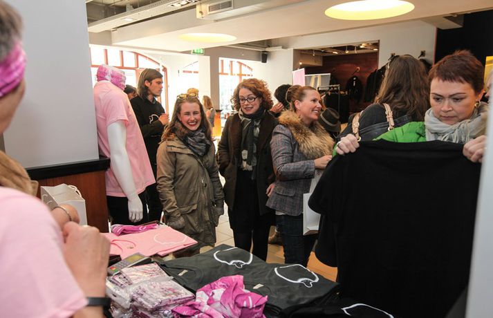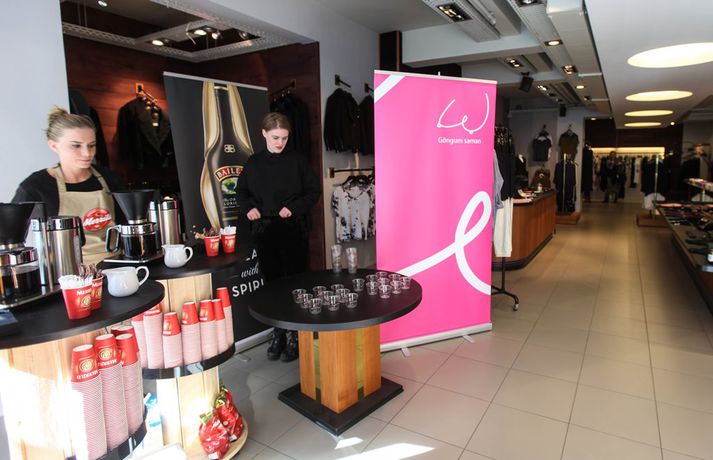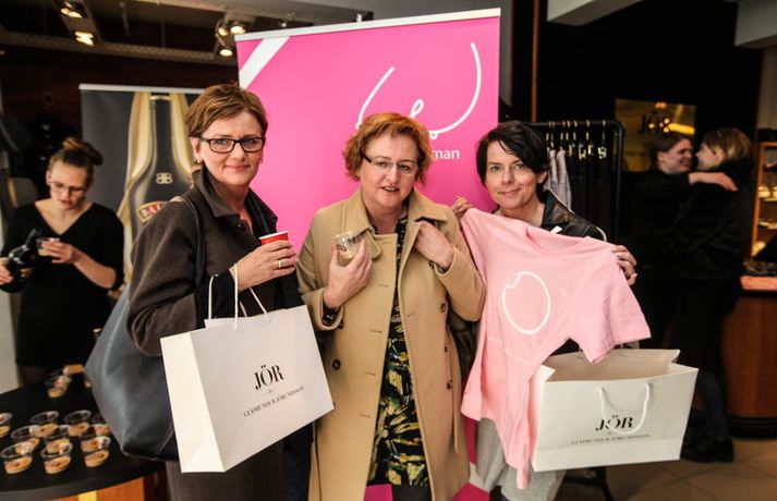 JÖR efndi í gær til fögnuðar. Tilefnið var upphaf sölu á bolum og hálsklútum sem JÖR hannaði fyrir samtökin Göngum saman. Göngum saman styrkir grunnrannróknir á brjóstakrabbameini og úthlutar styrkjum í október ár hver. Frá stofnun félagsins hefur um fimmtíu milljónum verið úthlutað til íslenskra rannsóknaraðila á sviði brjóstakrabbameins. Göngum saman efnir til vorgöngu fyrir alla fjölskylduna víða um land á mæðradaginn, sunnudaginn 10. maí, kl. 11. Í Reykjavík verður gengið frá Háskólatorgi þar sem íslenskir vísindamenn, sem þegið hafa styrki félagsins, kynna störf sín. Gangan er gjaldfrjáls en göngufólki gefst kostur á að styrkja rannsóknir á brjóstakrabbameini, með frjálsum framlögum eða með því að festa kaup á varningi Göngum saman. Í ár verða meðal annars seldir bolir og höfuðklútar sem hannaðir voru sérstaklega fyrir félagið af Jör og margnota innkaupapokar hannaðir af Sigurborgu Stefánsdóttur.