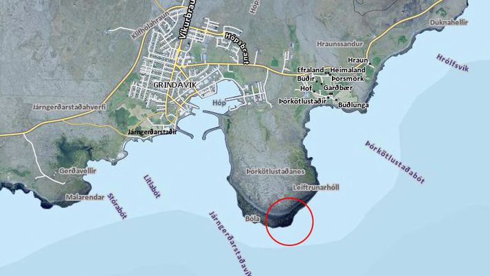 Mannbjörg varð þegar að að bátur fór upp í fjöru við Hópsnes skammt frá innsiglingunni í Grindavík. Samkvæmt upplýsingum frá lögreglunni á Suðurnesjum voru fjórir menn voru um borð og er búið að bjarga öllum. Lögreglu barst tilkynning um slysið klukkan 12:28. Þyrla Landhelgisgæslunnar og björgunarsveitir á Suðurnesjum voru kallaðar út vegna málsins. Þá stefndi báturinn í strand. Báturinn heitir Gottlieb 2622, sem er stærri gerðin af línubát. Áhöfnin gekk úr bátnum þegar hann hafði strandað í fjörunni.Uppfært 13:25: Tilkynning hefur borist frá Landhelgisgæslunni vegna málsins. „Stjórnstöð Landhelgisgæslunnar barst nú kl. 12:23 neyðarkall frá bátnum Gottlieb 2622 sem var vélarvana við Hópsnes á Reykjanesi. Rak bátinn hratt að landi. Fjórir skipverjar voru um borð. Þegar í stað var þyrla Landhelgisgæslunnar kölluð út sem og björgunarsveitir á Suðurnesjum og björgunarskip Slysavarnarfélagsins Landsbjargar. Skömmu eftir að útkallið barst var báturinn kominn upp í kletta og lagðist þar á hliðina. Nærstaddir bátar á svæðinu komust ekki að til aðstoðar. Strekkingsvindur var á svæðinu, SA 10-12 m og aðstæður á staðnum erfiðar. Skipverjar, sem voru allir í björgunargöllum náðu að koma taug í land og kl. 12:51 barst staðfesting um að þeir væru allir komnir upp í fjöru heilir á húfi. Um hálftíma eftir að útkallið barst lenti þyrla Landhelgisgæslunnar í fjörukambinum og mun hún flytja skipverjana til Grindavíkur.“Hér strandaði báturinn.Vísir/LoftmyndirAf strandstað.Mynd/Halli Bangsi