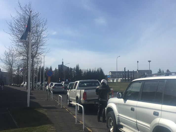 Lögregla sektaði bíla við útskrift Tækniskólans Atli Ísleifsson skrifar 22. maí 2015 17:39 Lögreglumaður að störfum. Vísir/Sindri Reyr Einarsson Lögreglumenn sektuðu bíla sem hafði verið lagt ólöglega fyrir utan Háskólabíó fyrr í dag. Útskrift nemenda í dagskóla Tækniskólans fór fram í Háskólabíói á þessum sama tíma. Gestir útskriftarinnar höfðu þá margir lagt bílum sínum ólöglega fyrir utan bygginguna.Vísir/Sindri Reyr Einarsson Mest lesið Stigmögnun í nágrannaerjum: „Hann vildi keyra á mig“ Innlent „Enda ekki í nokkru einasta ástandi til að vera meðal fólks“ Innlent Gengst nú við skilaboðunum umdeildu Innlent Hægt að nálgast vottorð um að makinn hafi rangt fyrir sér Innlent „Það átti að taka mig í karphúsið“ Innlent Árásarmaðurinn svartklæddi reyndist vera ættingi Innlent Selenskí undir miklum þrýstingi Innlent „Einhver SA prins mættur til að láta sem allt sé bara kózý“ Innlent Ungur drengur látinn eftir hákarlaárás Erlent Tugþúsundir mótmæltu ICE Erlent Fleiri fréttir „Enda ekki í nokkru einasta ástandi til að vera meðal fólks“ Árásarmaðurinn svartklæddi reyndist vera ættingi Stigmögnun í nágrannaerjum: „Hann vildi keyra á mig“ Gengst nú við skilaboðunum umdeildu Hægt að nálgast vottorð um að makinn hafi rangt fyrir sér Um 900 manns nú með lögheimili í Grindavík „Það átti að taka mig í karphúsið“ Selenskí undir miklum þrýstingi Tímamótaviðræður hafnar og ögurstund hjá Samfylkingunni Eldur í sendibíl á Miklubraut Arnar Grétarsson í stjórnmálin Gjörbreytt Langahlíð fyrir milljarð Segist ekki muna eftir að hafa sent skilaboðin „Einhver SA prins mættur til að láta sem allt sé bara kózý“ Endurtekin og alvarleg mál valda áhyggjum Hiti færist í leikinn: „Frægur karl með enga reynslu“ Samfylkingarmönnum í Reykjavík fjölgað um 72 prósent Heimilisofbeldismálin alvarlegri en áður og fundað um Úkraínu í Abu Dhabi Svona var Pallborðið með Heiðu Björgu og Pétri Játaði meira og meira eftir því sem á leið Fann innbrotsþjófinn sofandi á heimilinu Nú geta íbúar skráð sjálfir hvað megi betur fara í borginni „Þetta er svolítið óvenjulegt, ég er ekki á þingi“ Landsleikir á vinnutíma fela í sér tækifæri Pétur vill leiða Viðreisn í Kópavogi Kom ekki á teppið Landsvirkjun hyggst bjóða út alla verkþætti Hvammsvirkjunar í ár Lilja sækist eftir því að leiða Framsókn Willum fer ekki fram og styður Lilju Foreldrarnir vissu ekki af kynferðisofbeldinu Sjá meira